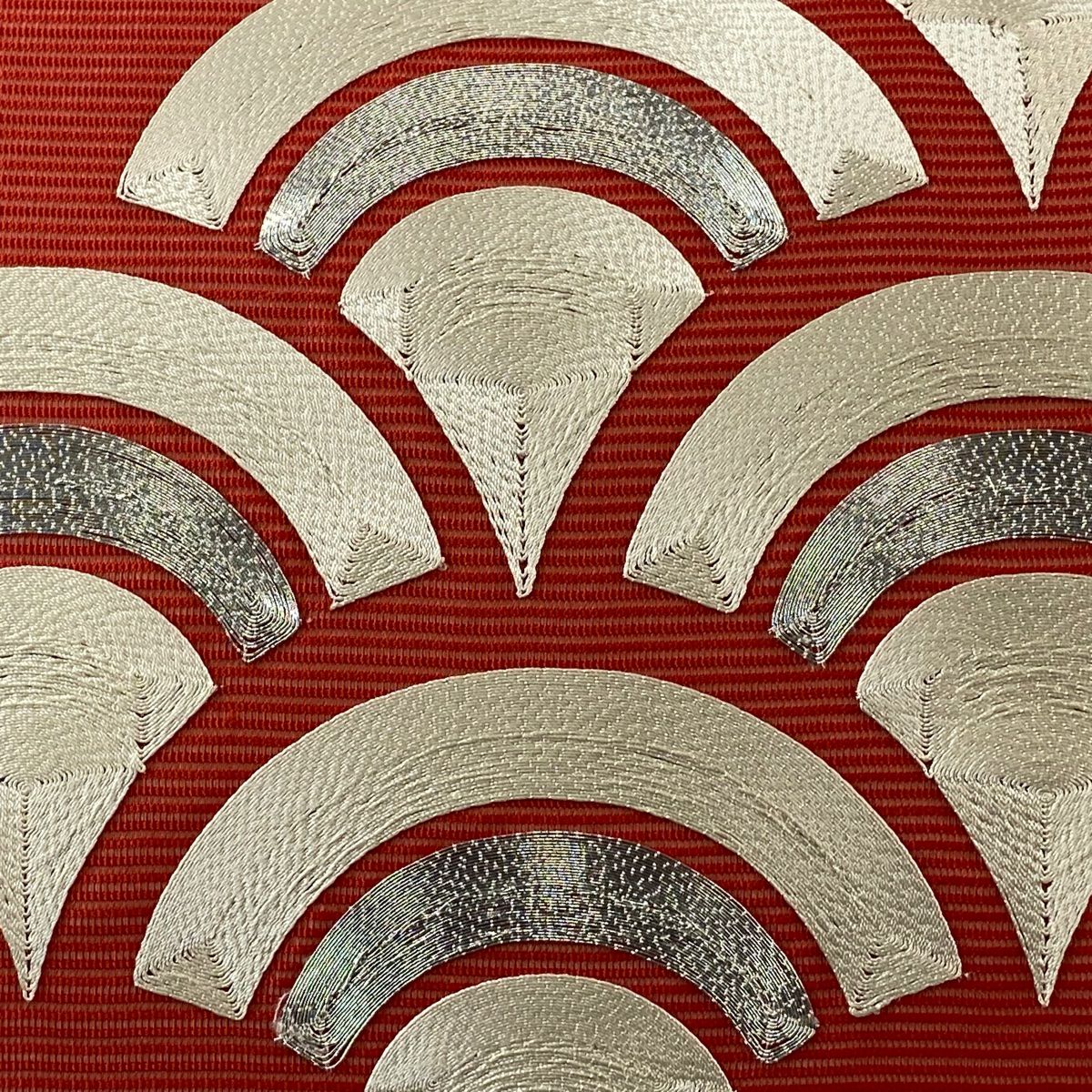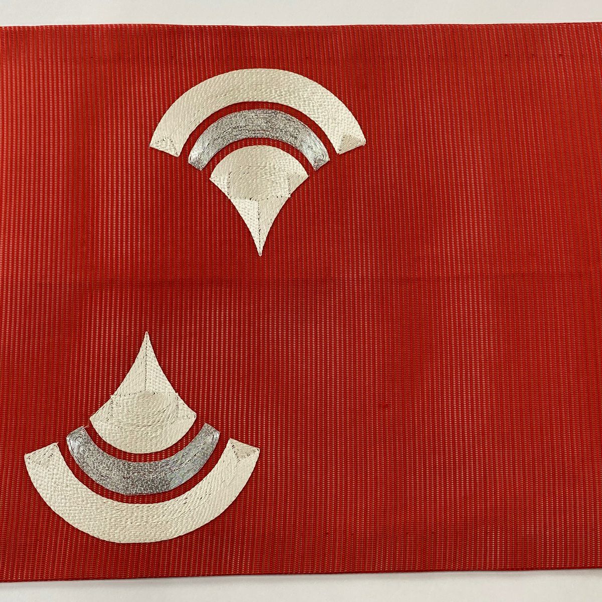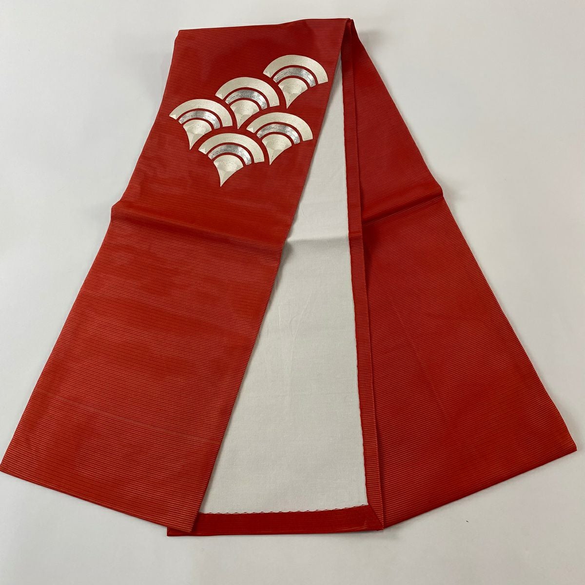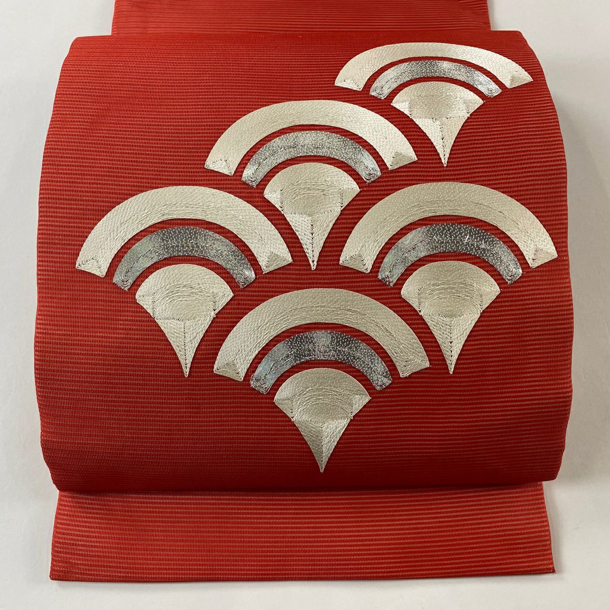 【在庫一掃】 【美品】 開き名古屋帯 優品 夏帯 絽 青海波 銀糸 刺繍 赤 正絹