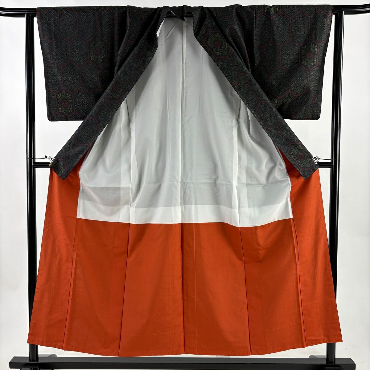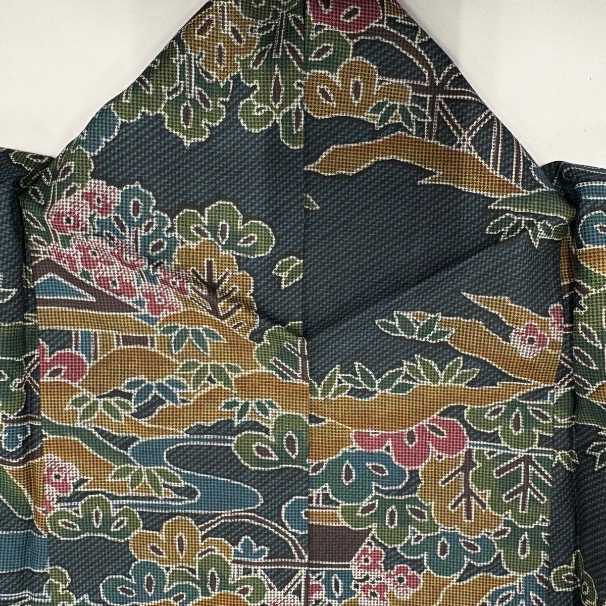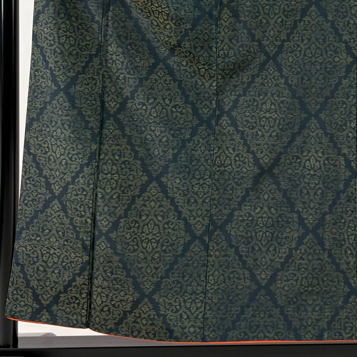【美品】 紬 身丈153cm 裄丈62.5cm S 袷 華文 亀甲 深緑 正絹 優品