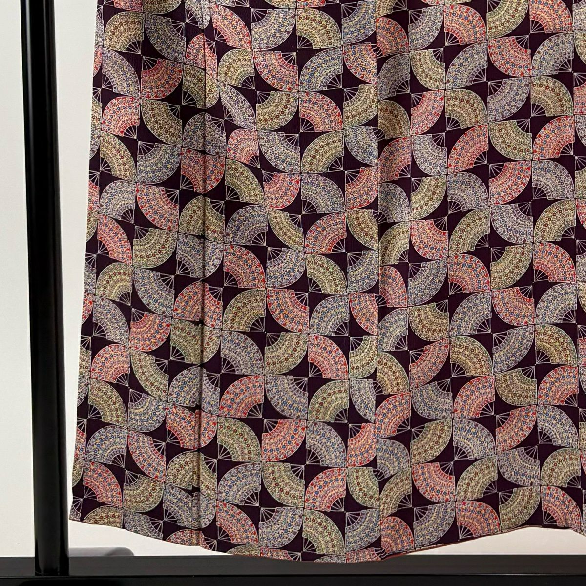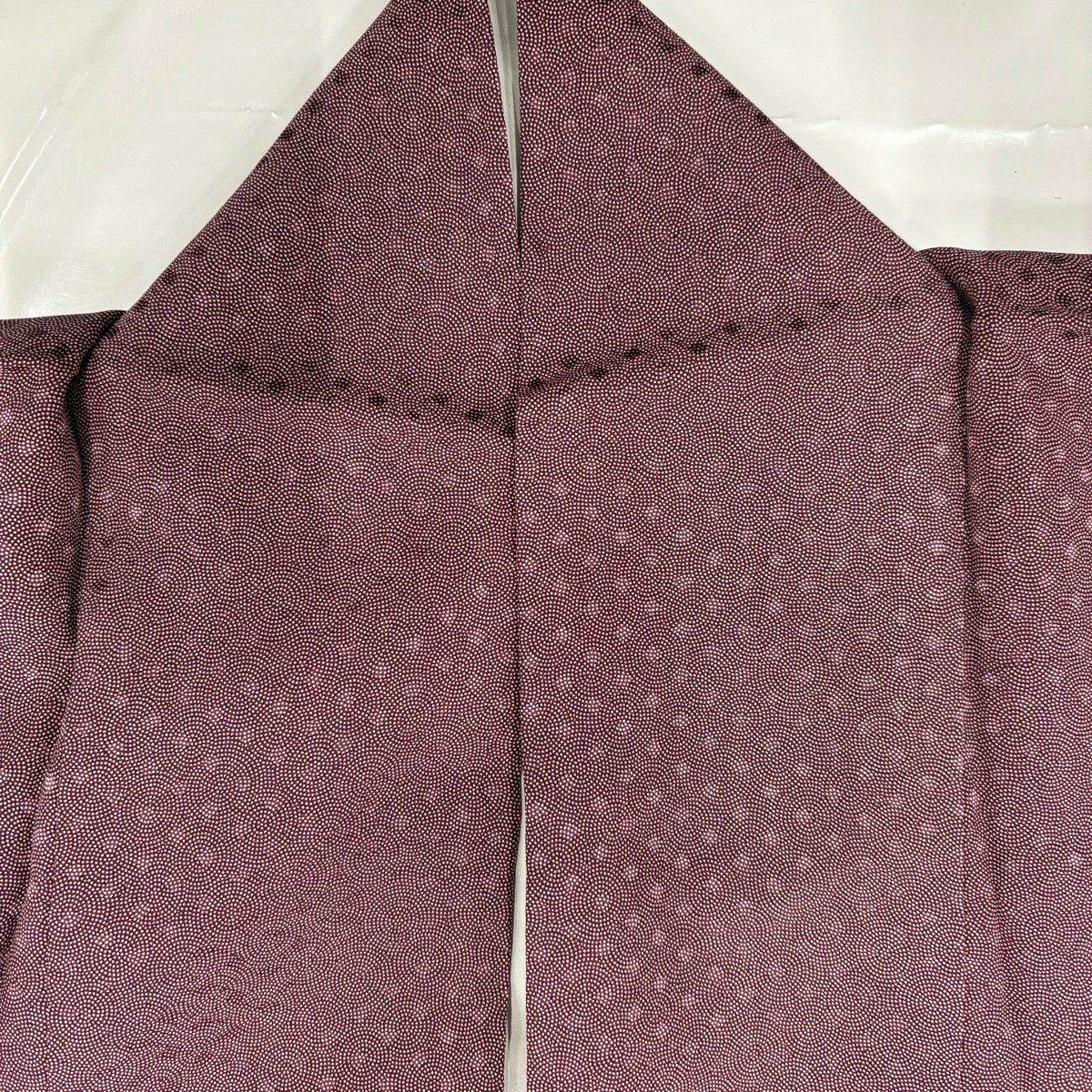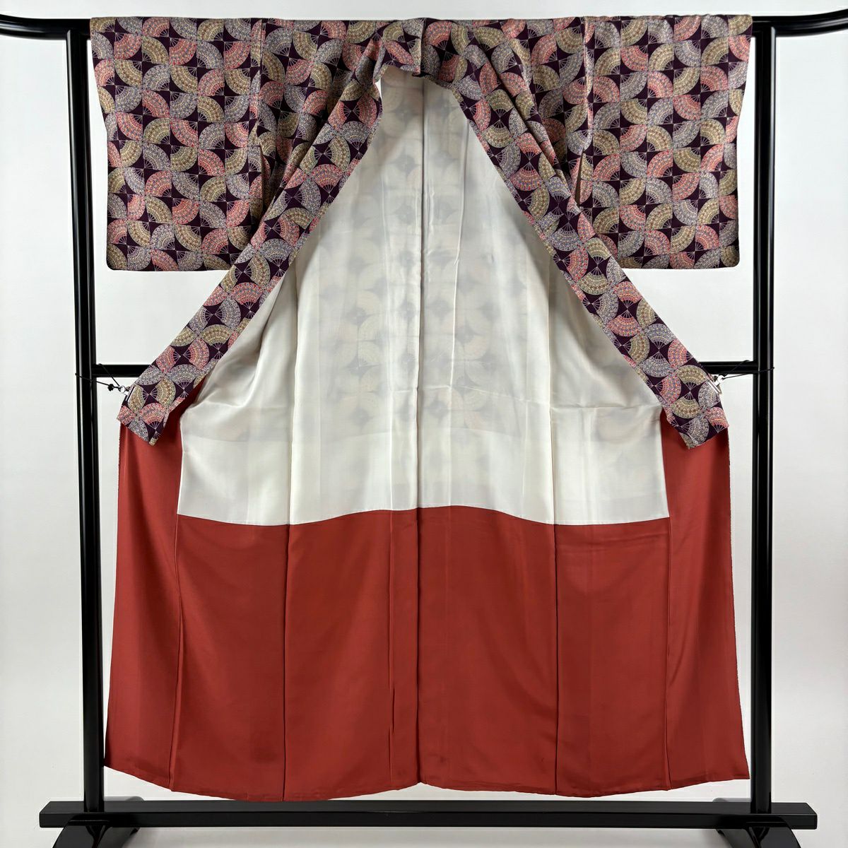 【美品】 小紋 身丈154cm 裄丈62cm S 袷 扇 小花 縮緬 濃紫 正絹 優品