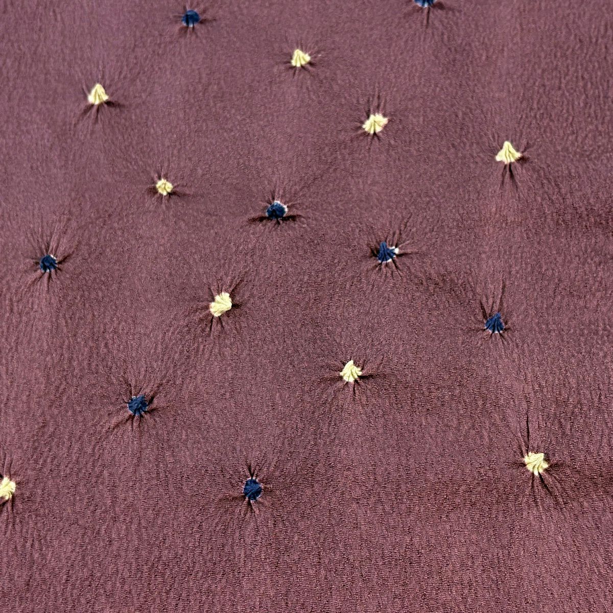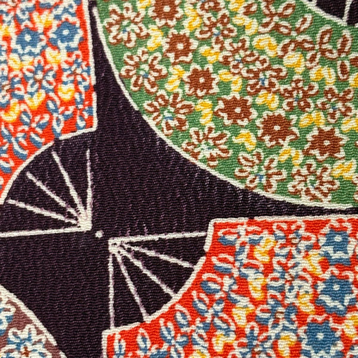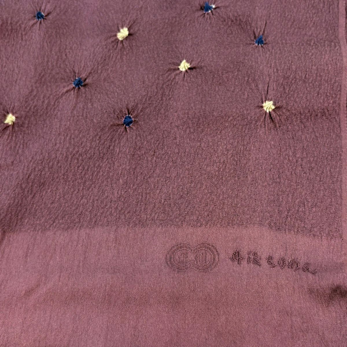 【美品】 小紋 身丈154cm 裄丈62cm S 袷 扇 小花 縮緬 濃紫 正絹 優品