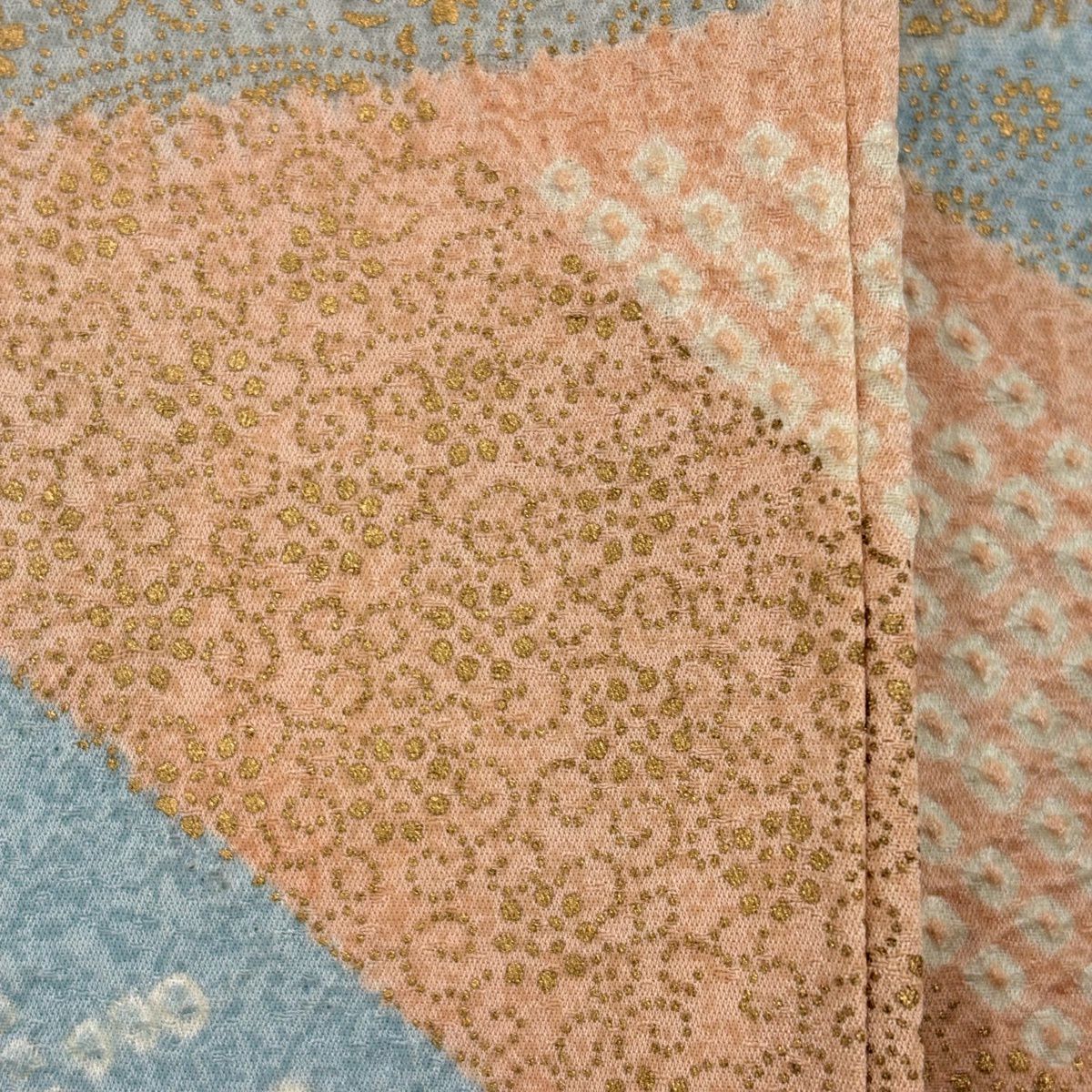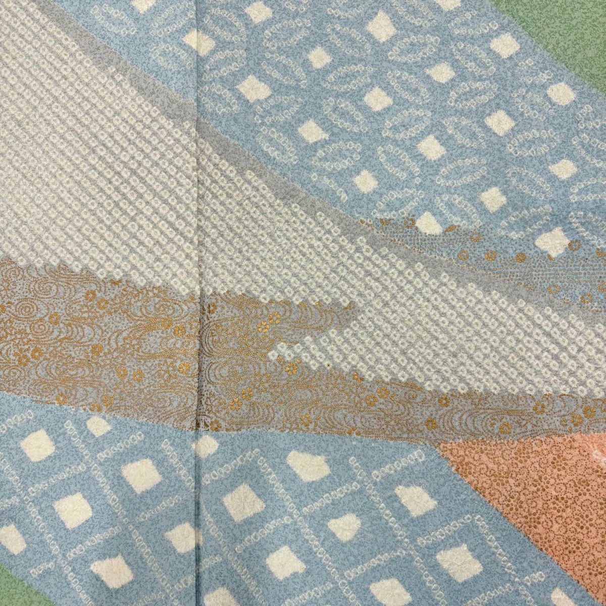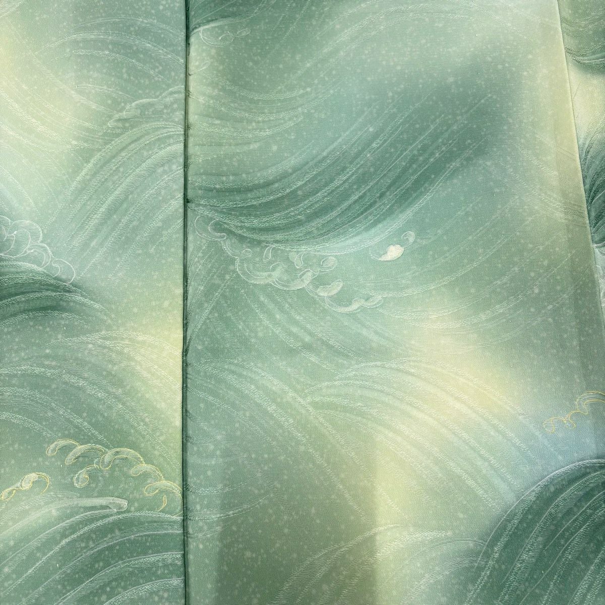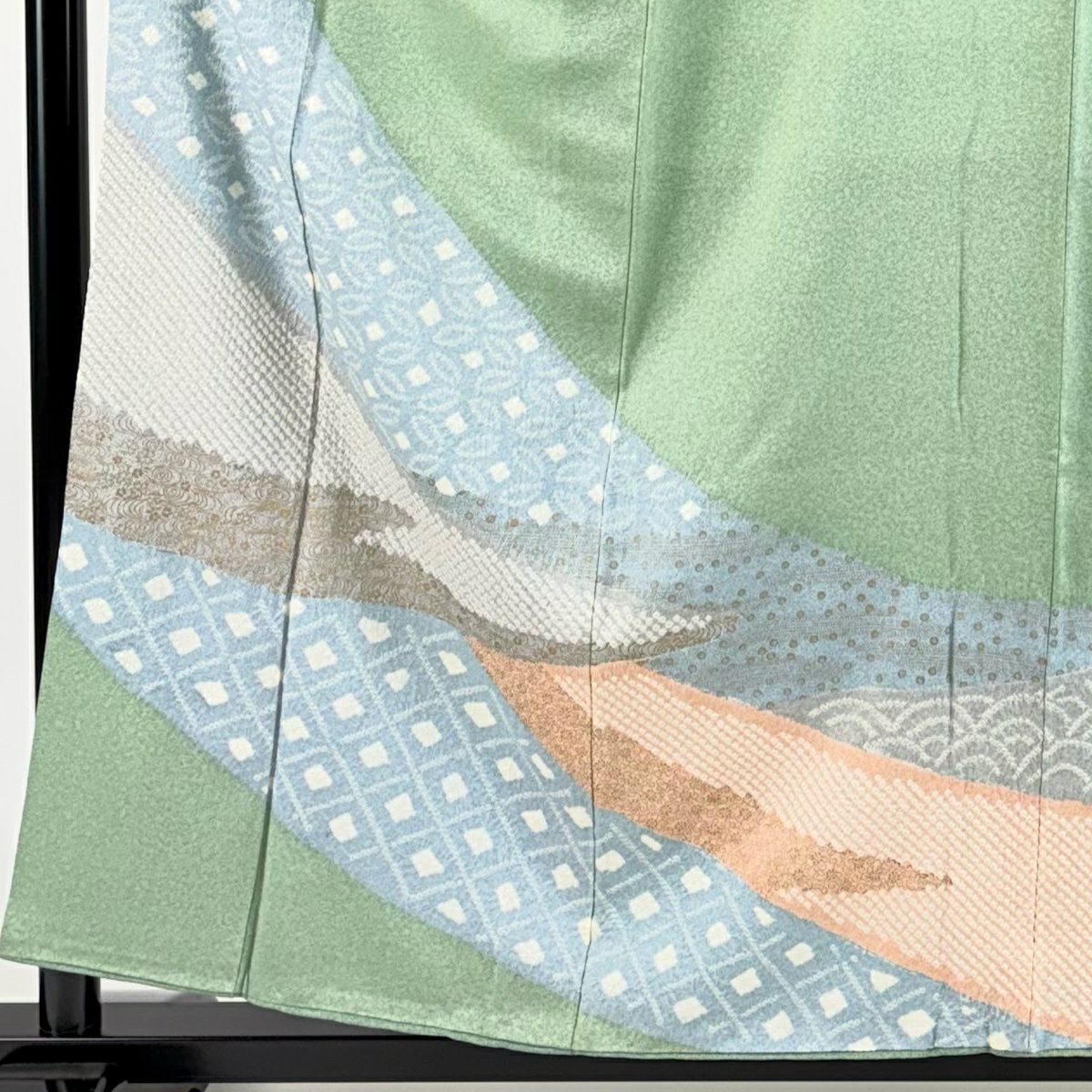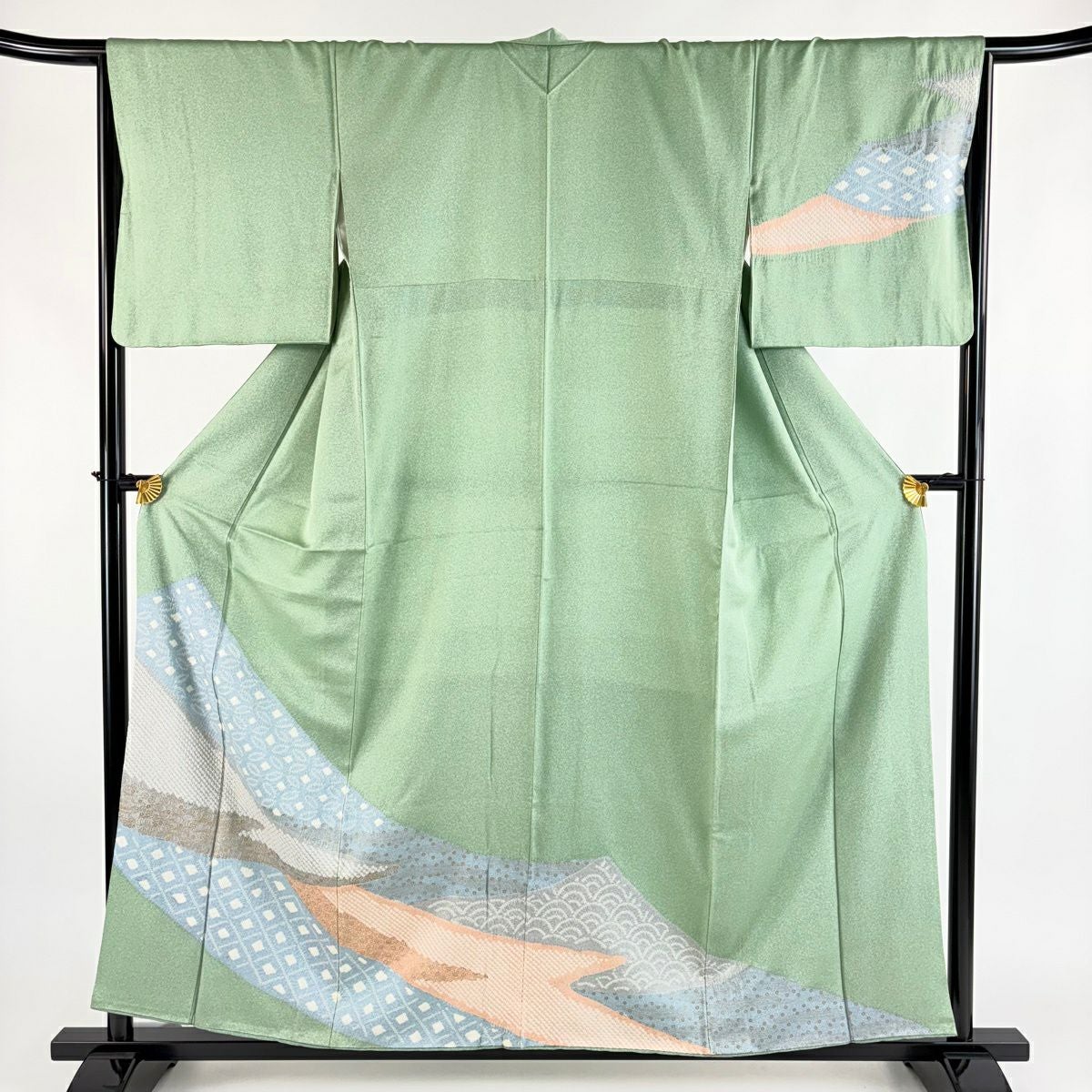 訪問着 身丈156cm 裄丈67cm M 袷 七宝 菱 絞り 金彩 薄緑 正絹 優品