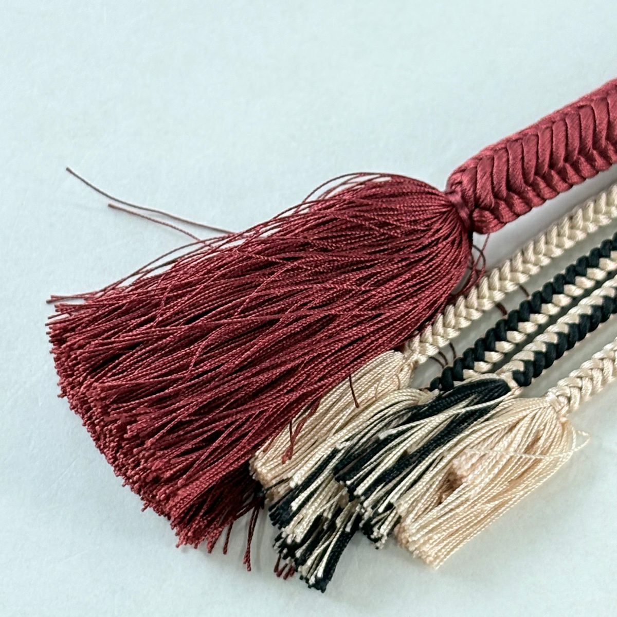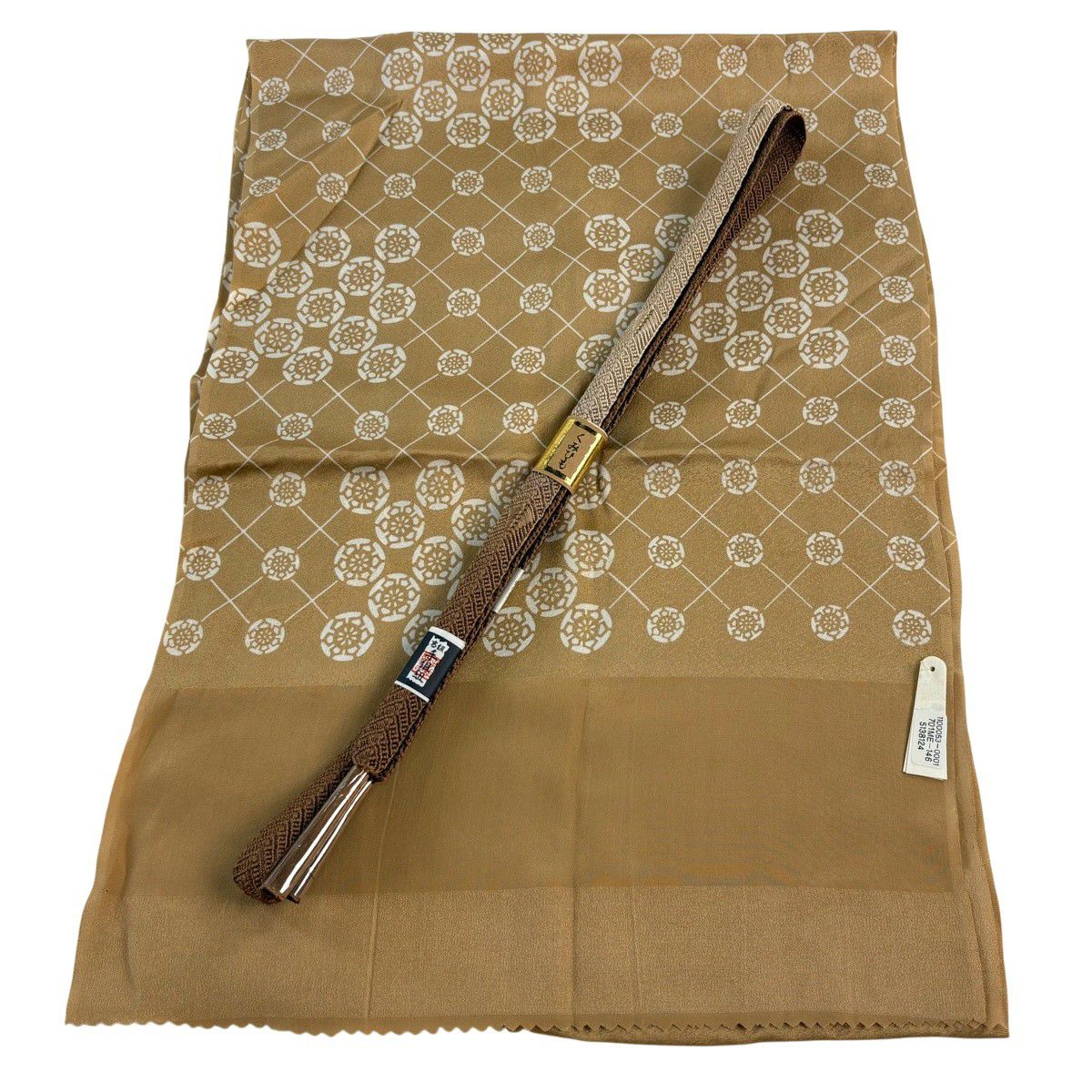 【美品】和装セット 優品 帯締め帯揚げ2点セット 華文 斜め格子 茶色 正絹 和装小物