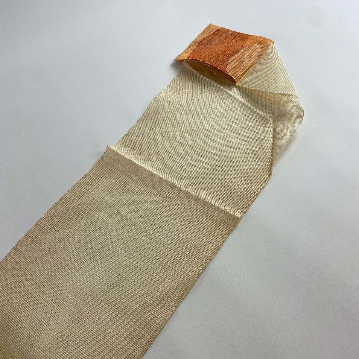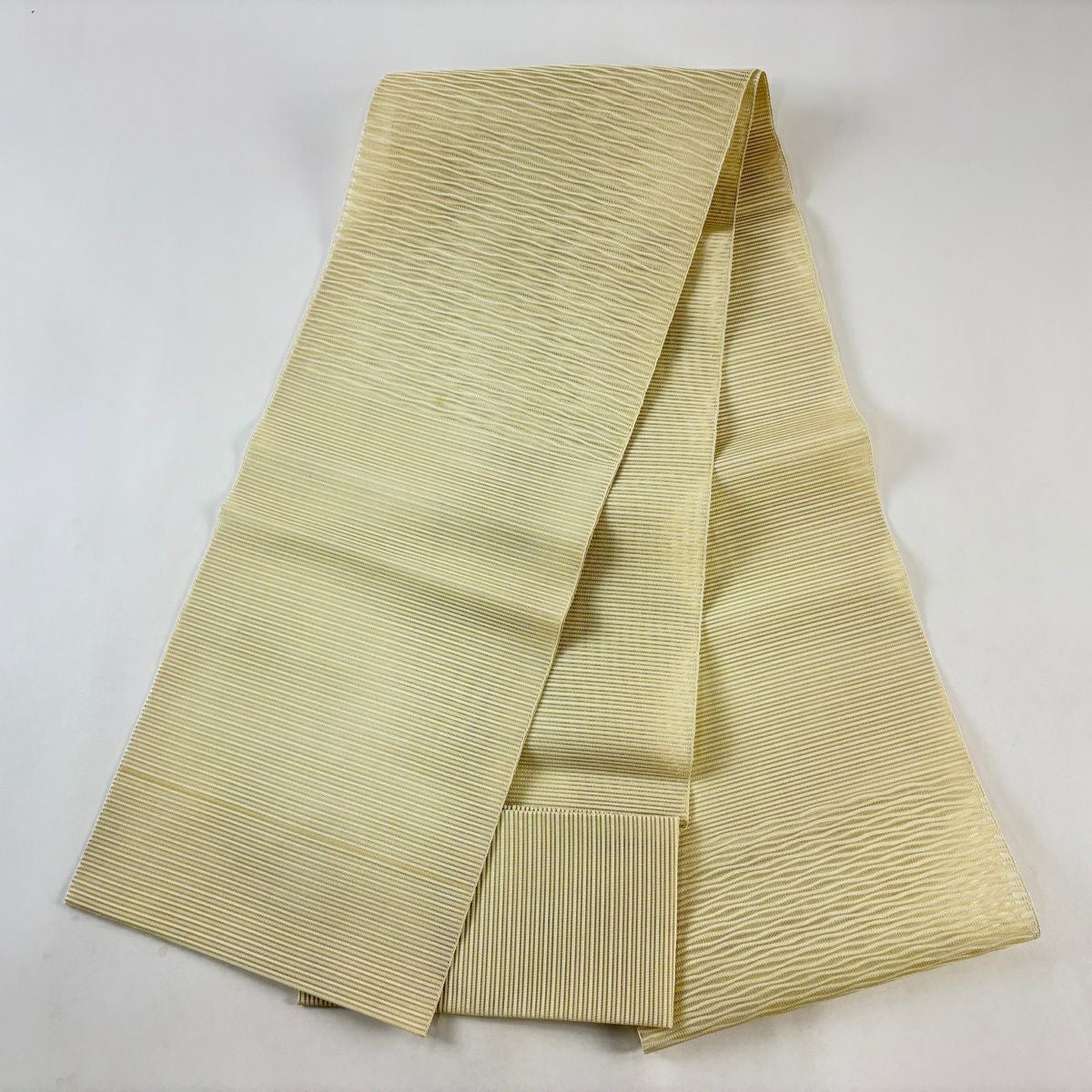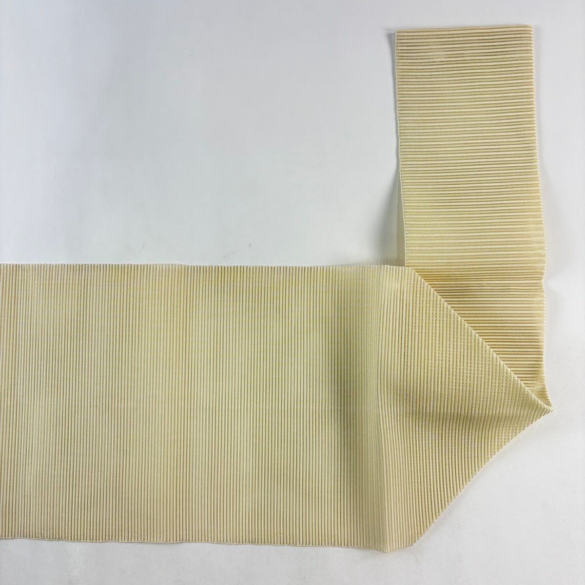 名古屋帯 優品 八寸名古屋帯 松葉仕立て トンネル仕立て 夏帯 よろけ縞 ベージュ 正絹