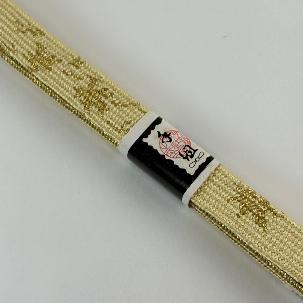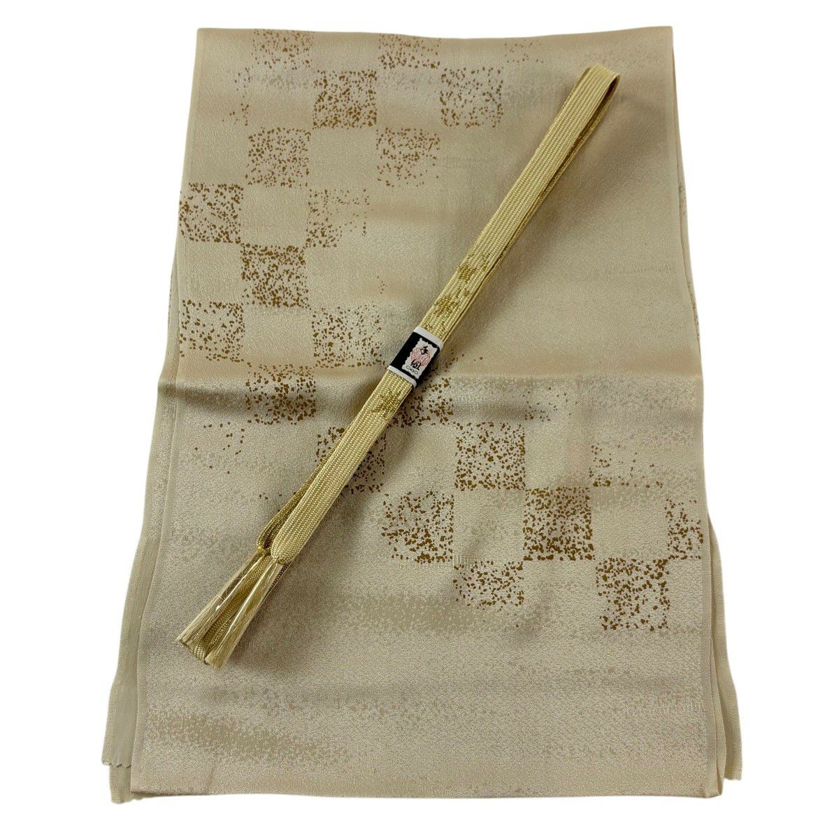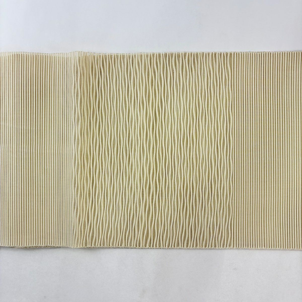 名古屋帯 優品 八寸名古屋帯 松葉仕立て トンネル仕立て 夏帯 よろけ縞 ベージュ 正絹