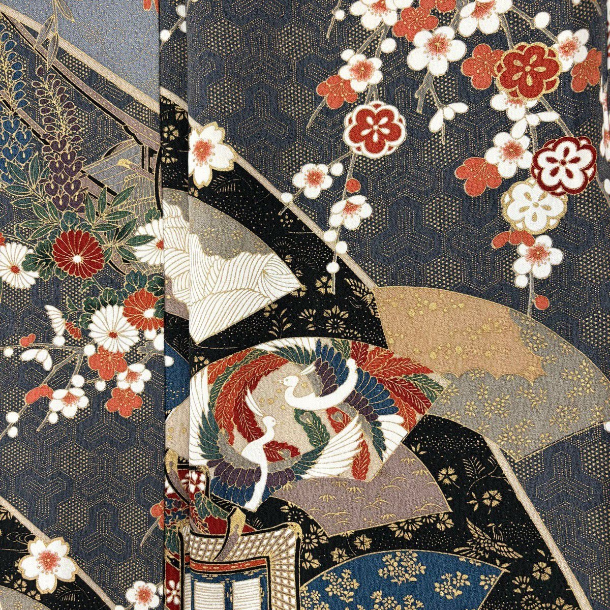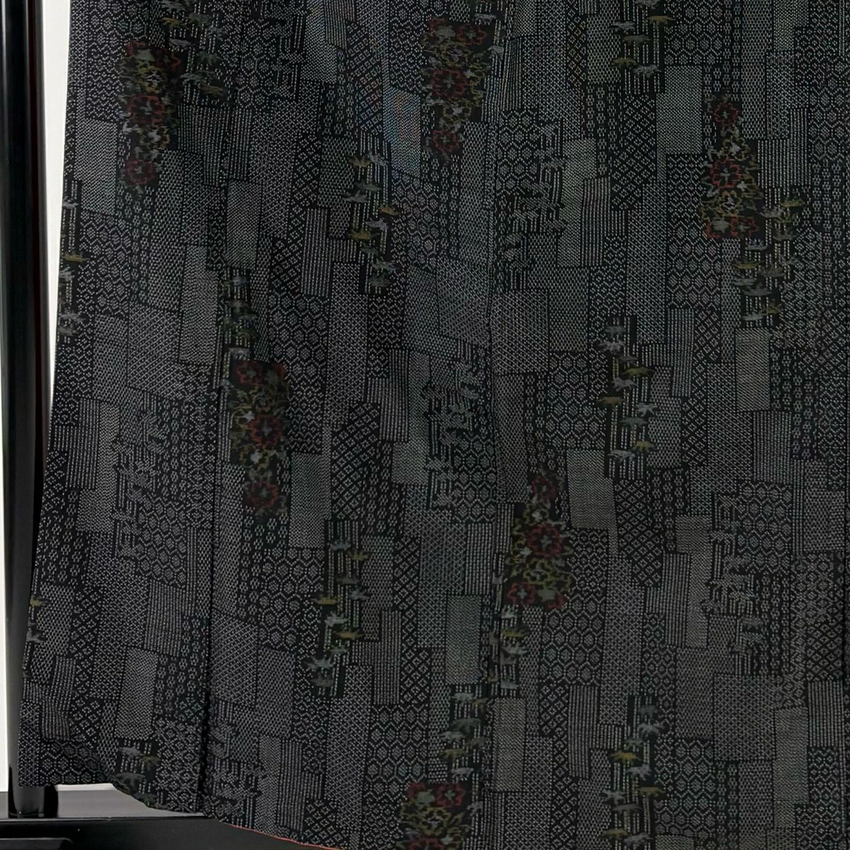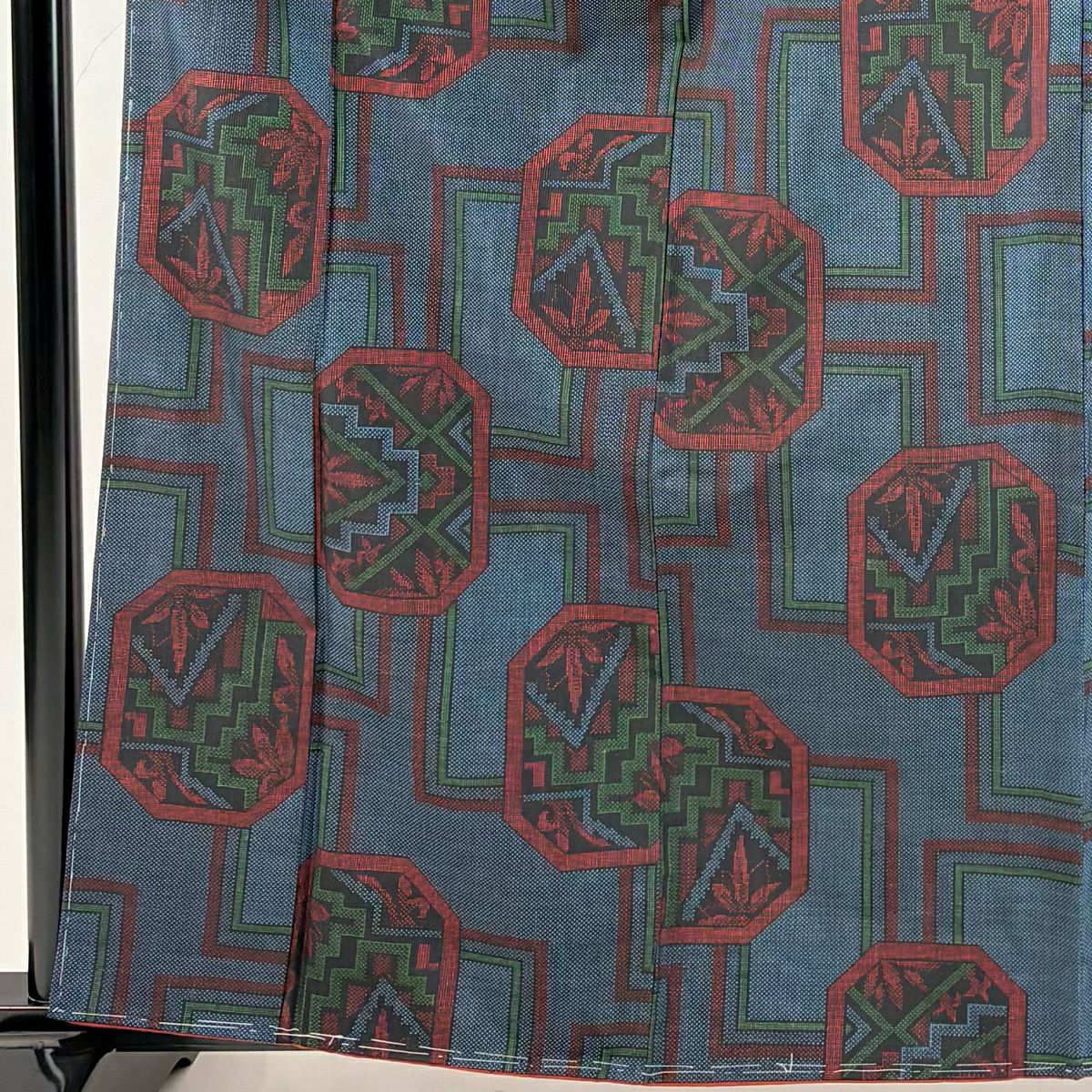 小紋 身丈156.5cm 裄丈64cm M 袷 草花 幾何学 縮緬 紺色 正絹 優品