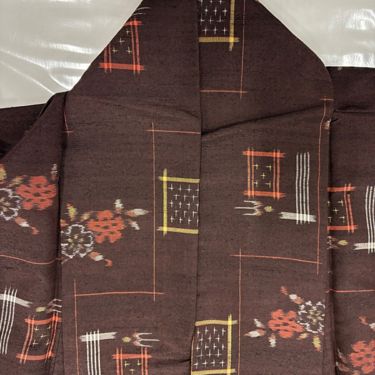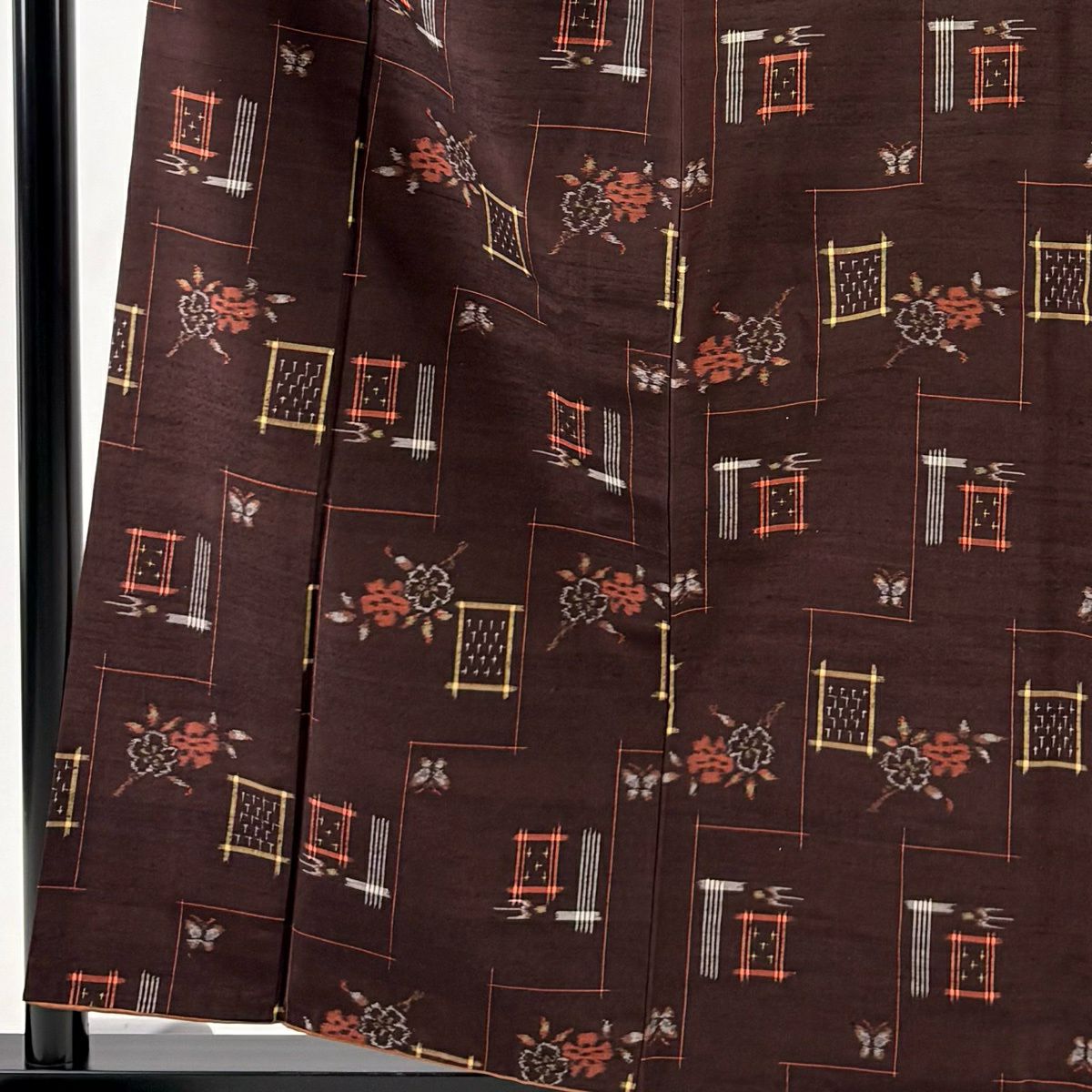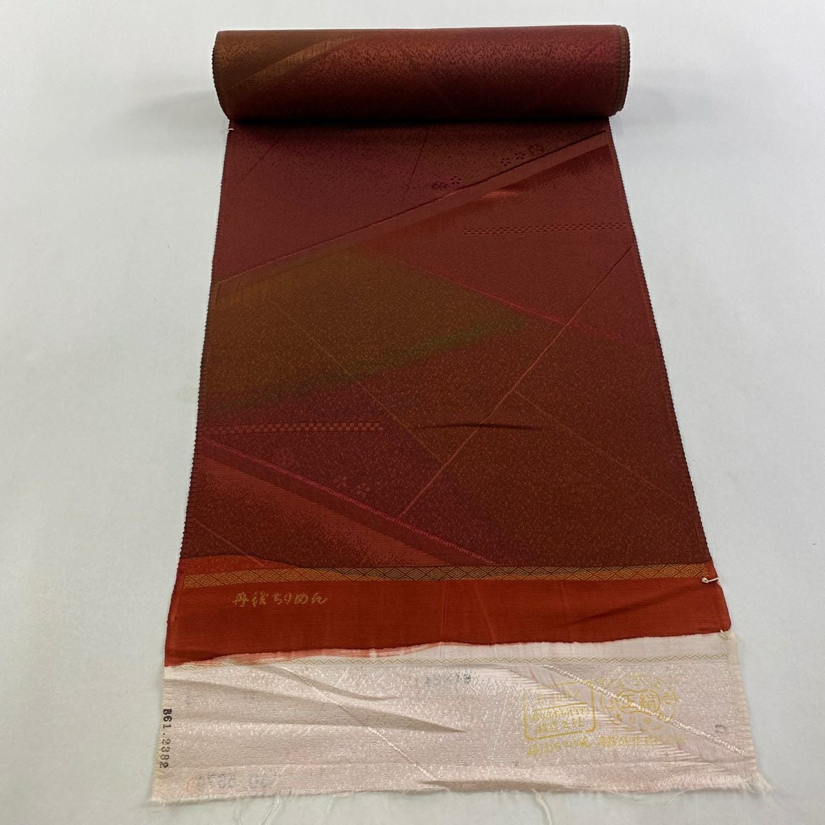【在庫一掃】 反物 優品 羽尺 羽織 和装コート 地紋 幾何学 ぼかし 赤茶 正絹