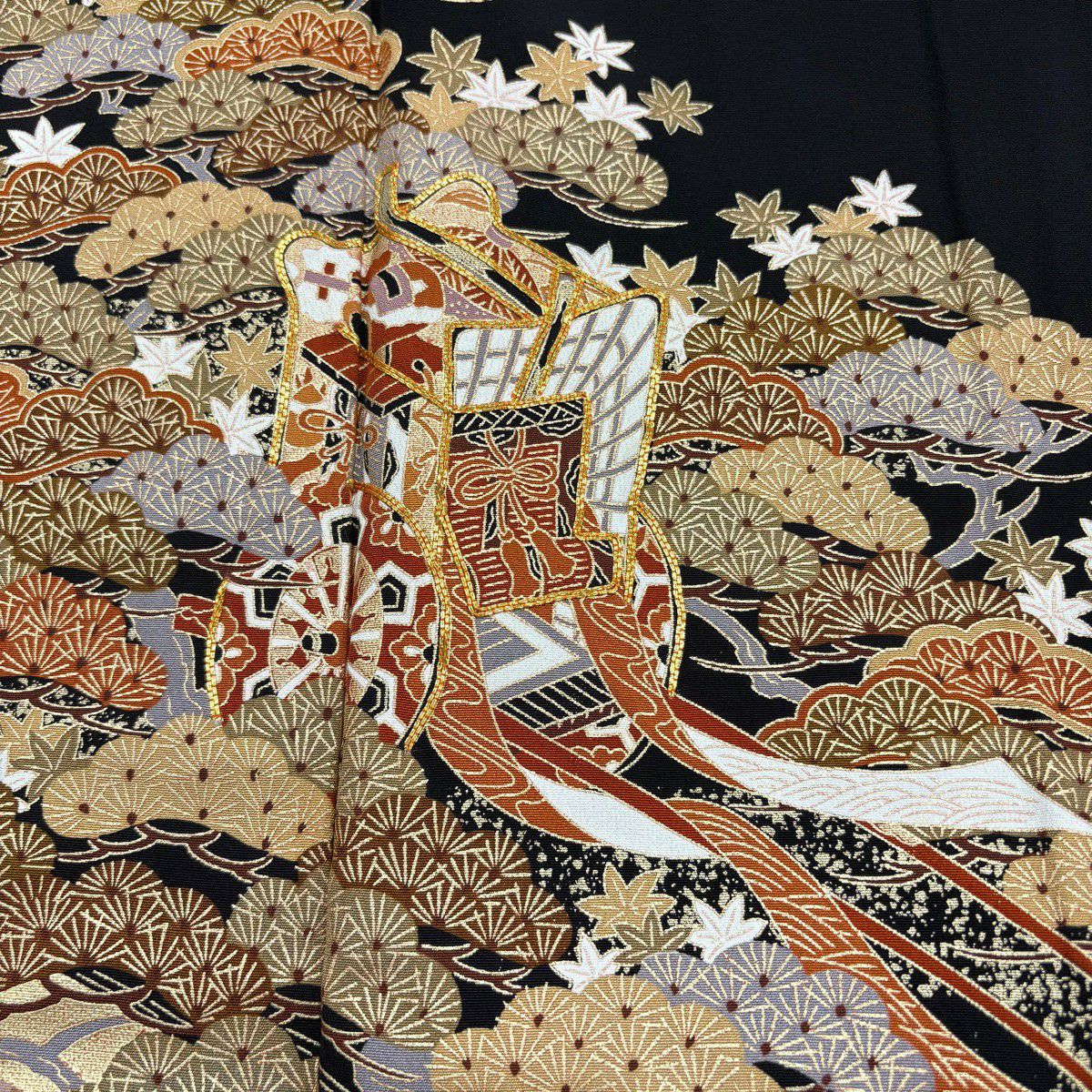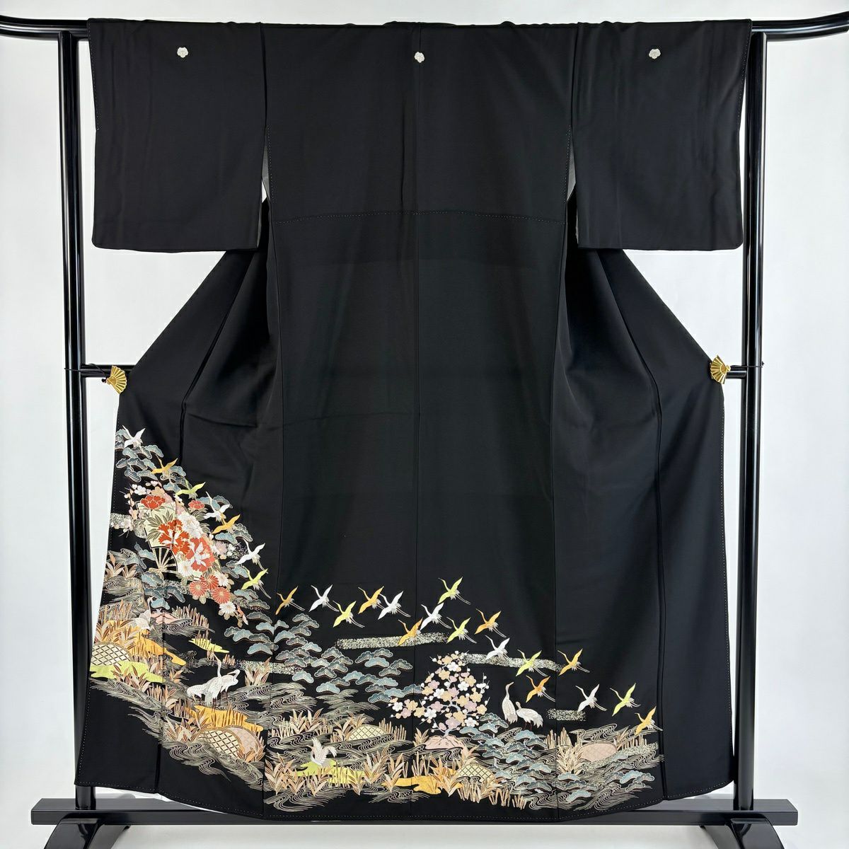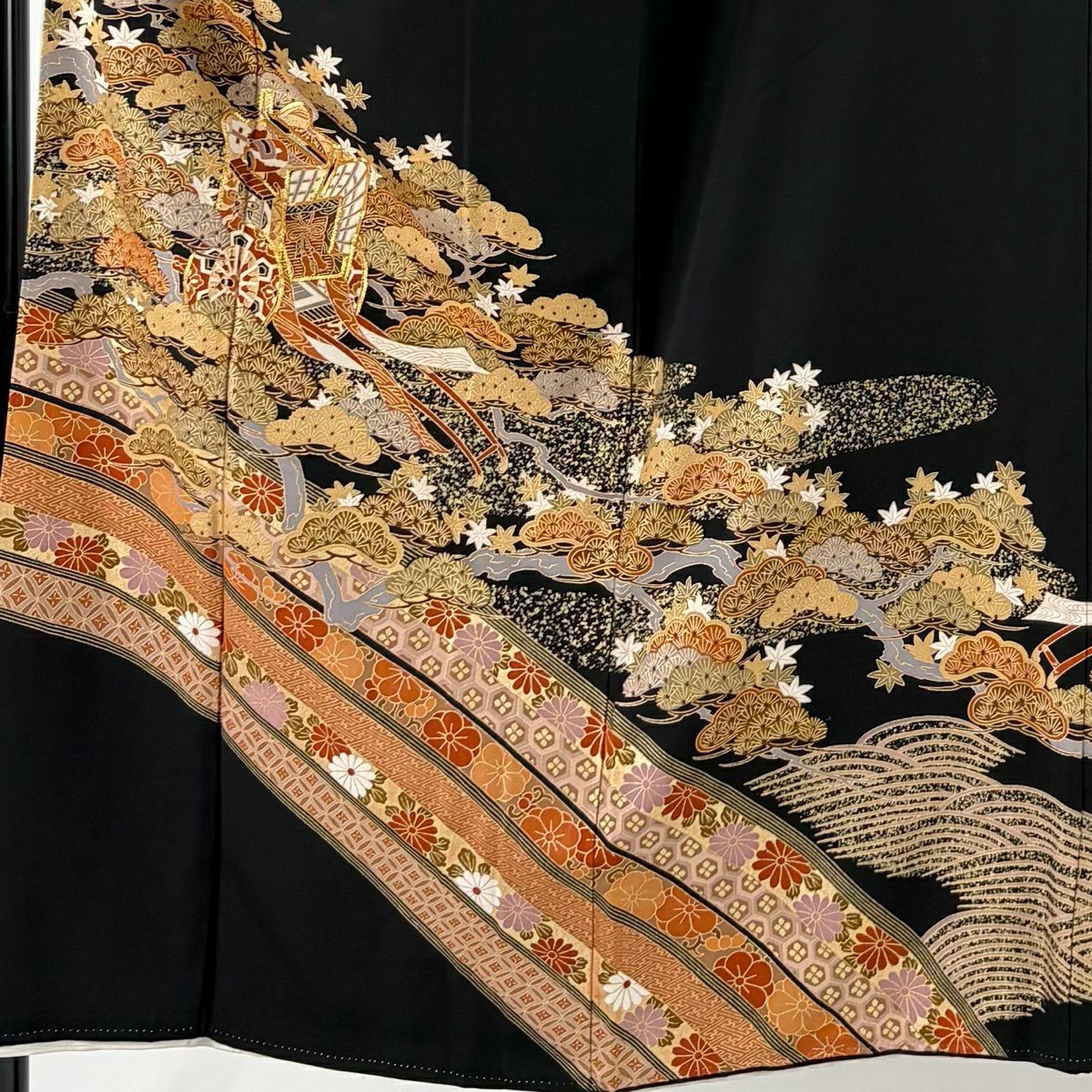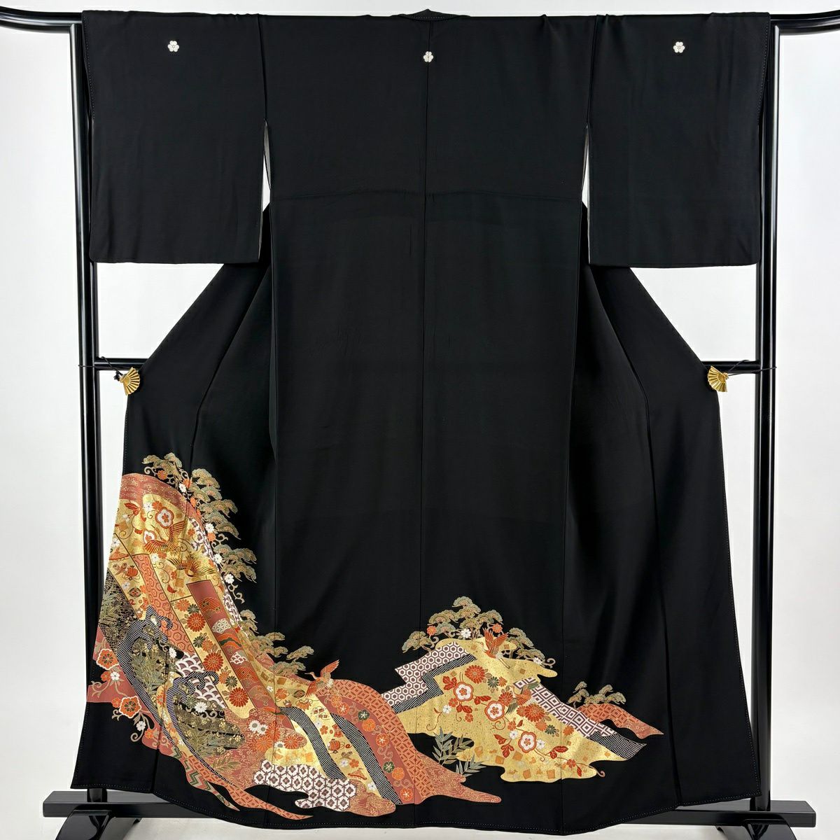 黒留袖 身丈152.5cm 裄丈61cm S 袷 御所車 松 金糸 金彩 黒 正絹 優品