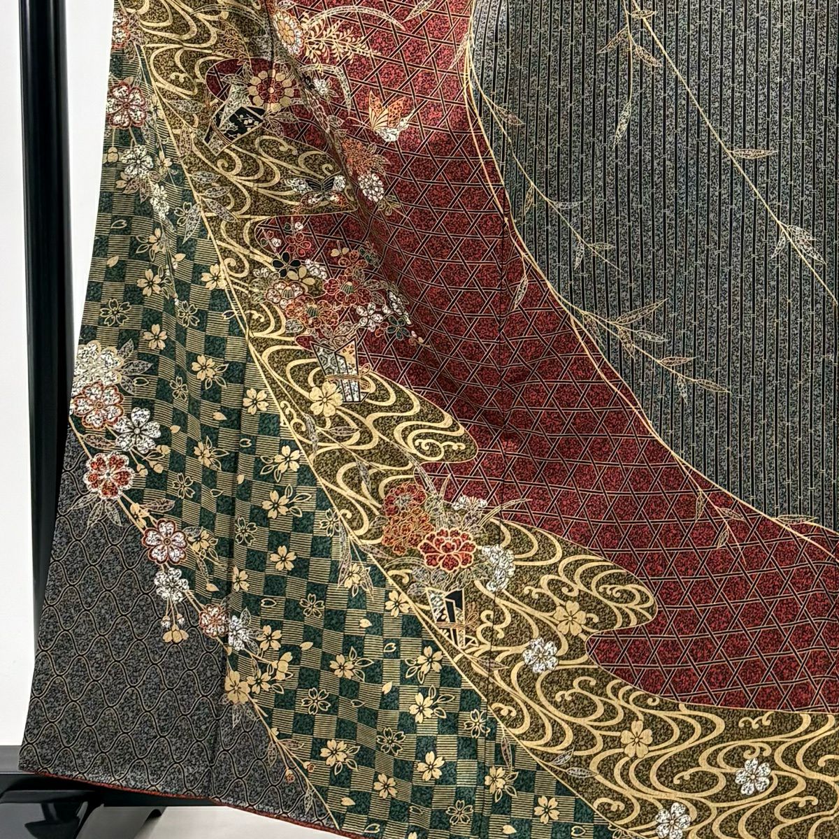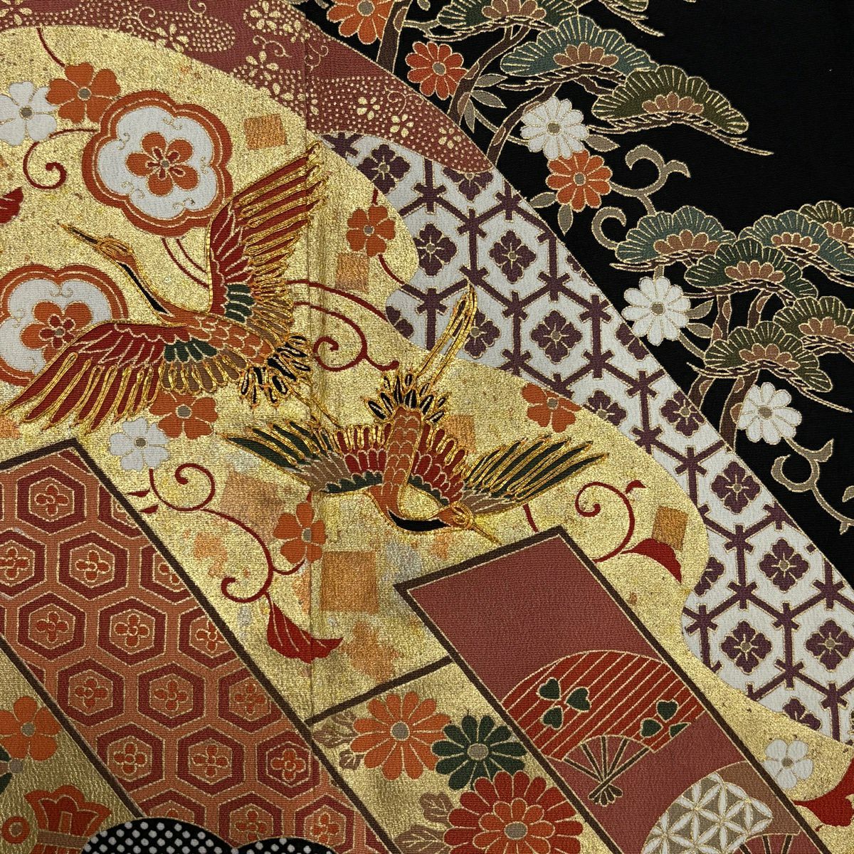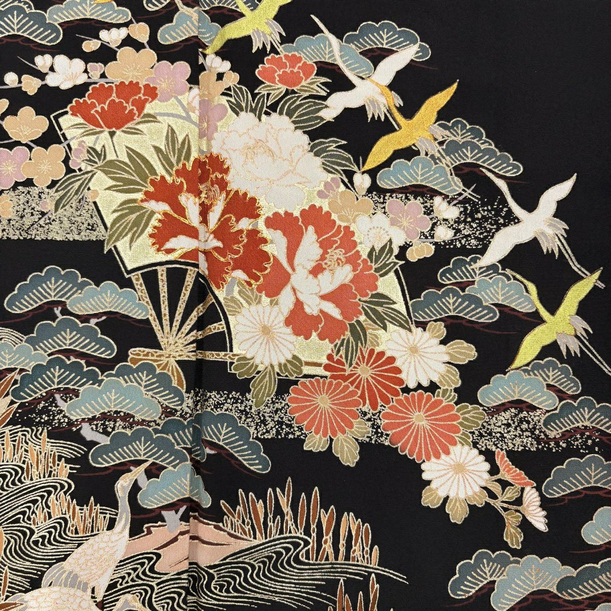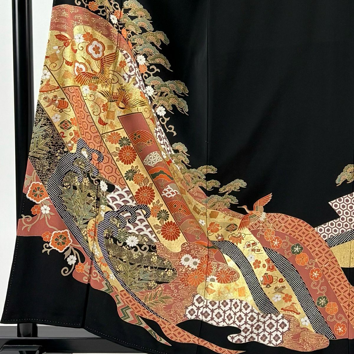 黒留袖 身丈152.5cm 裄丈61cm S 袷 御所車 松 金糸 金彩 黒 正絹 優品