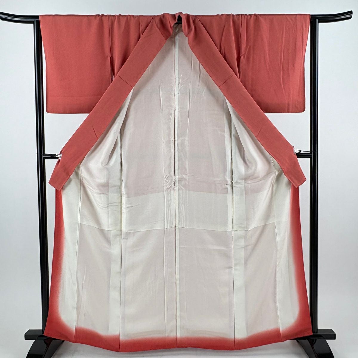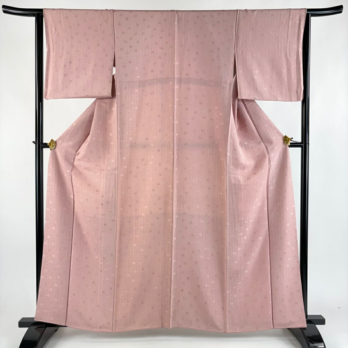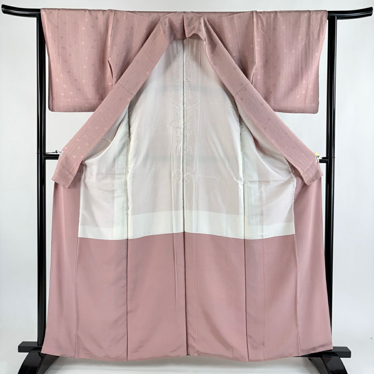 色無地 身丈161.5cm 裄丈63.5cm S 袷 地紋 ピンク 正絹 優品 一つ紋