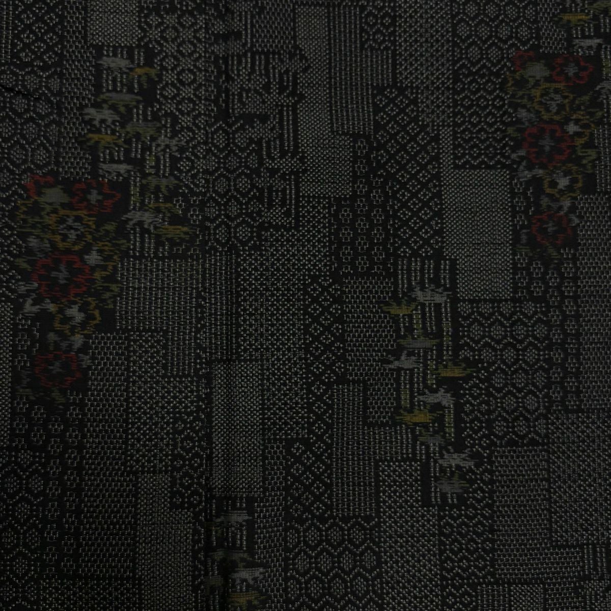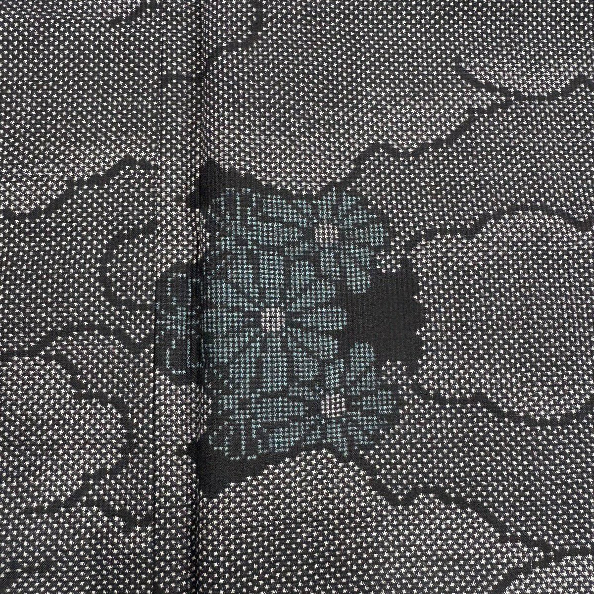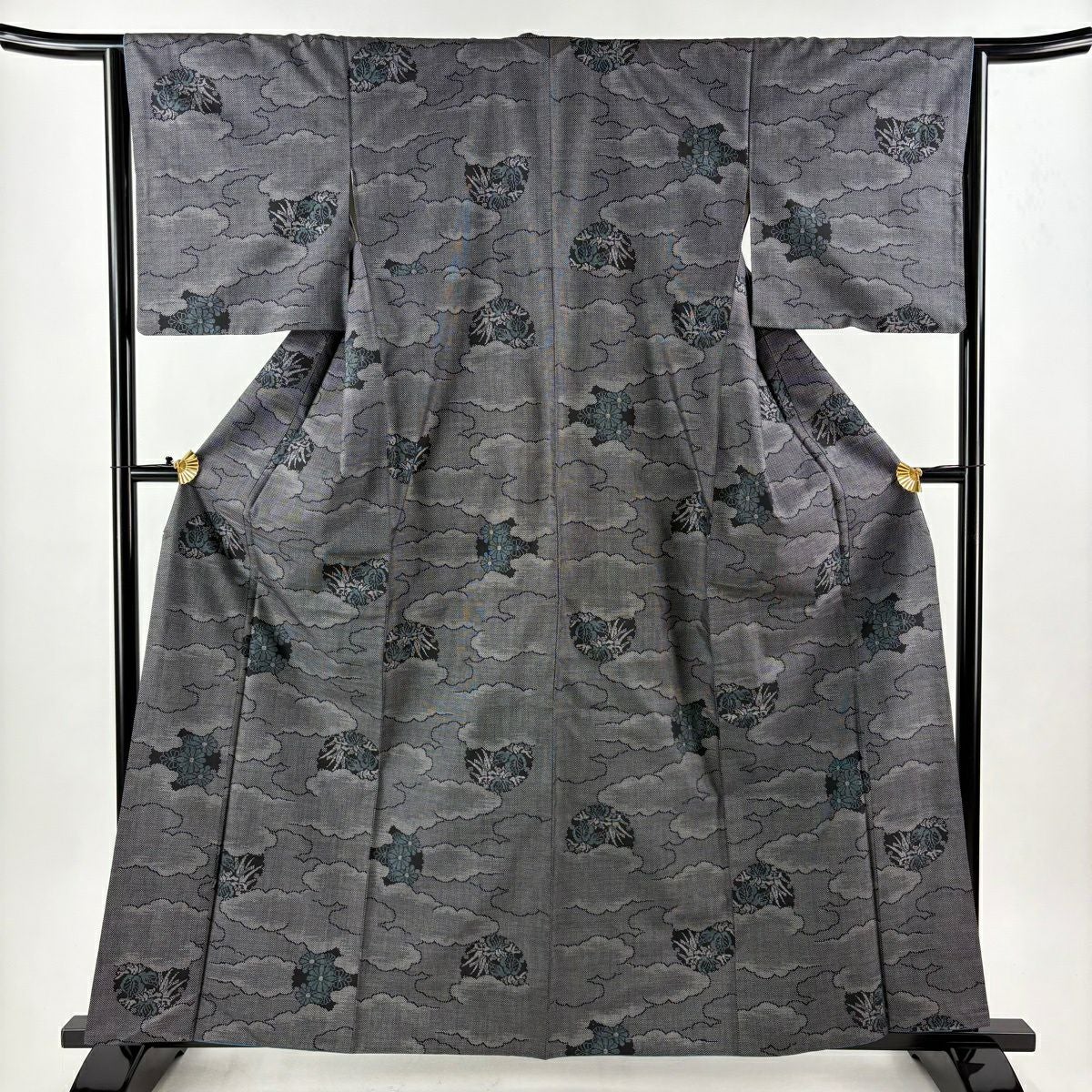【美品】 紬 身丈161cm 裄丈64.5cm M 袷 雲文 草花 墨色 正絹 優品