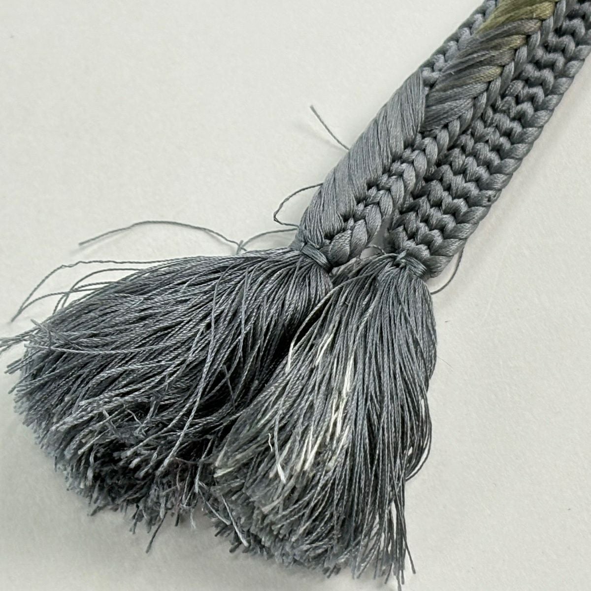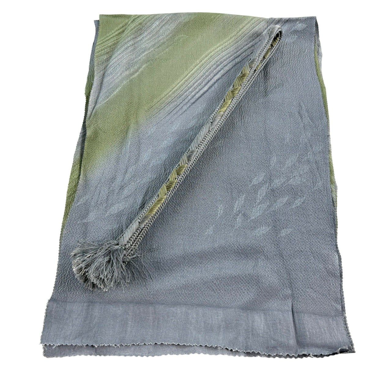 【美品】帯締め 優品 フォーマル 幾何学模様 金糸 ぼかし 灰緑 正絹 和装小物