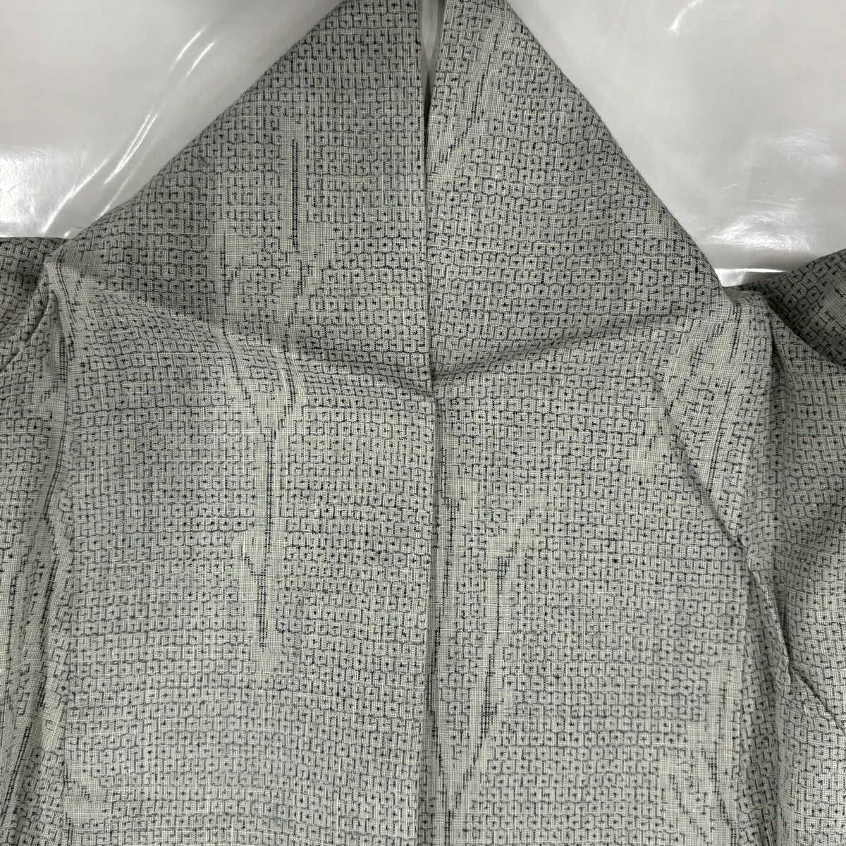 【美品】 紬 身丈159cm 裄丈65cm M 袷 樹木 亀甲絣 青灰色 正絹 優品