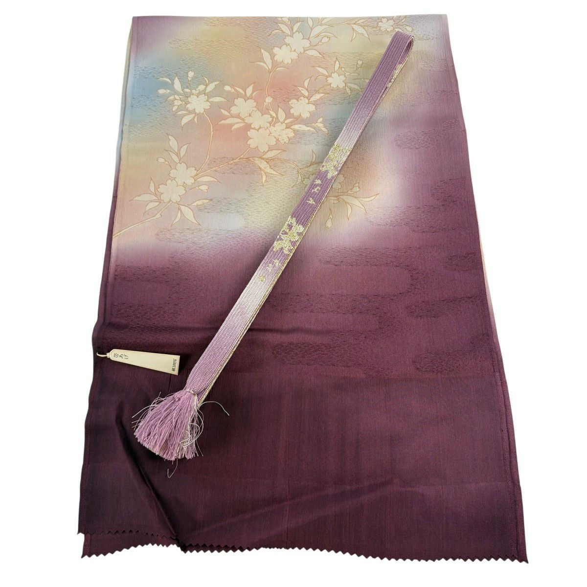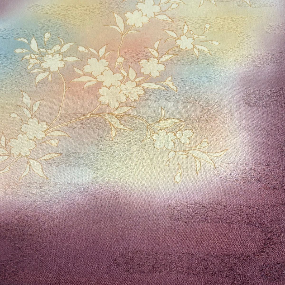 【美品】和装セット 優品 帯締め帯揚げ2点セット 桜 ヱ霞 ぼかし 紫 正絹 和装小物