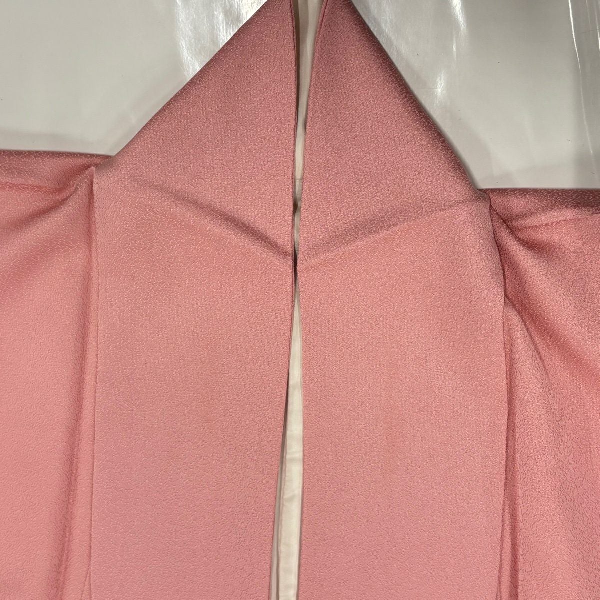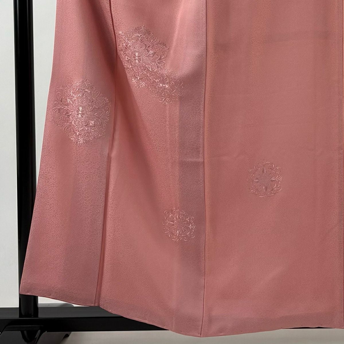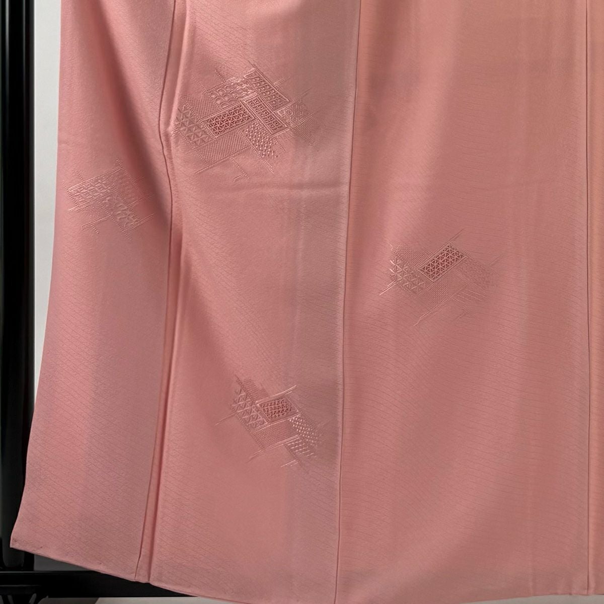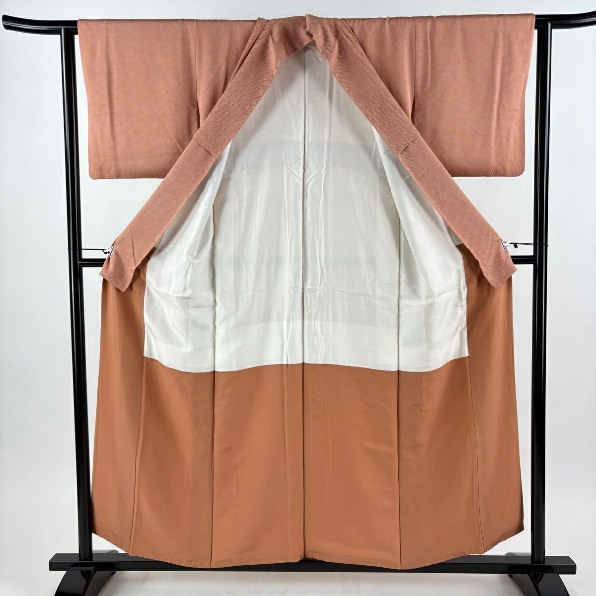 色無地 身丈164.5cm 裄丈70.5cm L 袷 地紋 サーモンピンク 正絹 優品 一つ紋