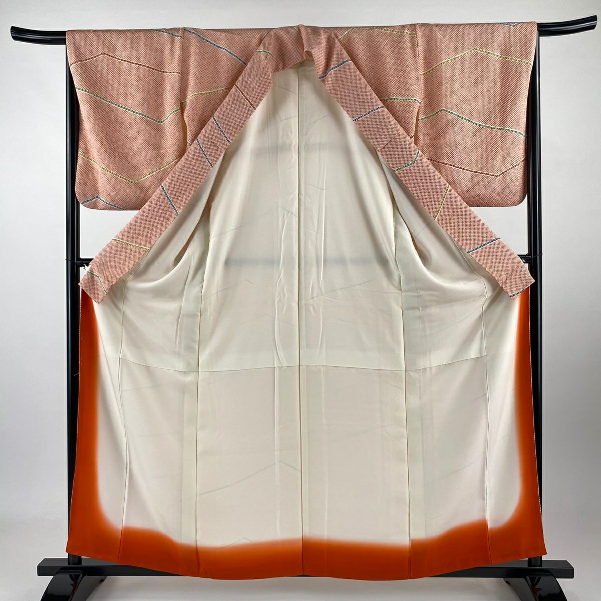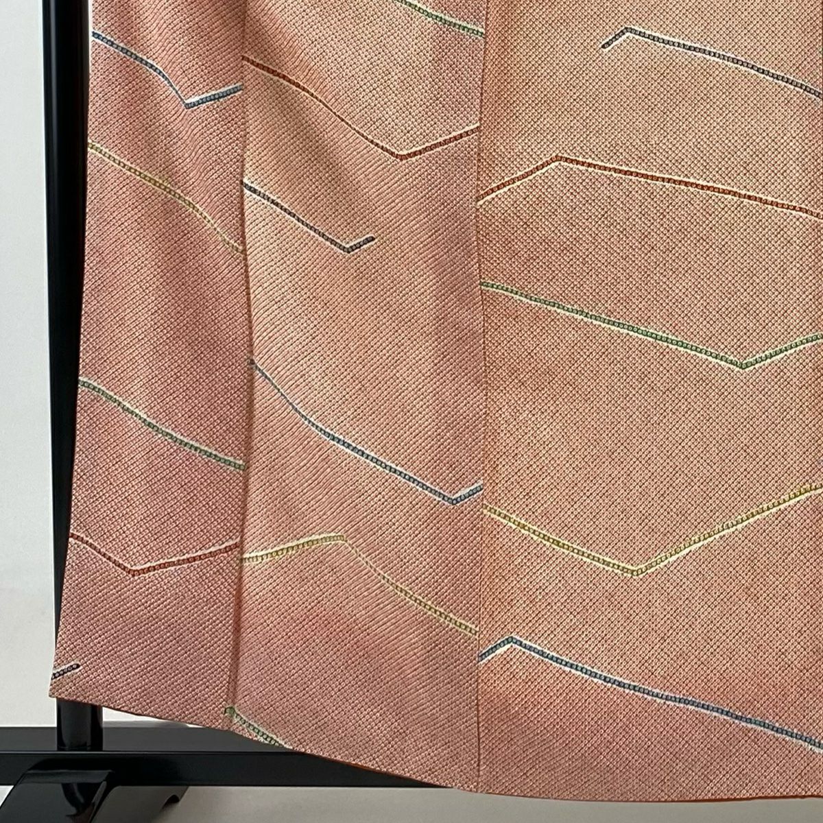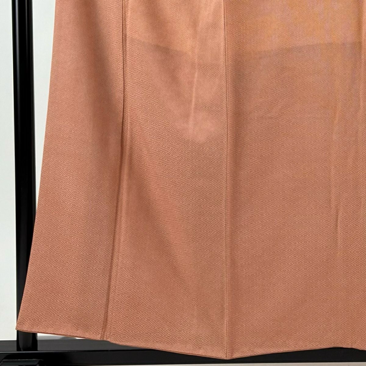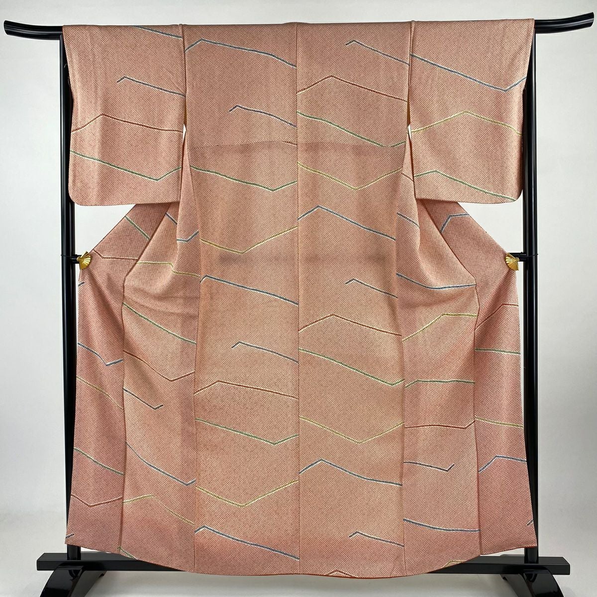 色無地 身丈164.5cm 裄丈70.5cm L 袷 地紋 サーモンピンク 正絹 優品 一つ紋