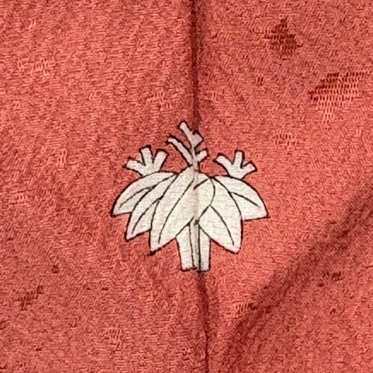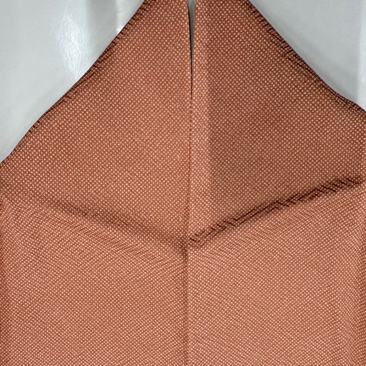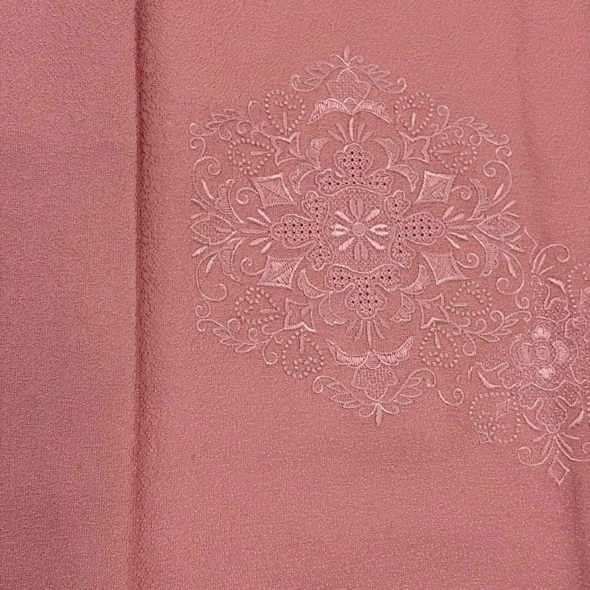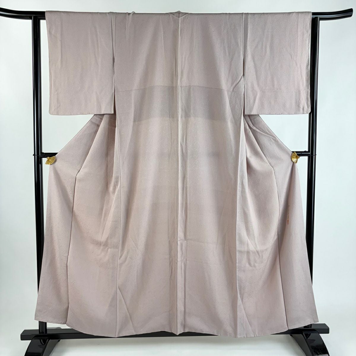 色無地 身丈164.5cm 裄丈70.5cm L 袷 地紋 サーモンピンク 正絹 優品 一つ紋