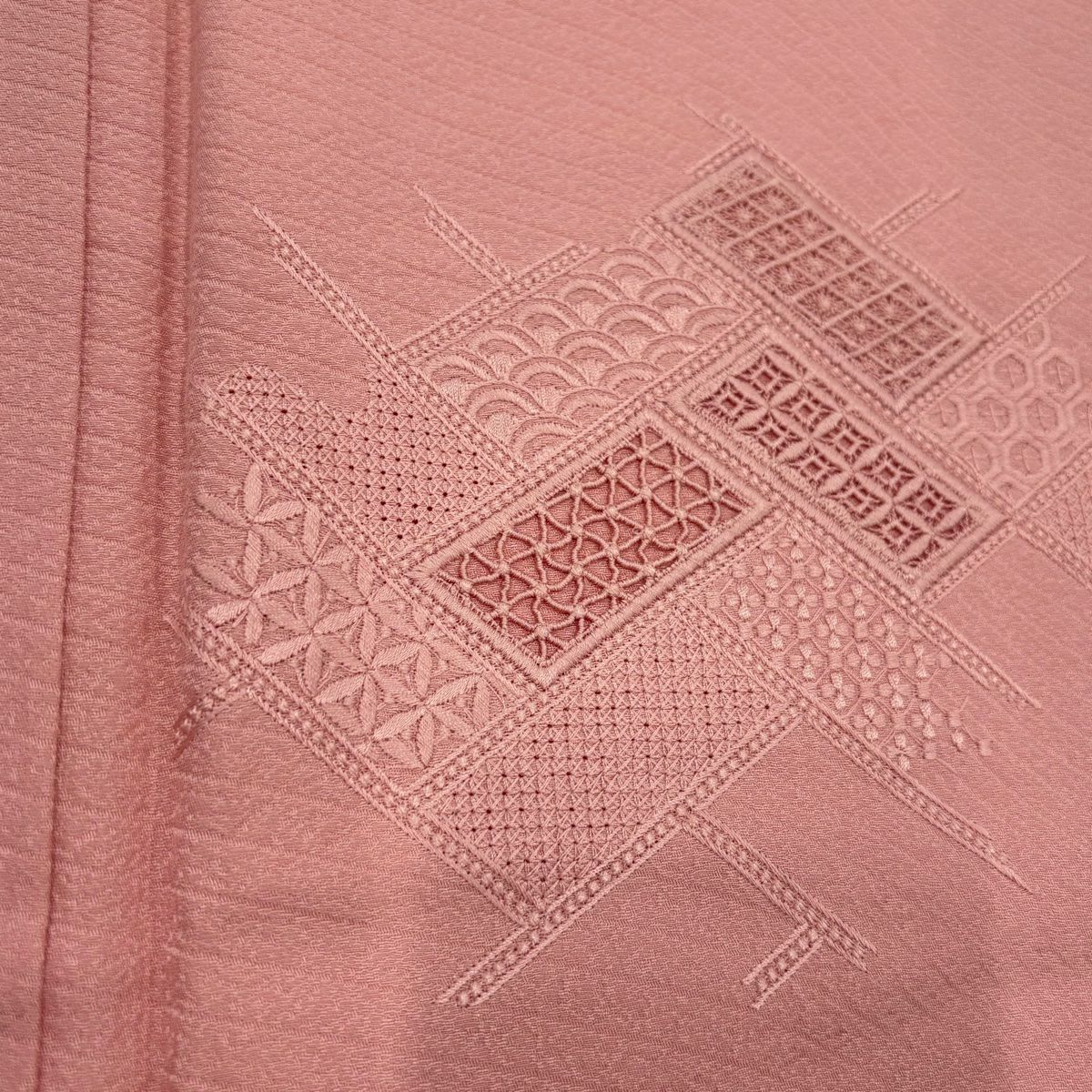 【美品】 付下げ 身丈158.5cm 裄丈66cm M 袷 華文 刺繍 ピンク 正絹 優品