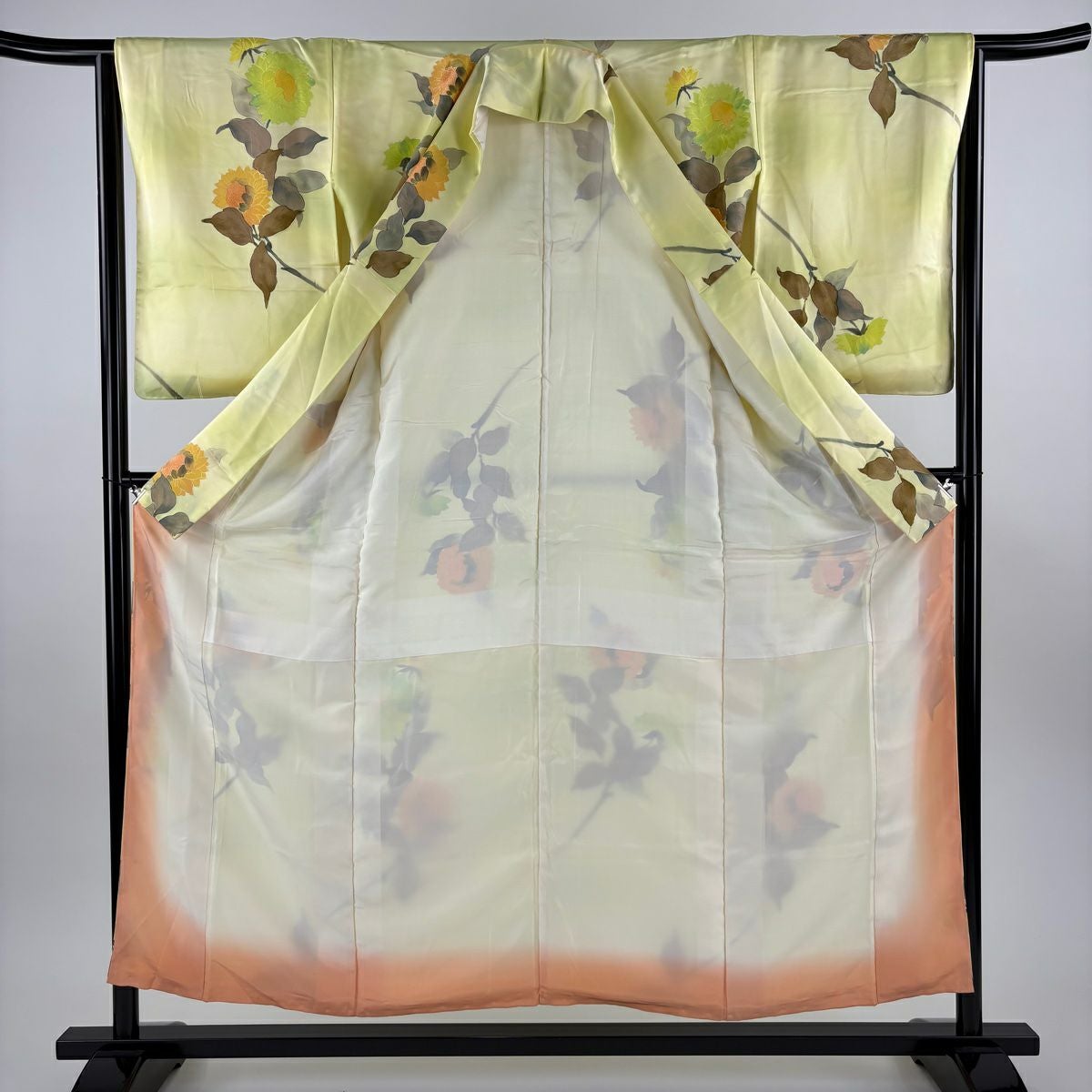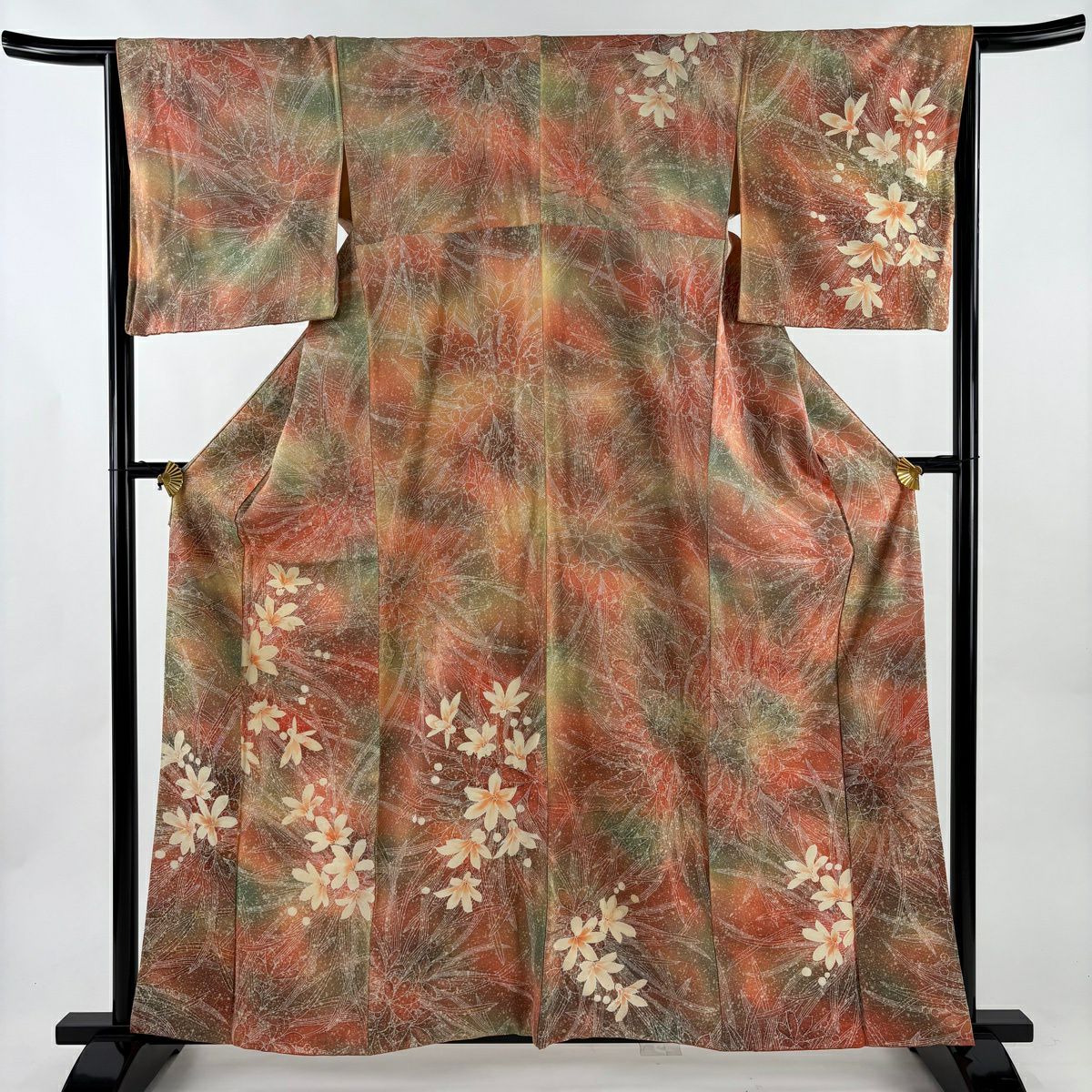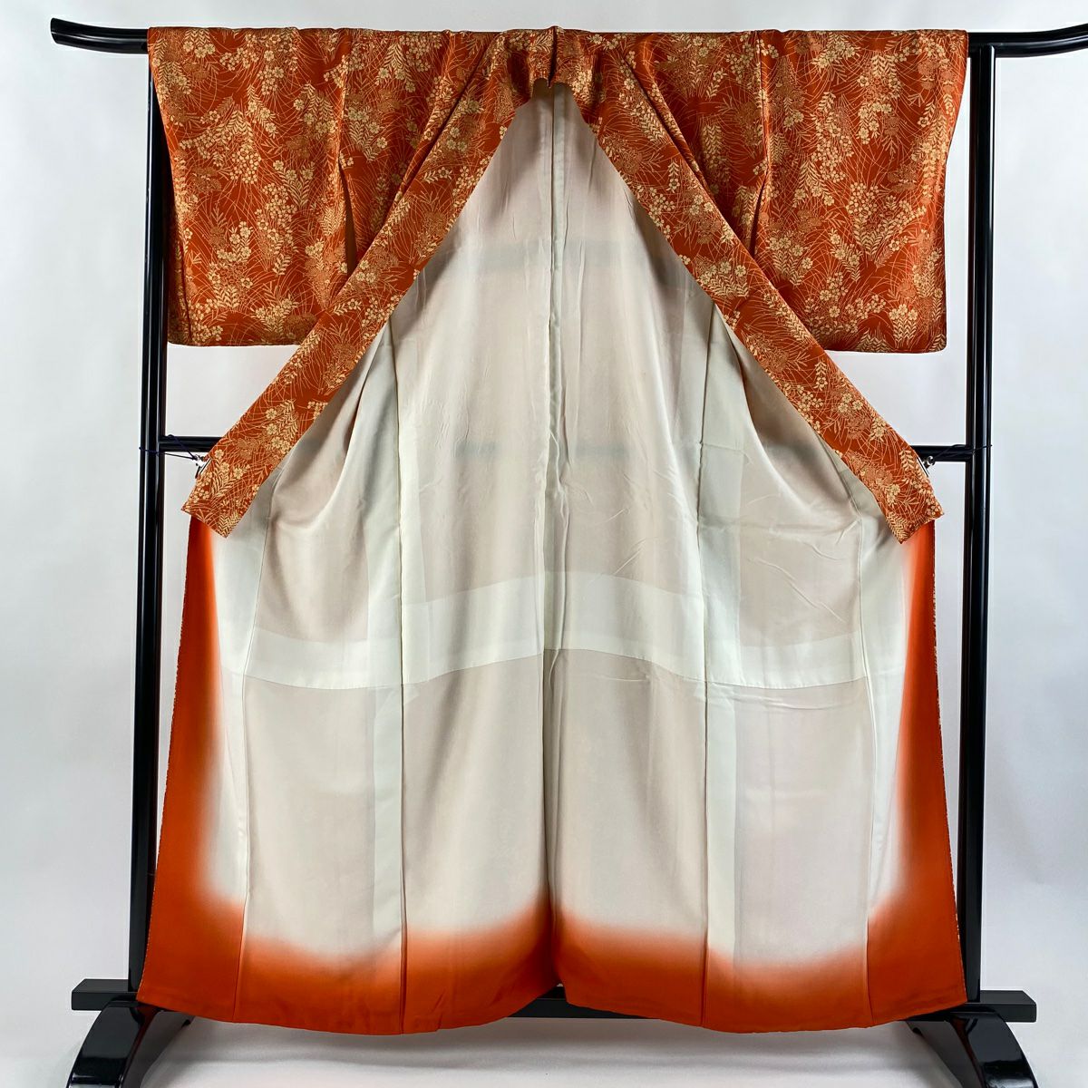 付下げ 身丈160.5cm 裄丈67cm M 袷 草花 金彩 ぼかし オレンジ 正絹 優品