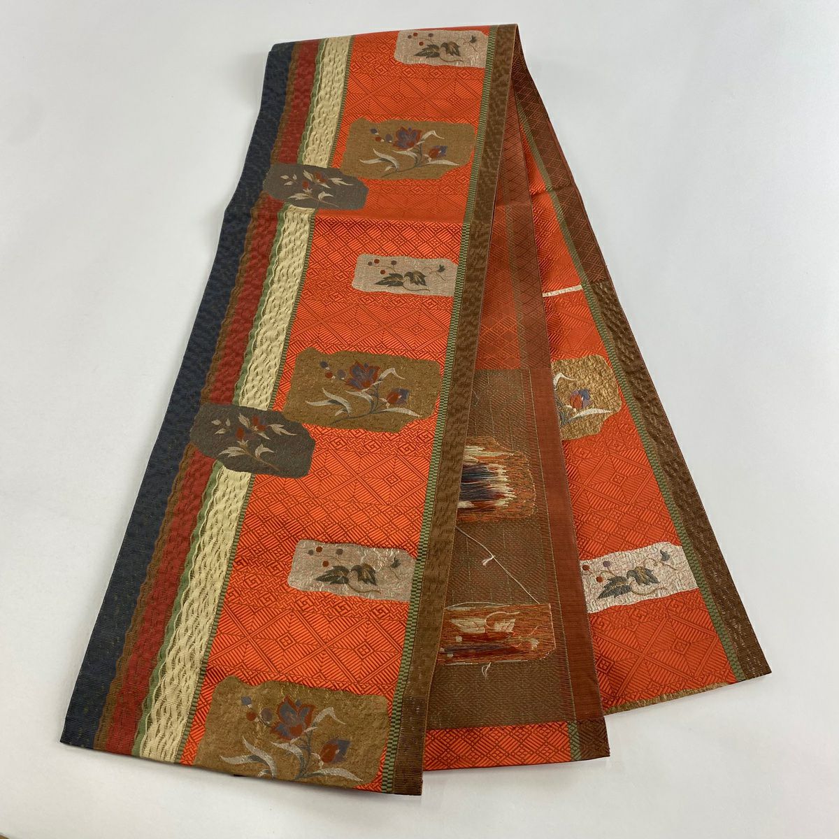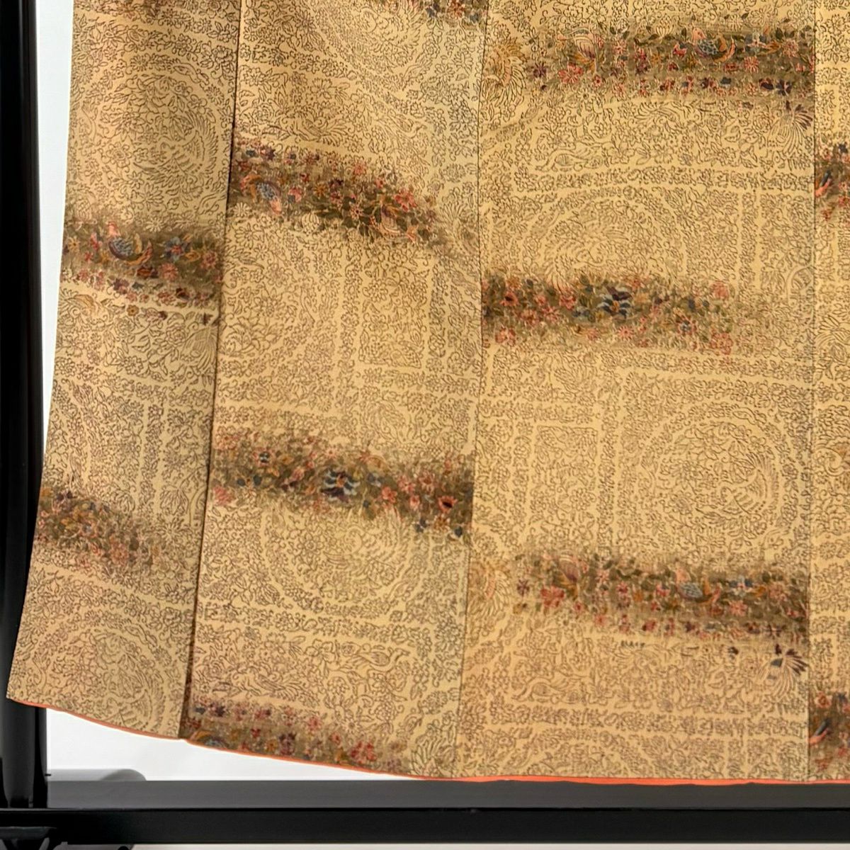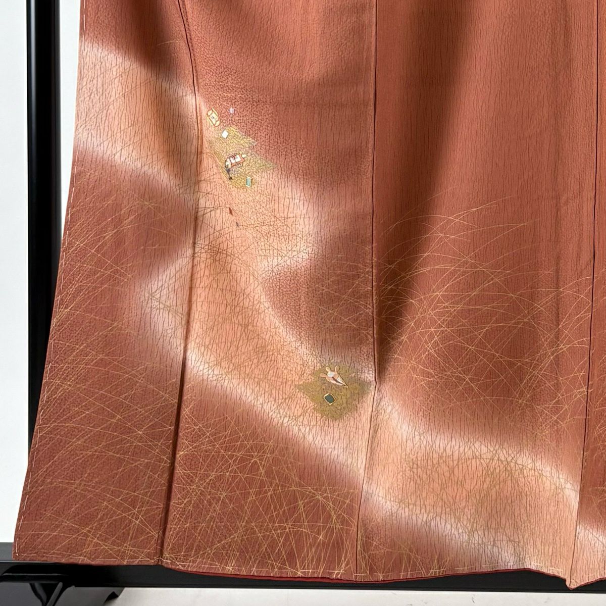 付下げ 身丈160.5cm 裄丈67cm M 袷 草花 金彩 ぼかし オレンジ 正絹 優品