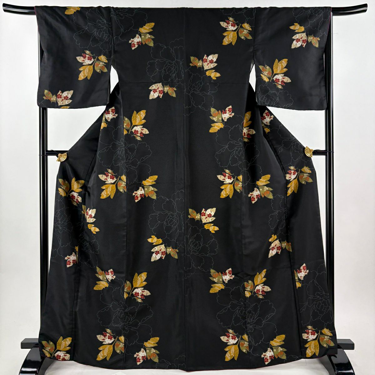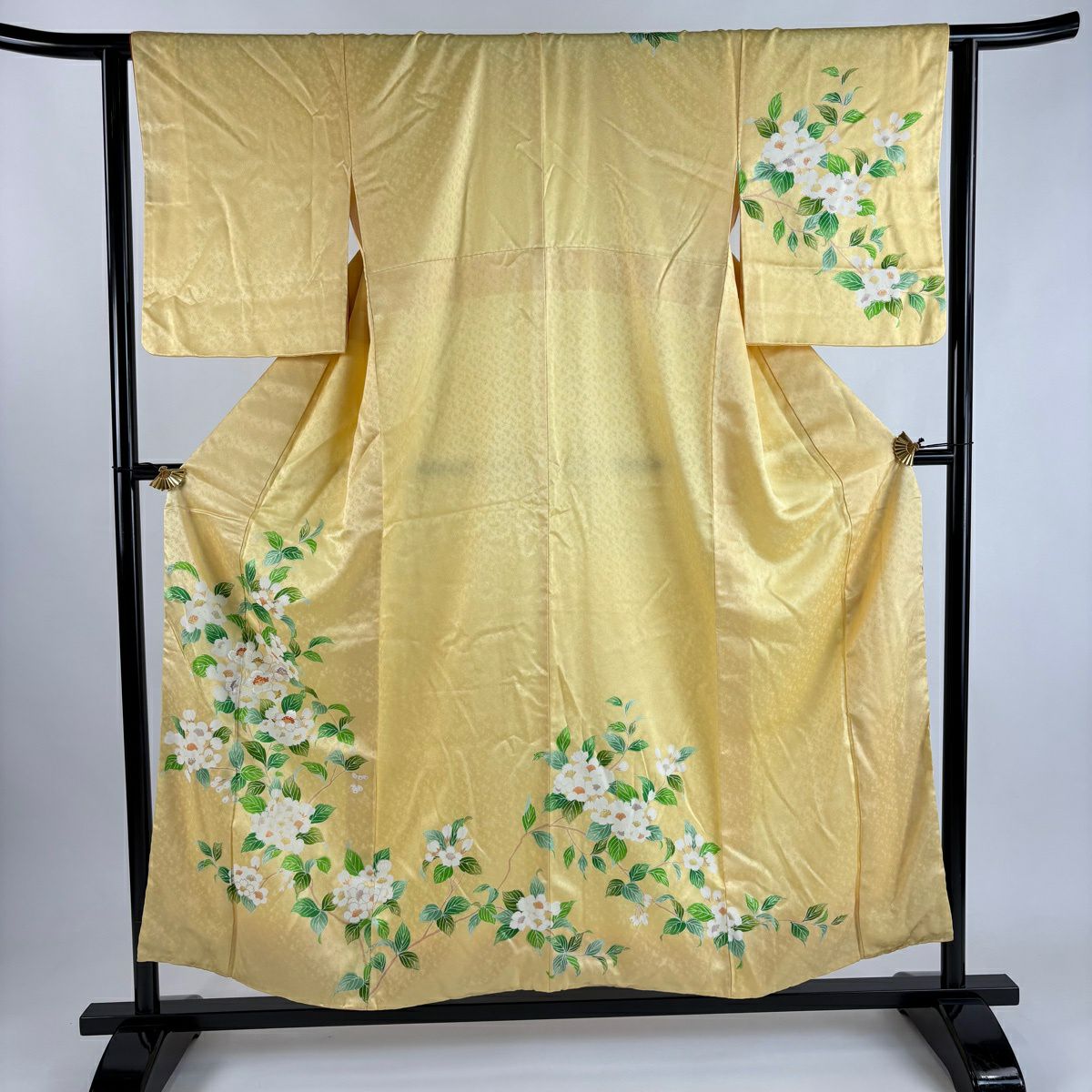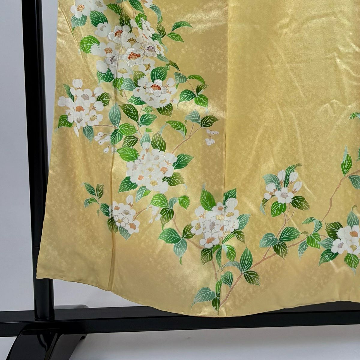 訪問着 身丈155cm 裄丈63cm S 袷 枝バナ 葉と実 刺繍 金彩 黄色 正絹 優品