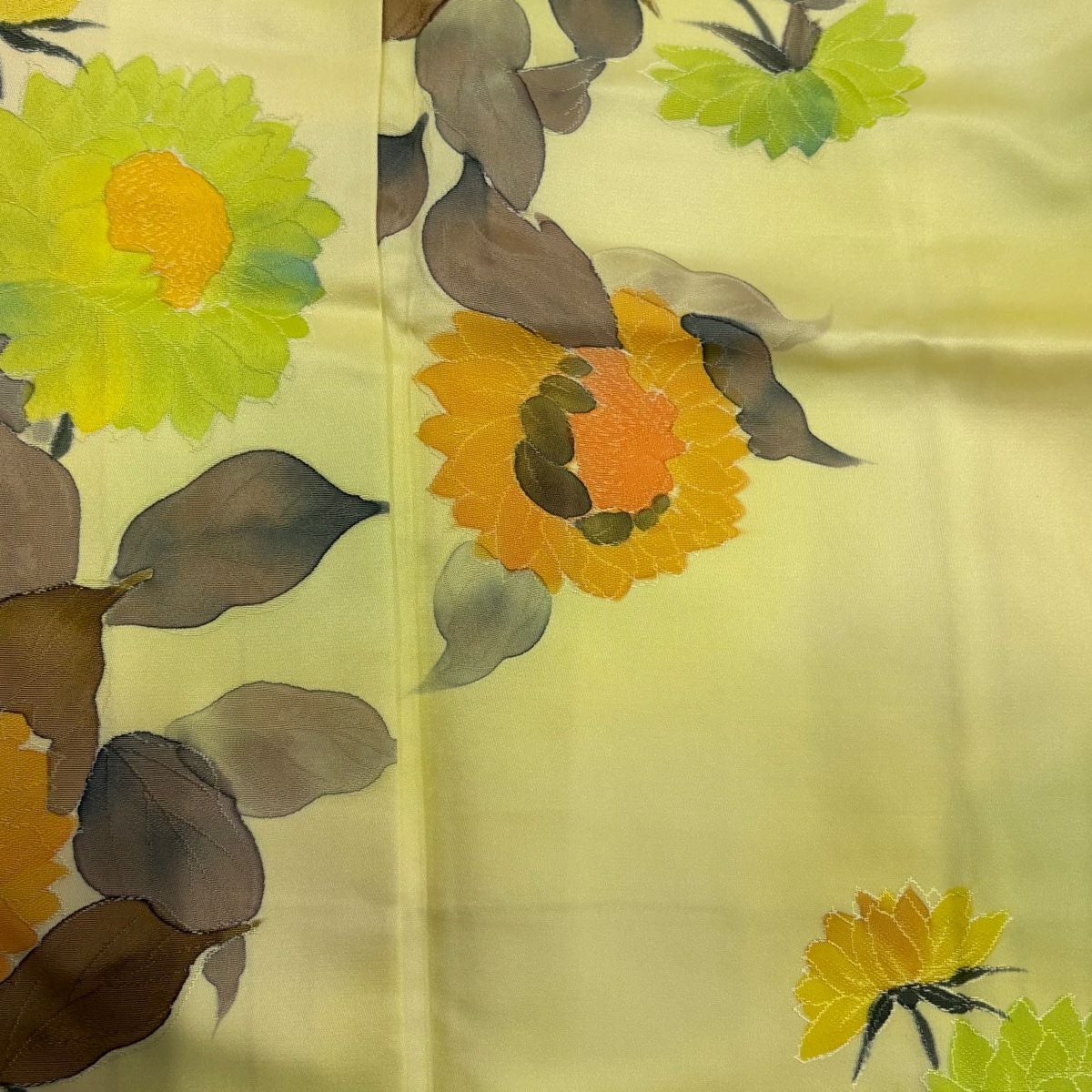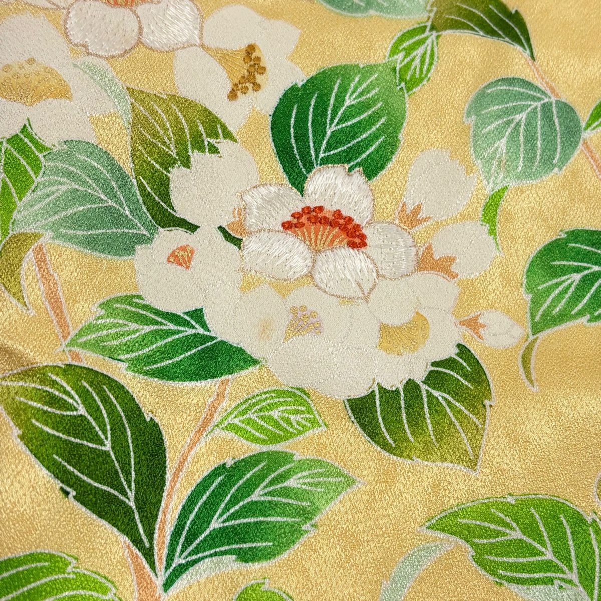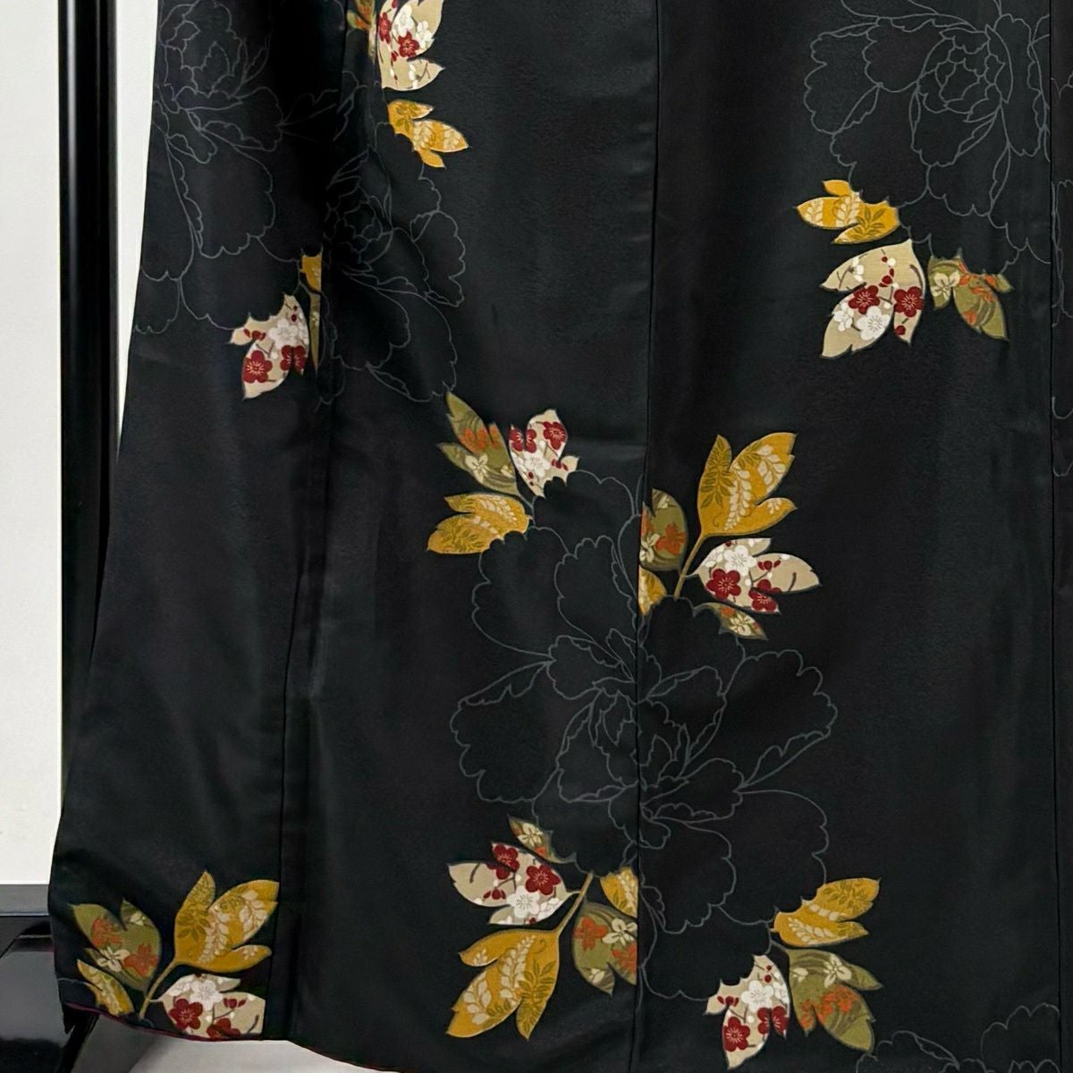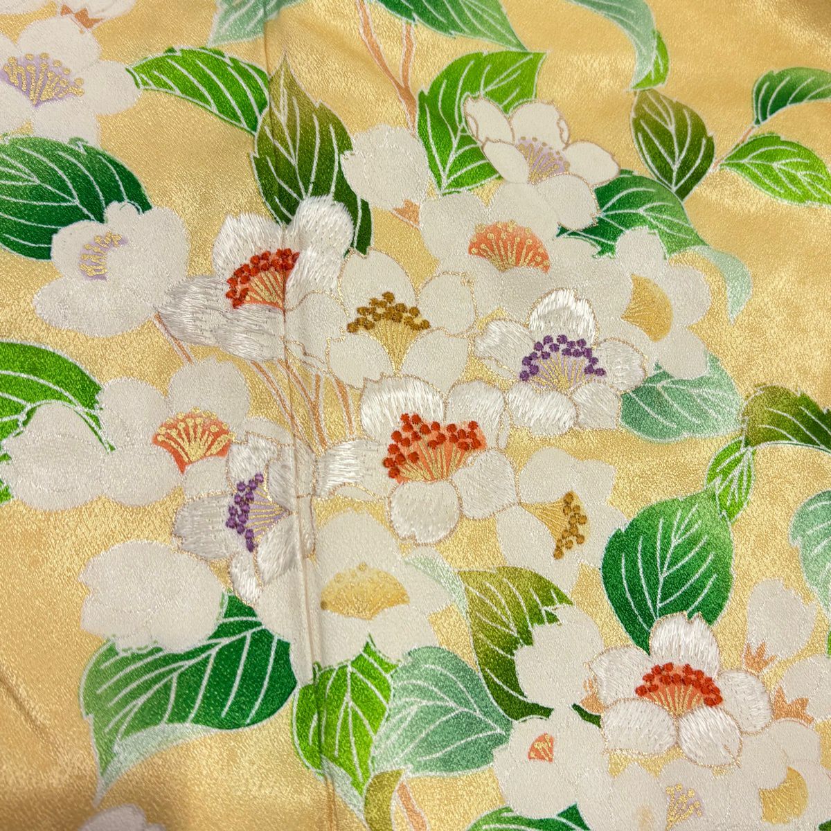訪問着 身丈155cm 裄丈63cm S 袷 枝バナ 葉と実 刺繍 金彩 黄色 正絹 優品