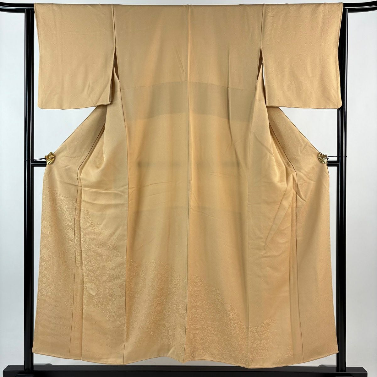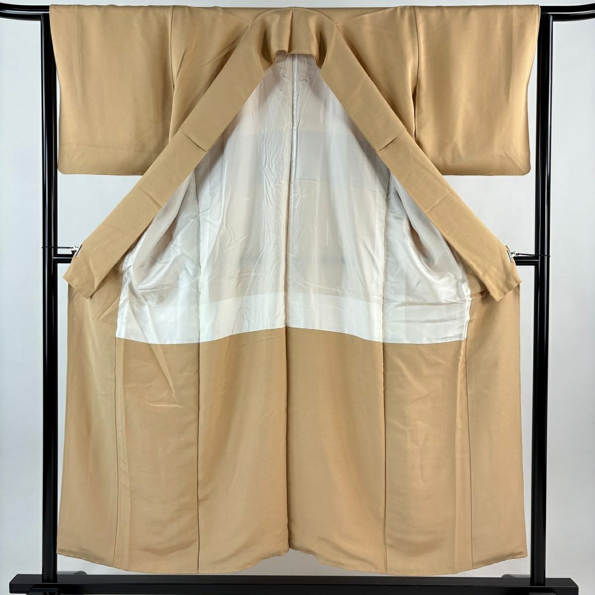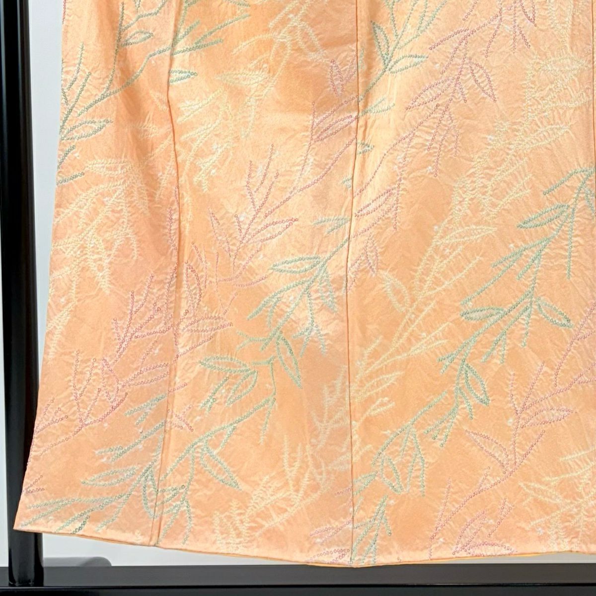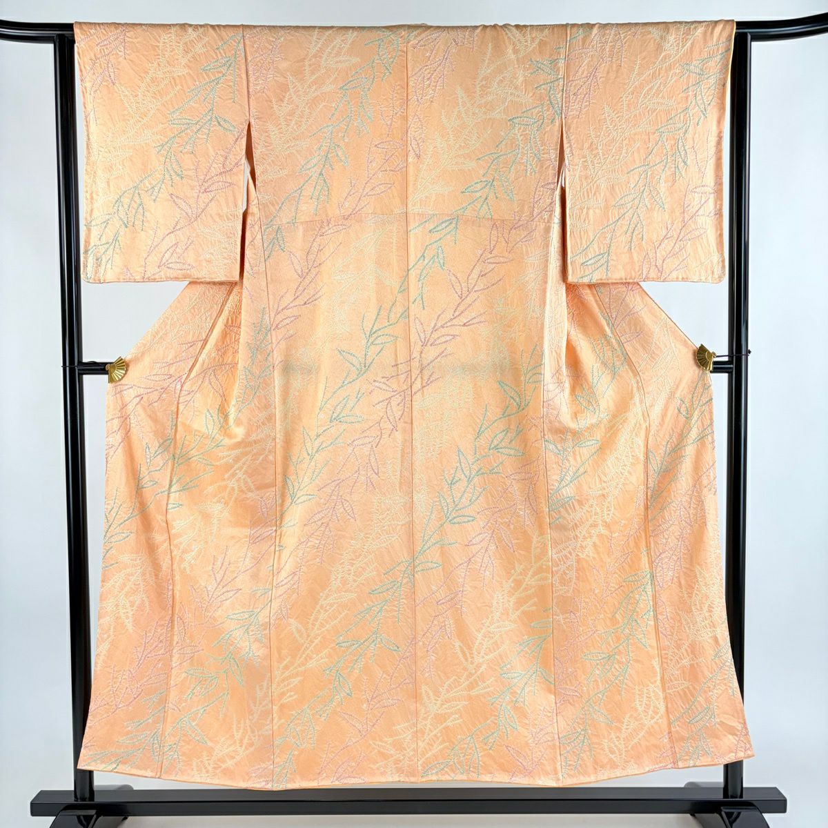 【在庫一掃】 色無地 身丈154cm 裄丈63cm S 袷 地紋 薄オレンジ 正絹 優品