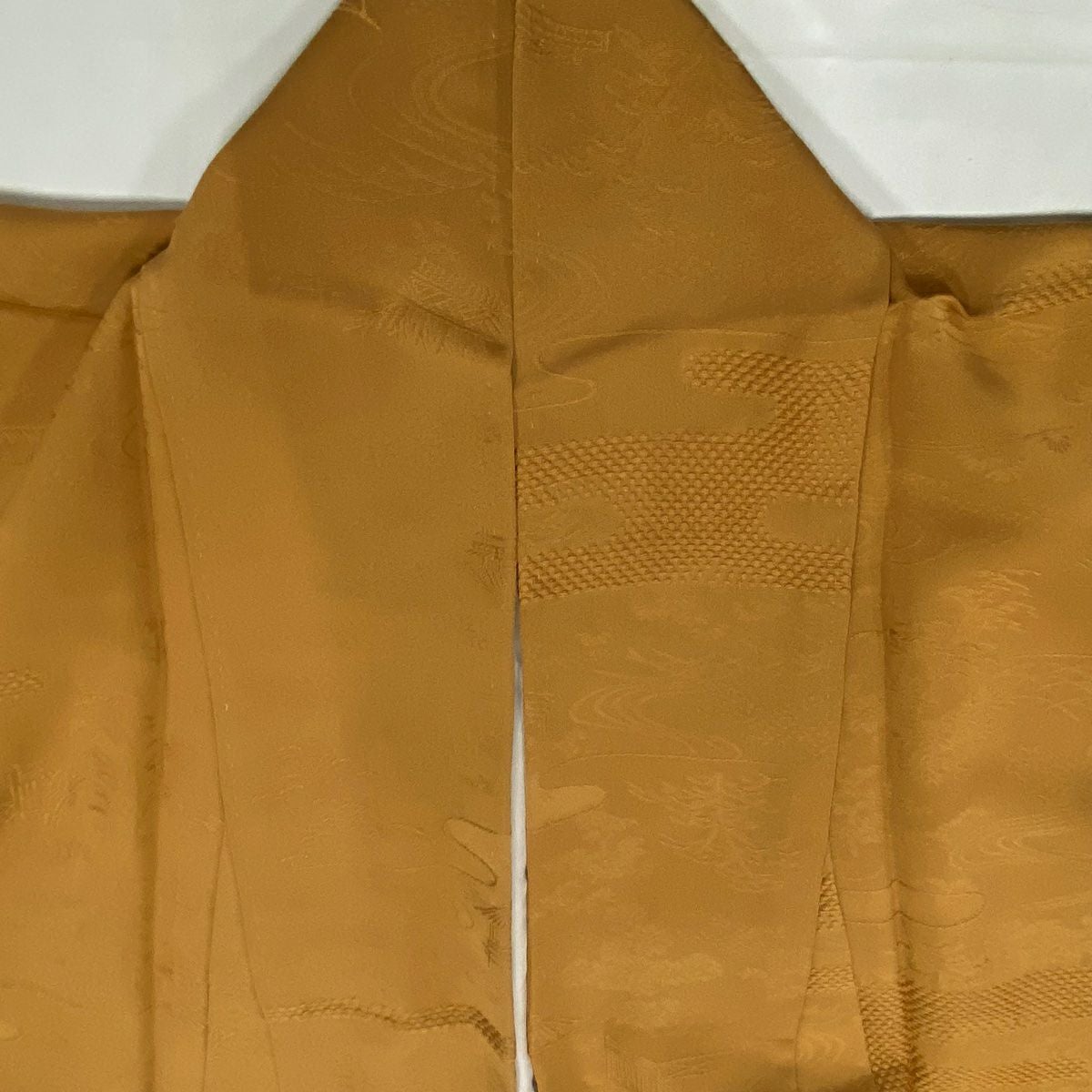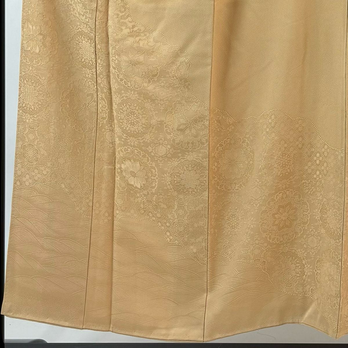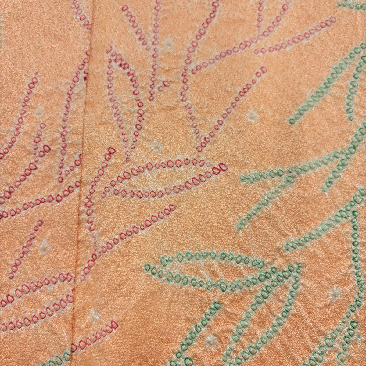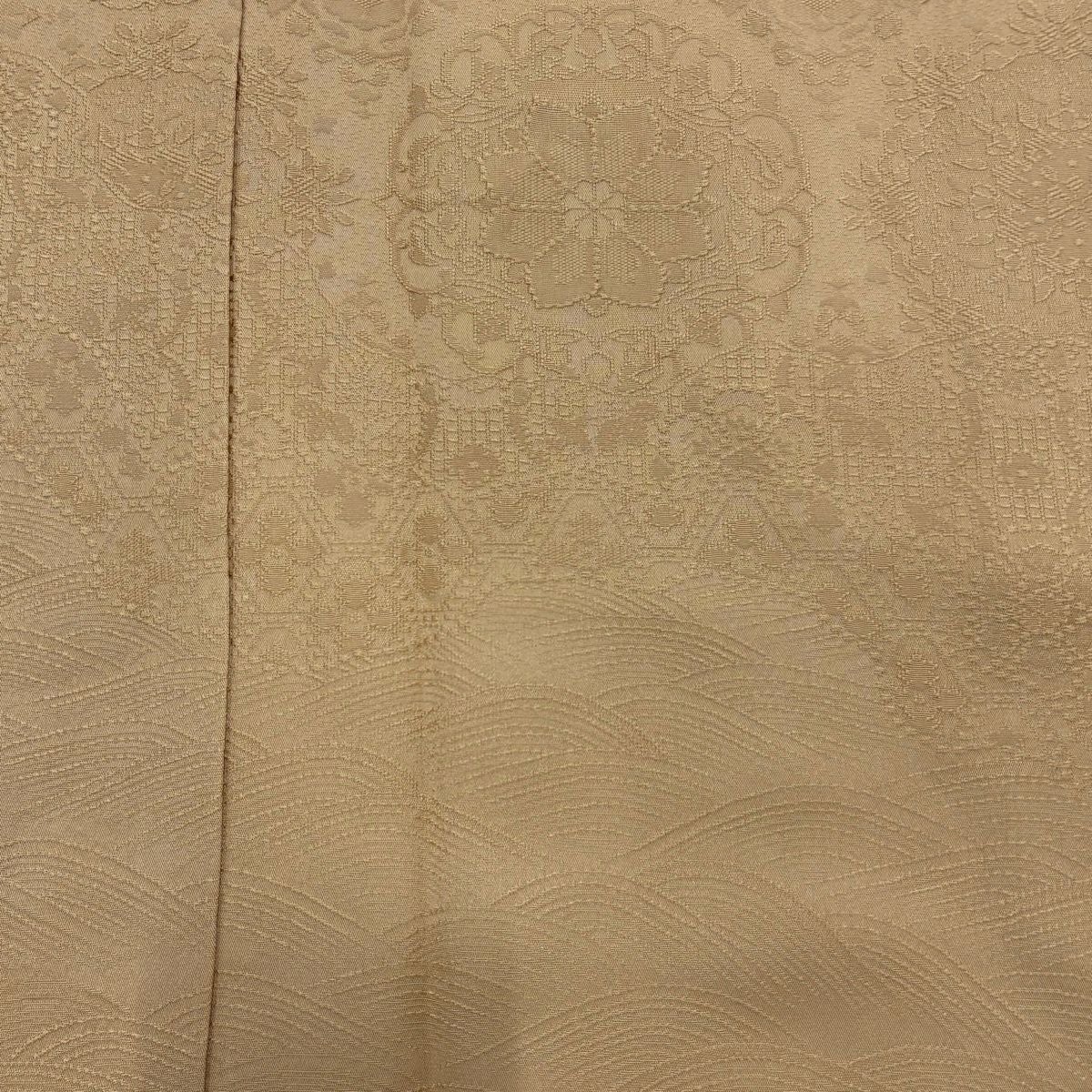 【在庫一掃】 色無地 身丈154cm 裄丈63cm S 袷 地紋 薄オレンジ 正絹 優品