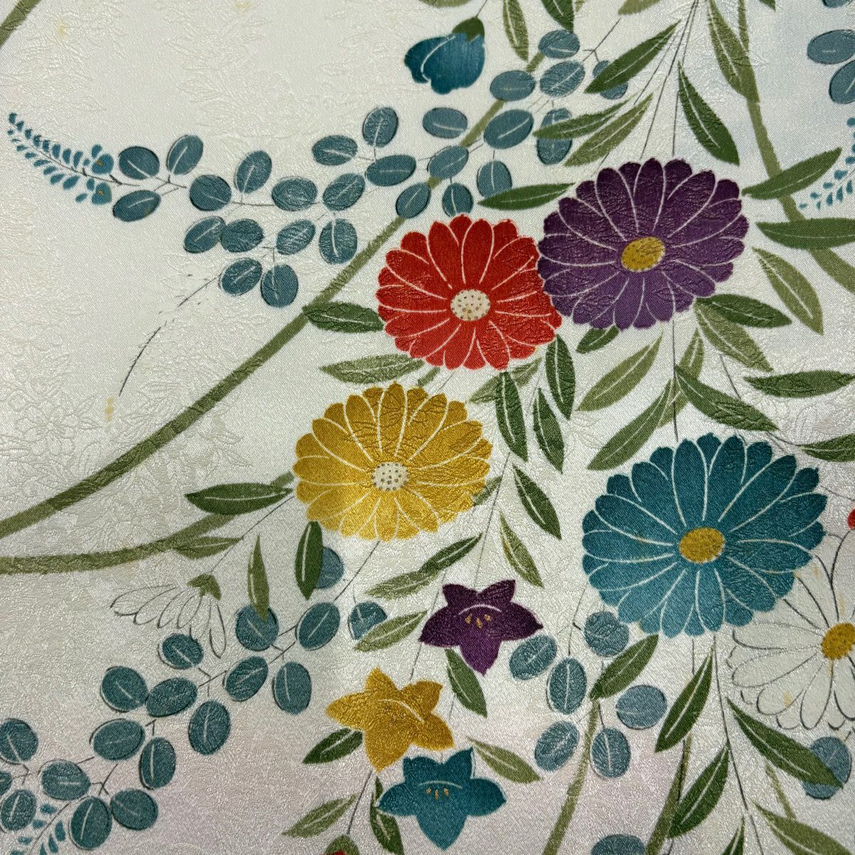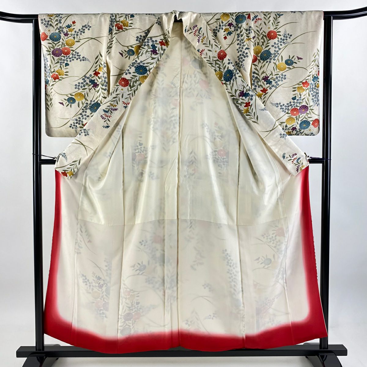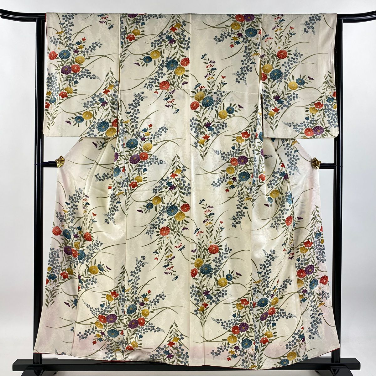 【在庫一掃】 小紋 身丈155cm 裄丈63cm S 袷 秋草 地紋 クリーム 正絹 優品