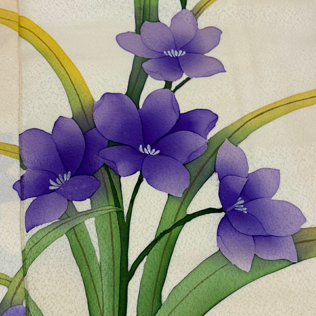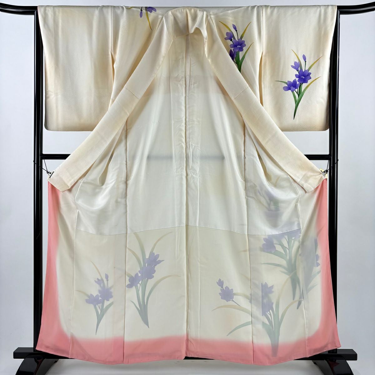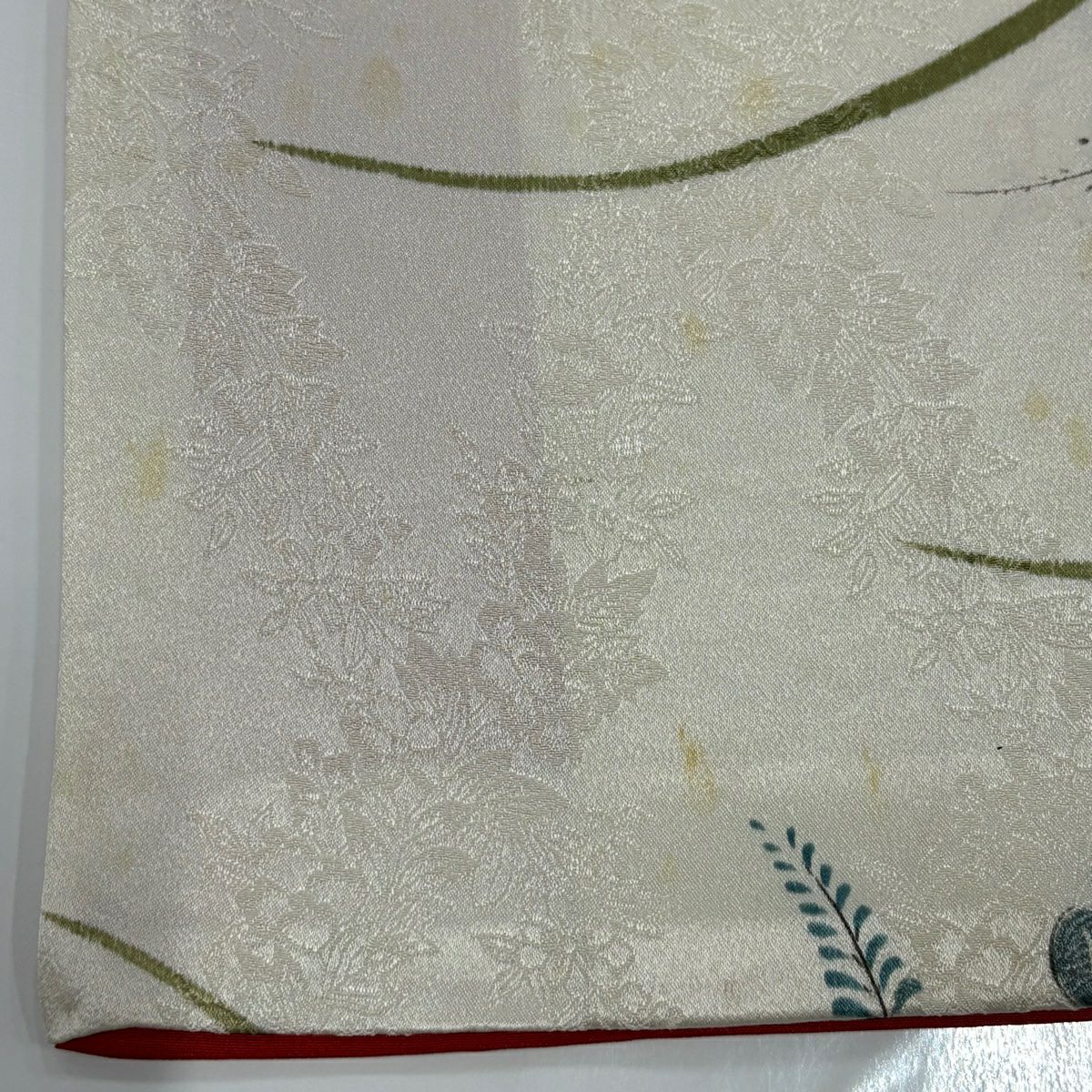 【在庫一掃】 小紋 身丈155cm 裄丈63cm S 袷 秋草 地紋 クリーム 正絹 優品