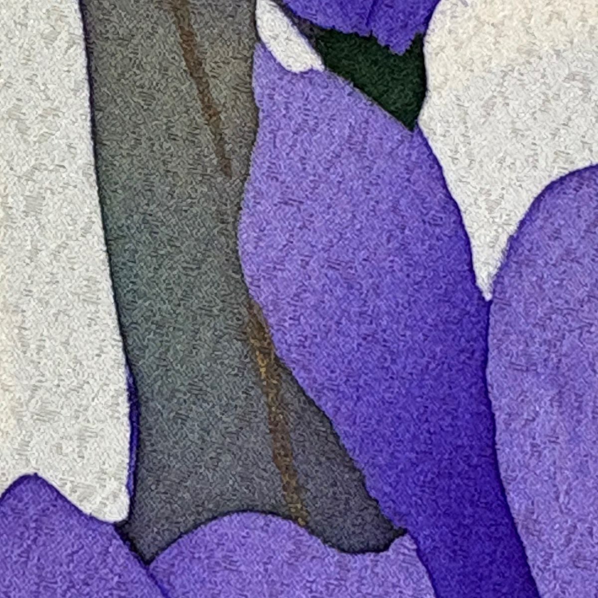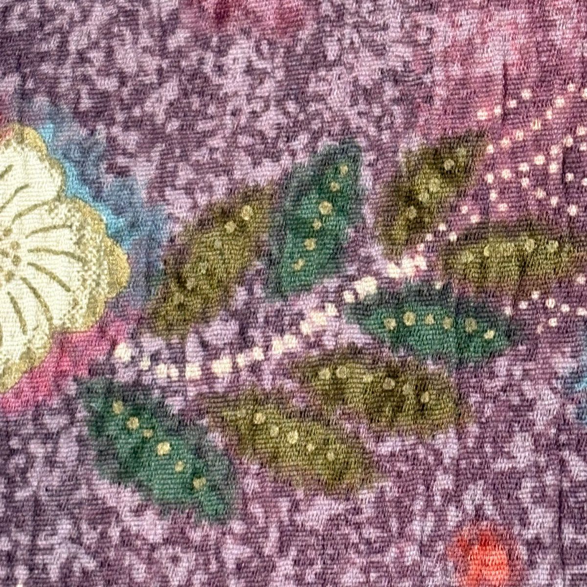 【美品】 小紋 身丈155.5cm 裄丈62.5cm S 袷 辻が花柄 波 金彩 紫 正絹 優品