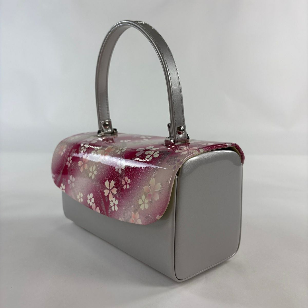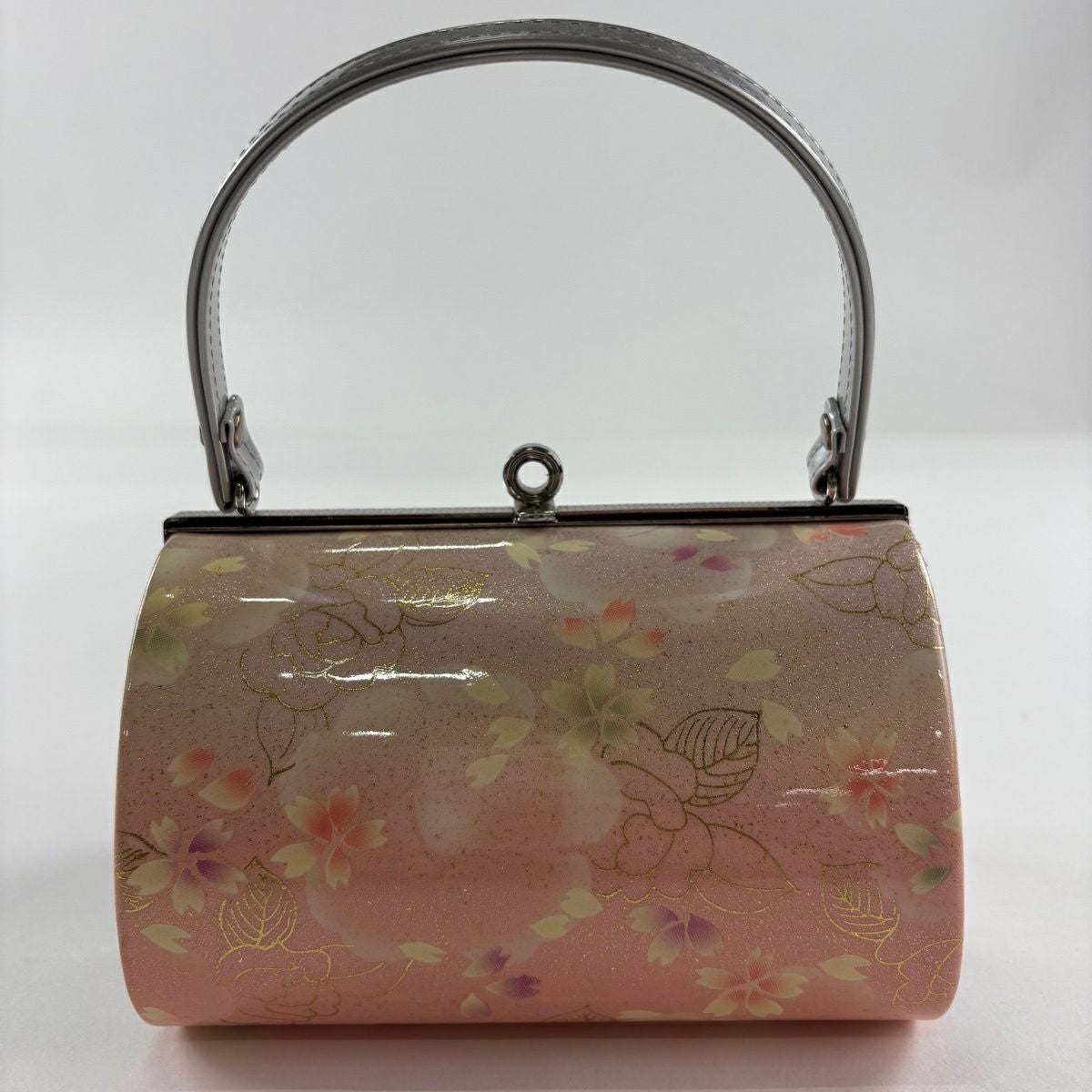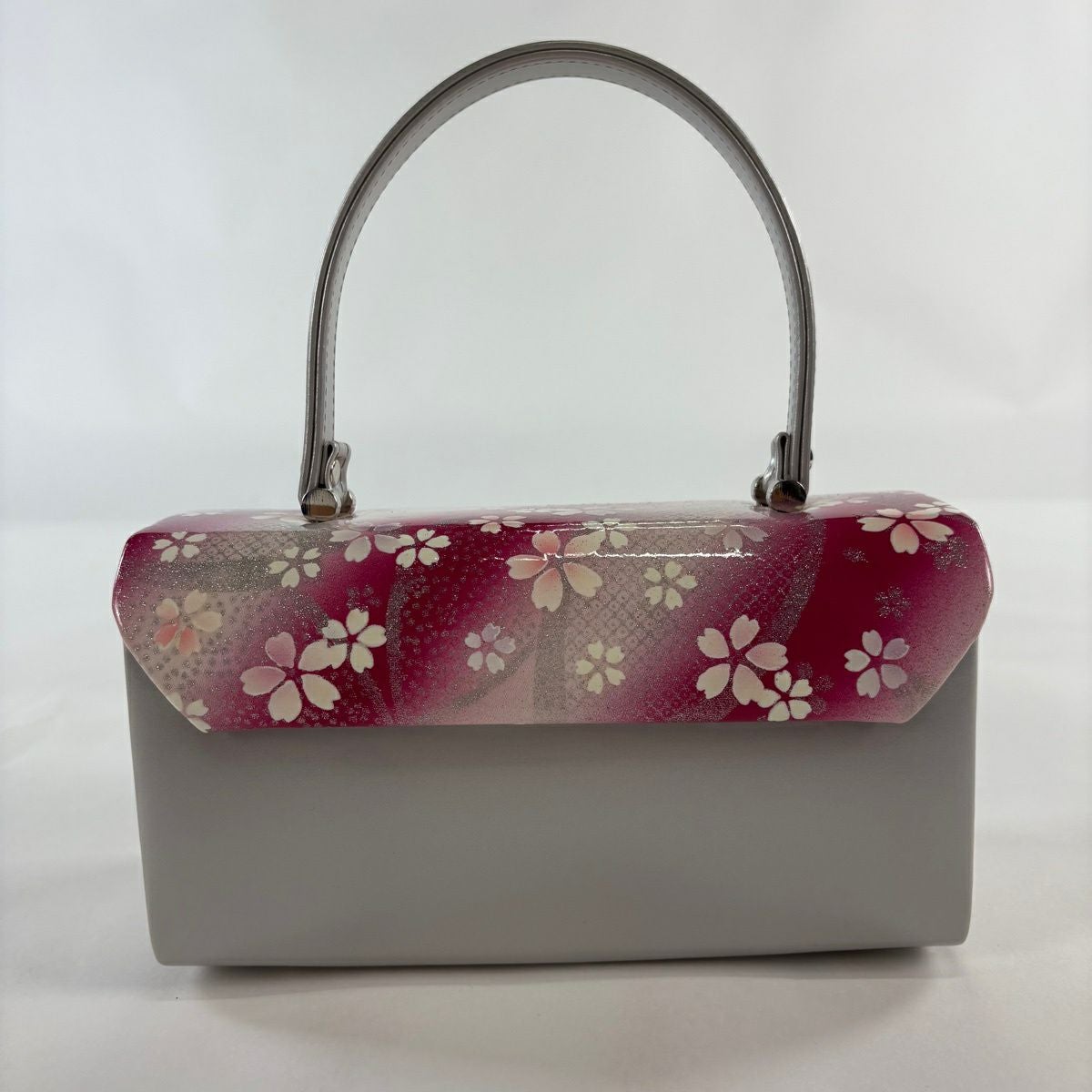 【美品】和装バッグ 優品 フォーマル 桜 鹿の子柄 箔 濃ピンク エナメル 和装小物
