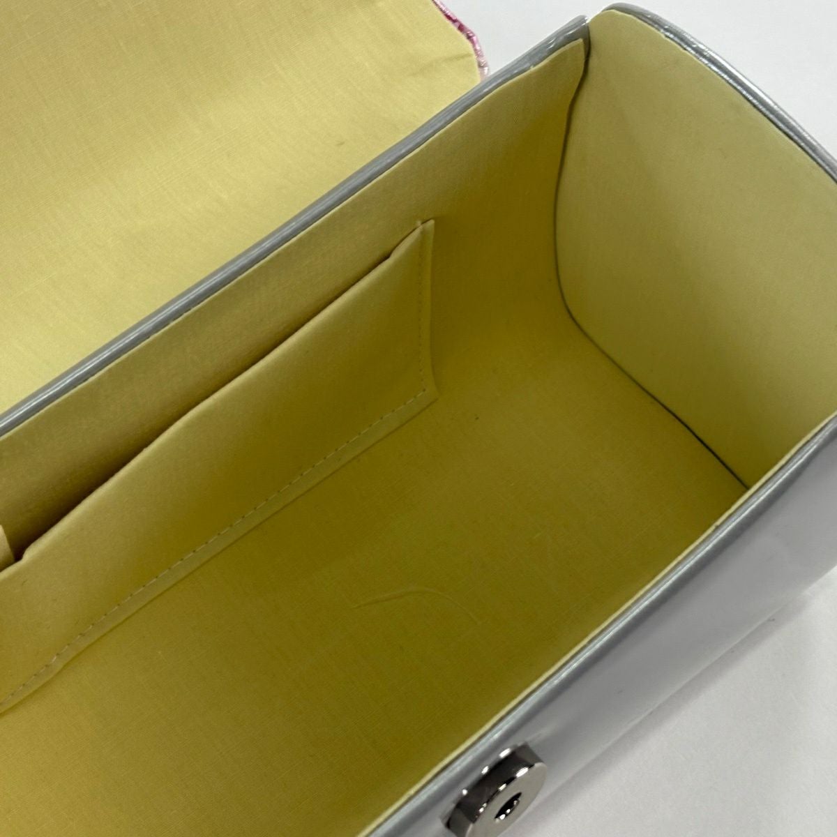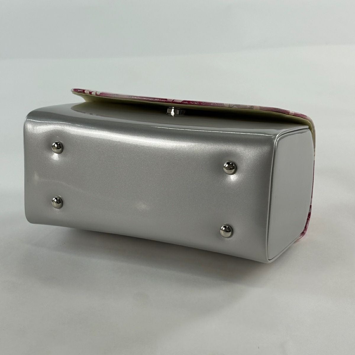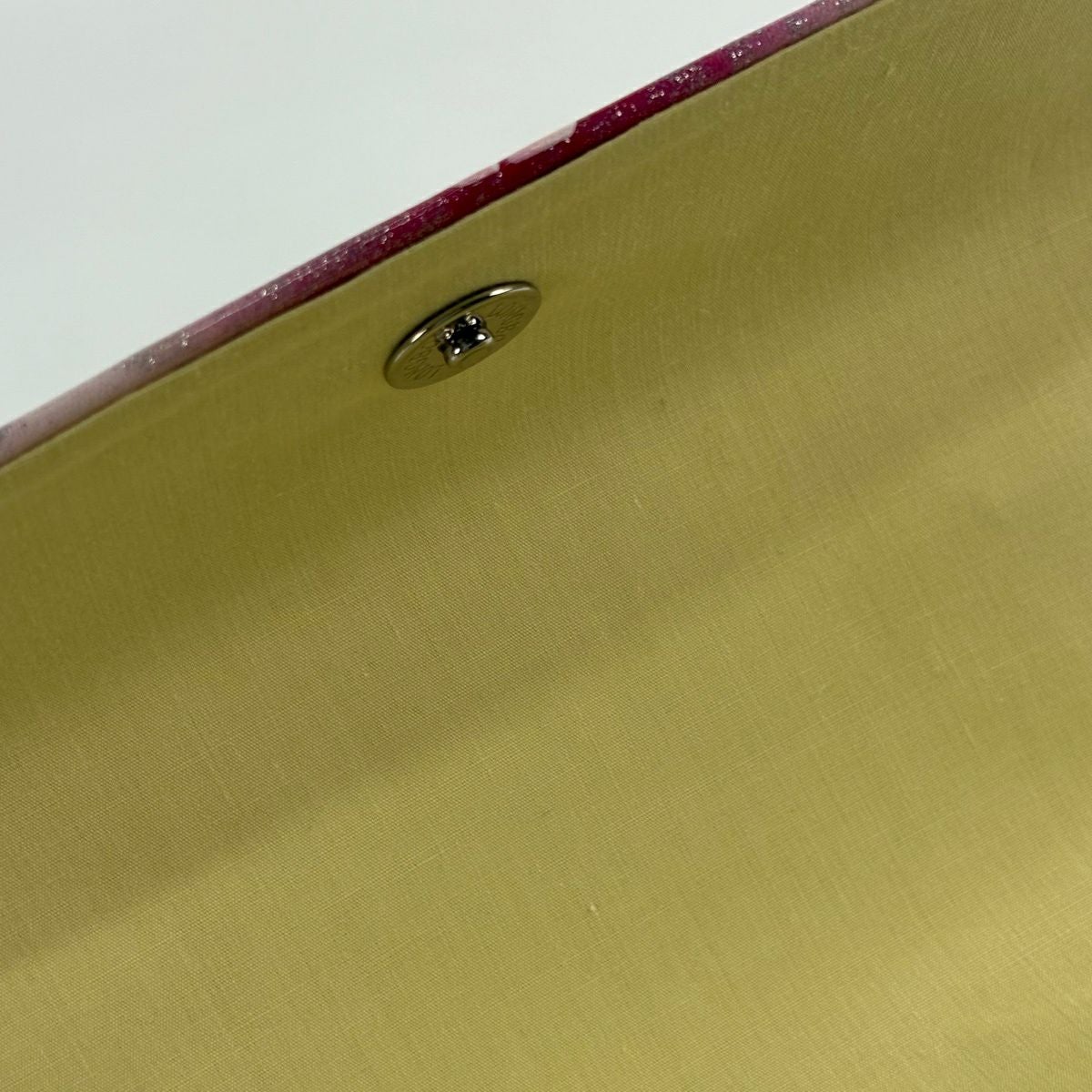 【美品】和装バッグ 優品 フォーマル 桜 鹿の子柄 箔 濃ピンク エナメル 和装小物