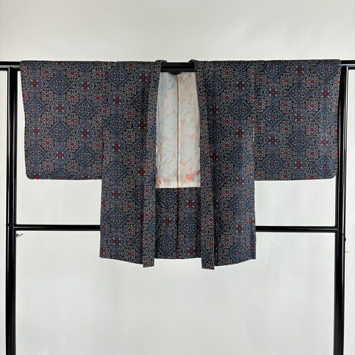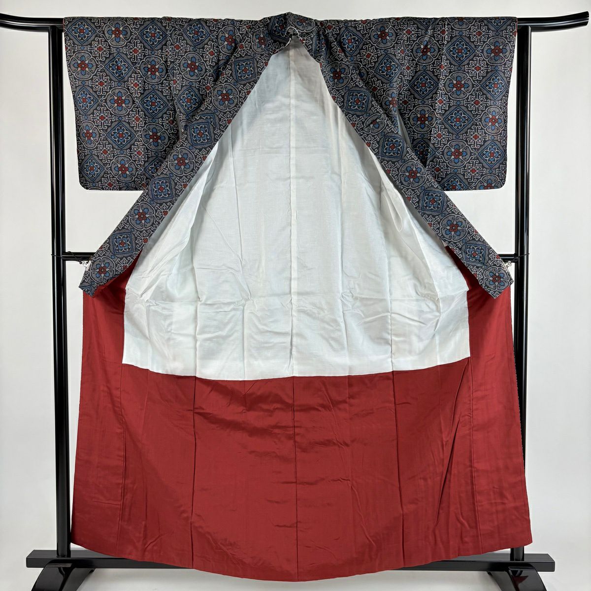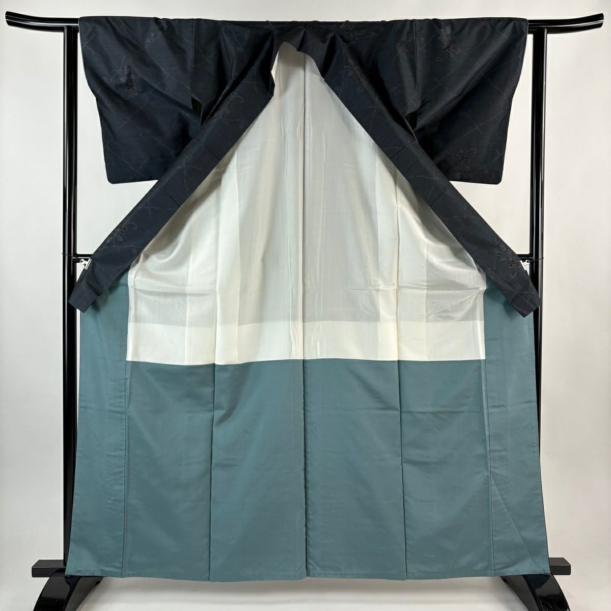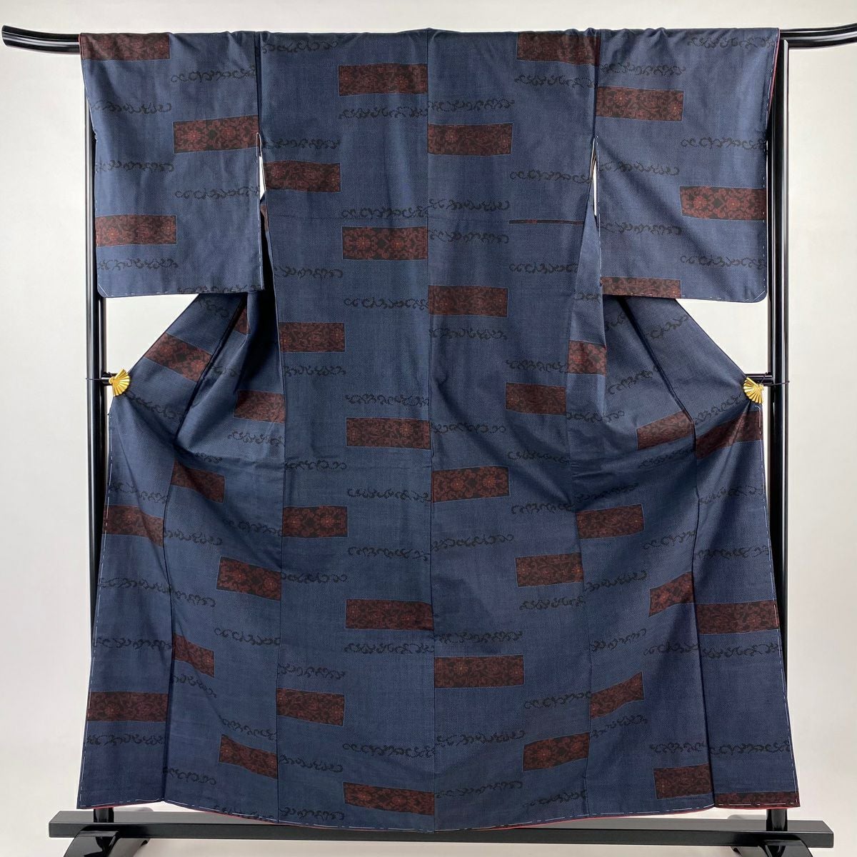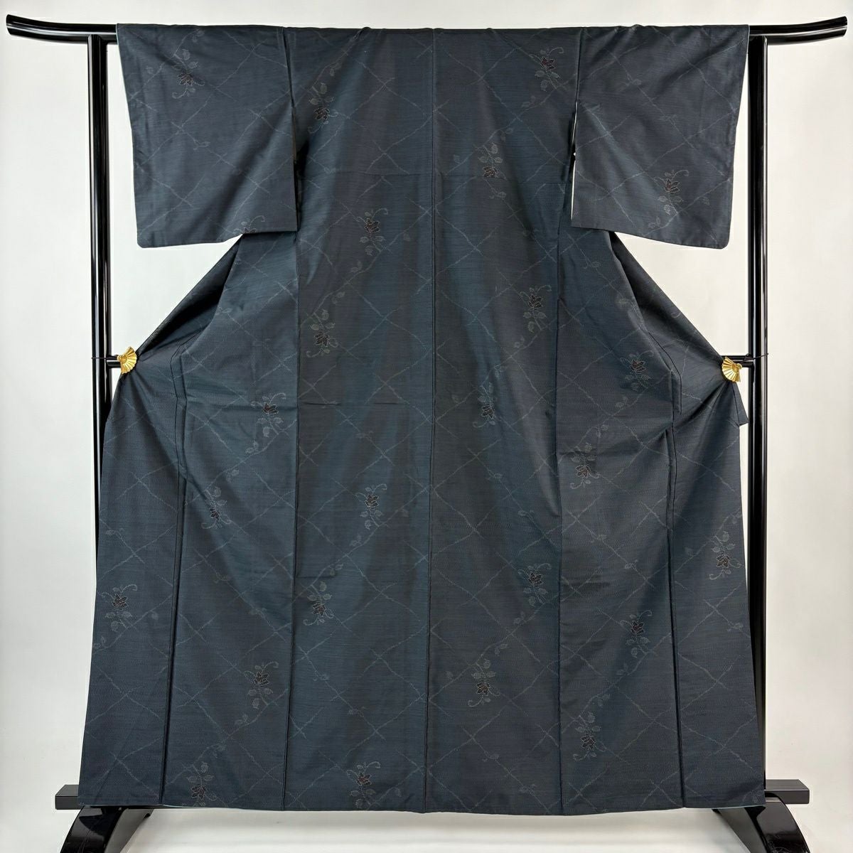 【在庫一掃】 紬 身丈161cm 裄丈66cm M 袷 花唐草 唐草 紺色 正絹 美品 優品