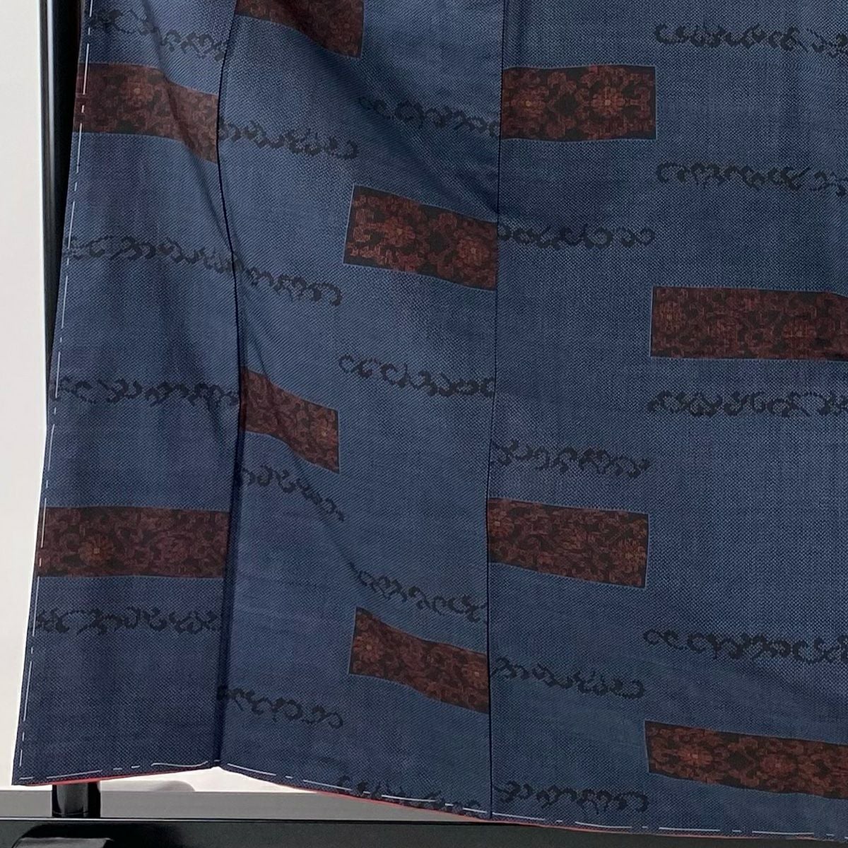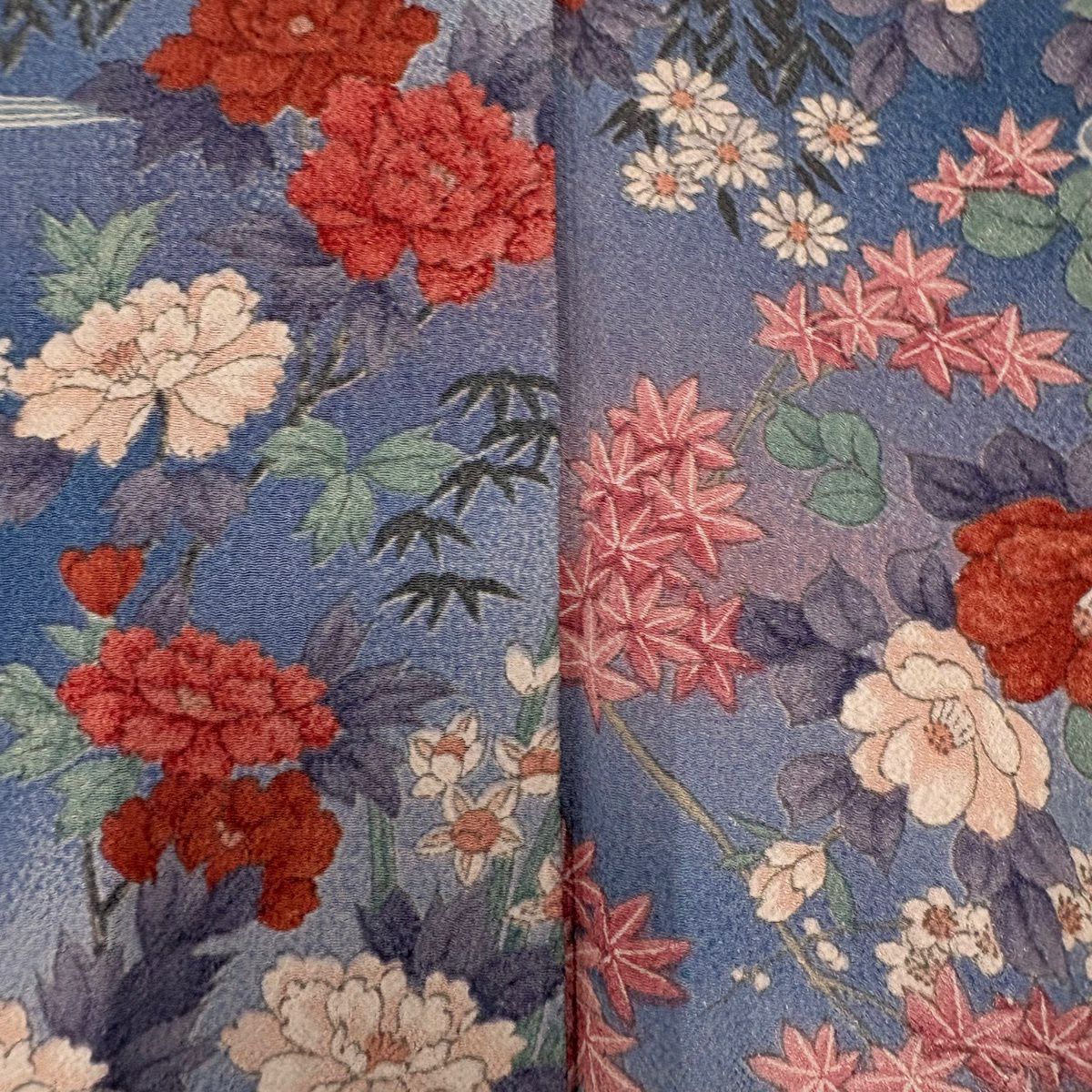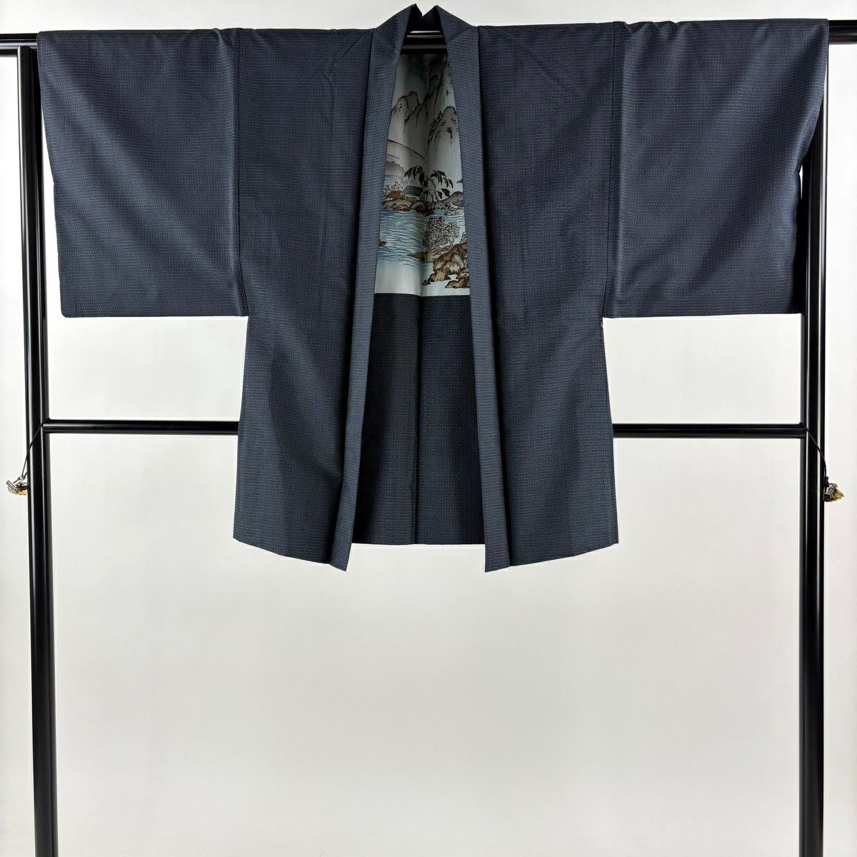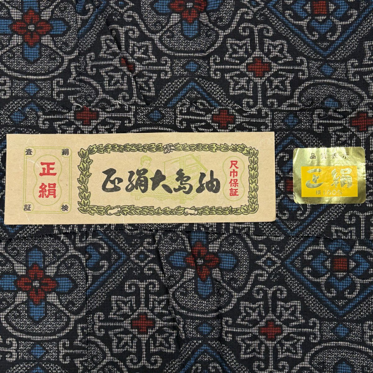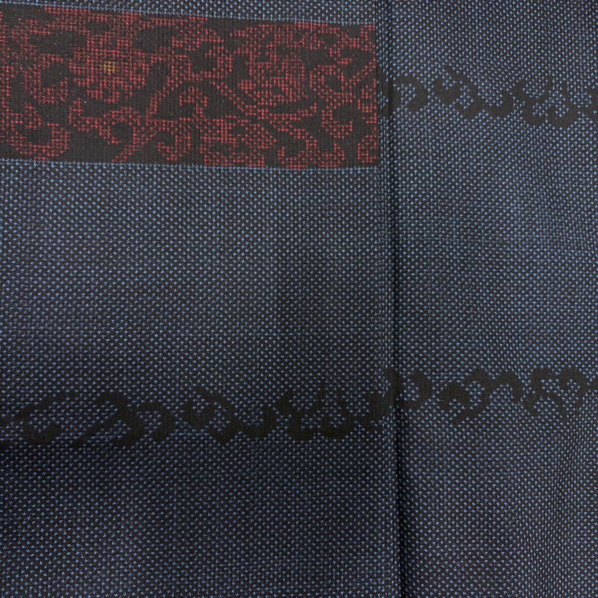 【在庫一掃】 紬 身丈161cm 裄丈66cm M 袷 花唐草 唐草 紺色 正絹 美品 優品