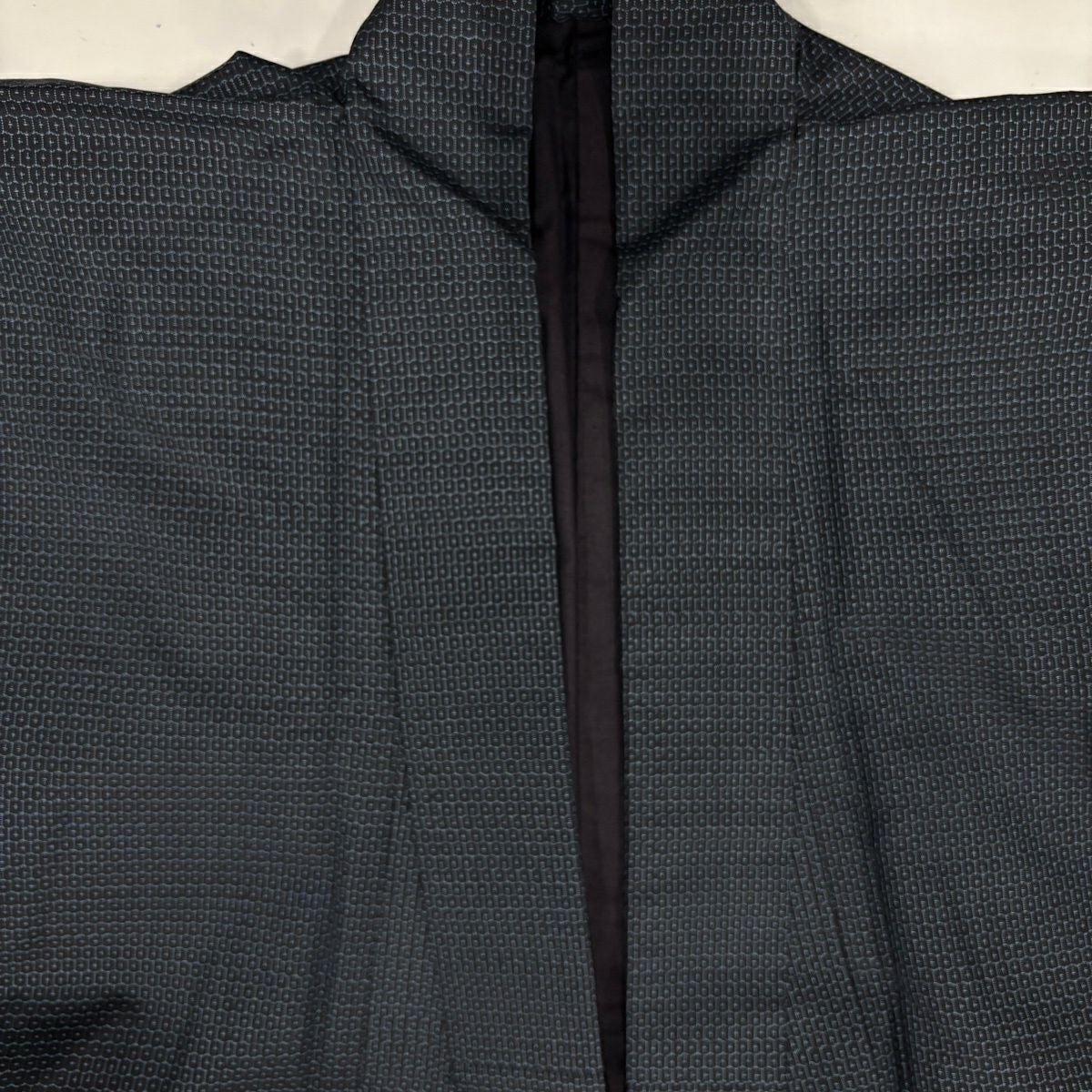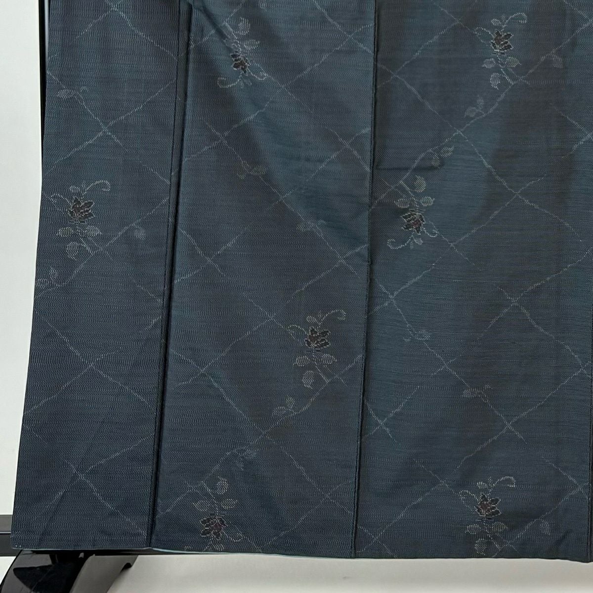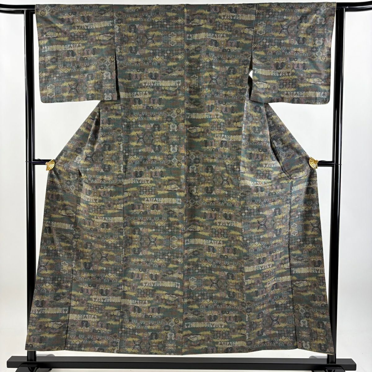 【在庫一掃】 紬 身丈155cm 裄丈62cm S 袷 幾何学模様 深緑 正絹 美品 優品
