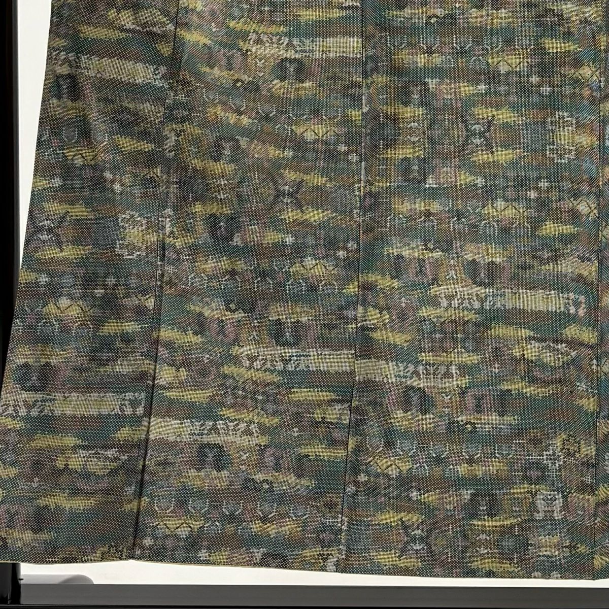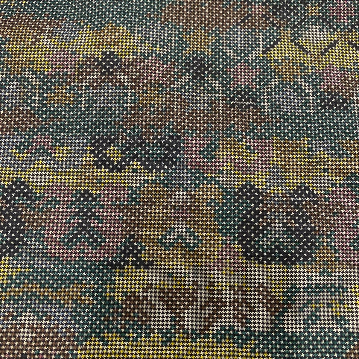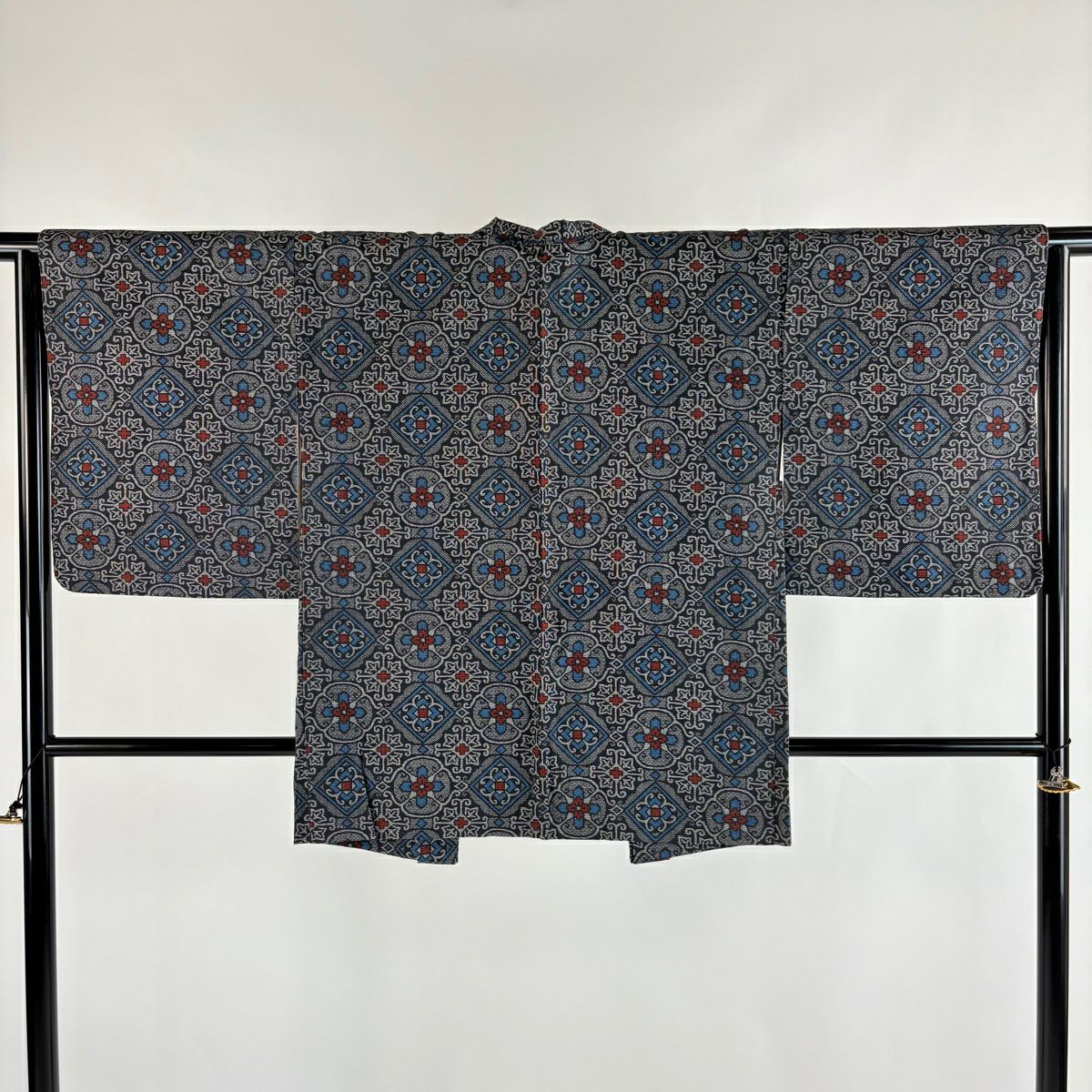 【在庫一掃】 紬 身丈155cm 裄丈62cm S 袷 幾何学模様 深緑 正絹 美品 優品
