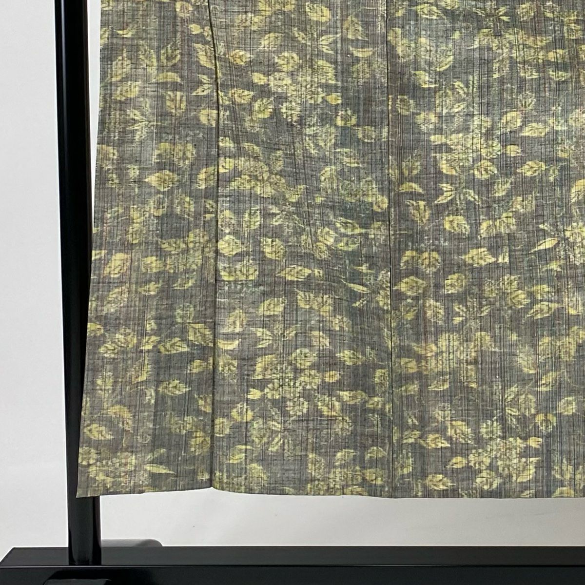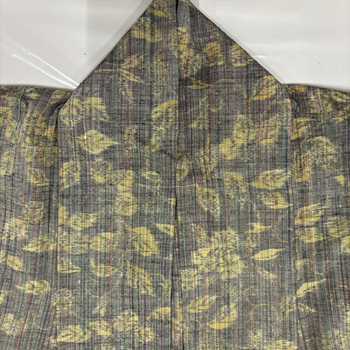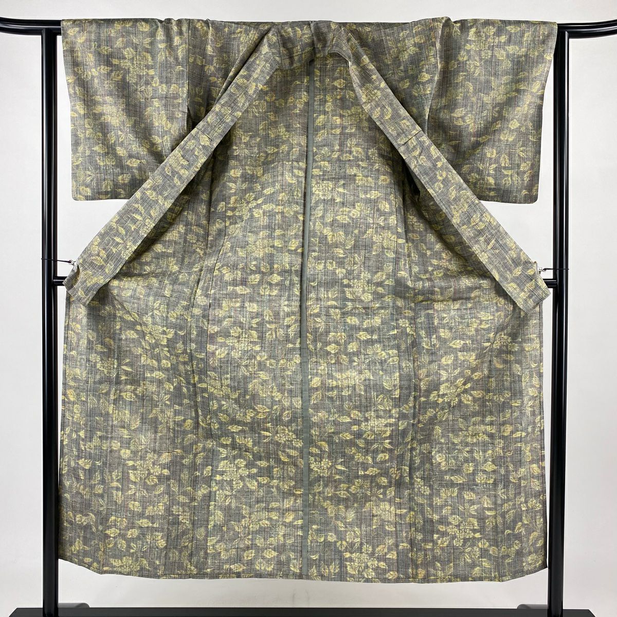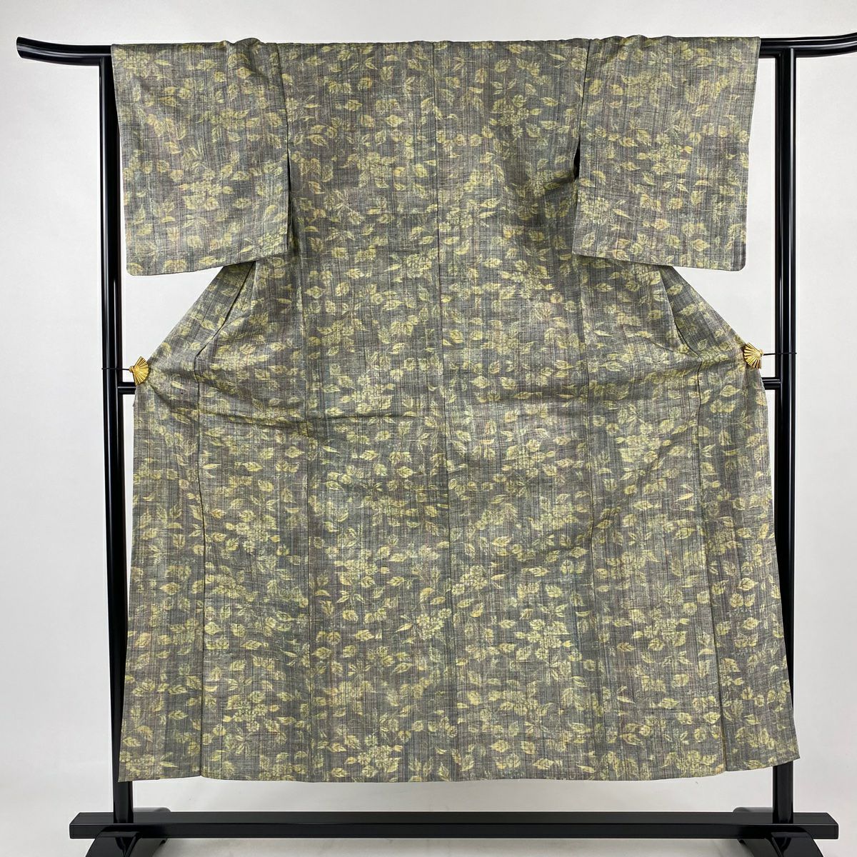 【在庫一掃】 紬 身丈151.5cm 裄丈62.5cm S 単衣 草花 縦縞 灰色 正絹 優品