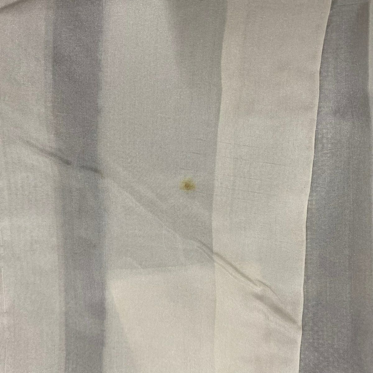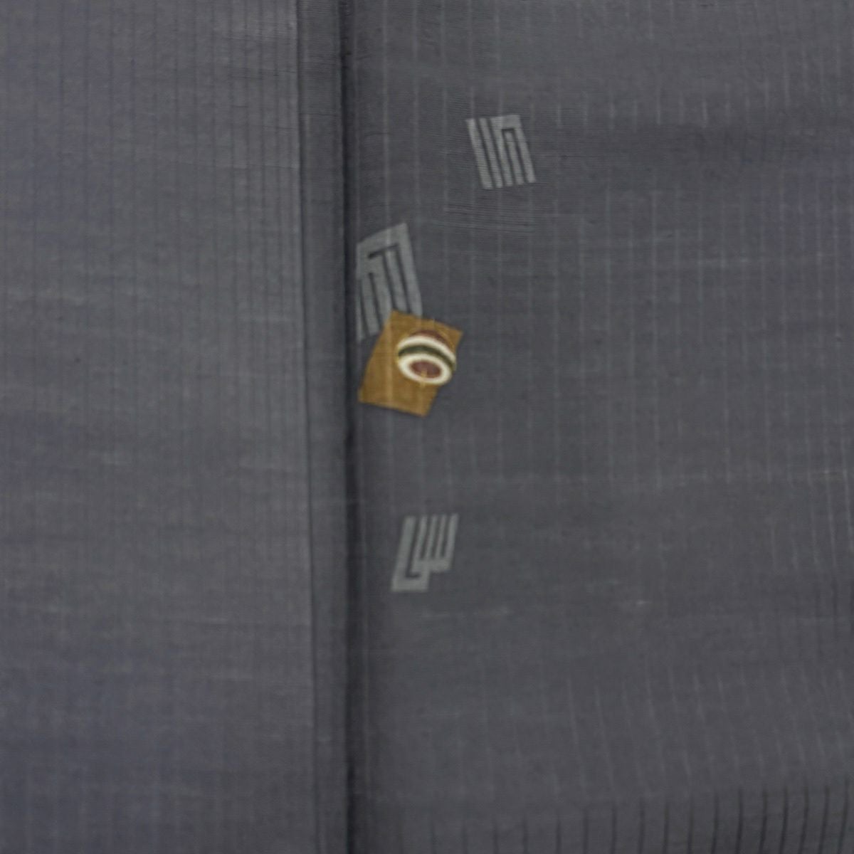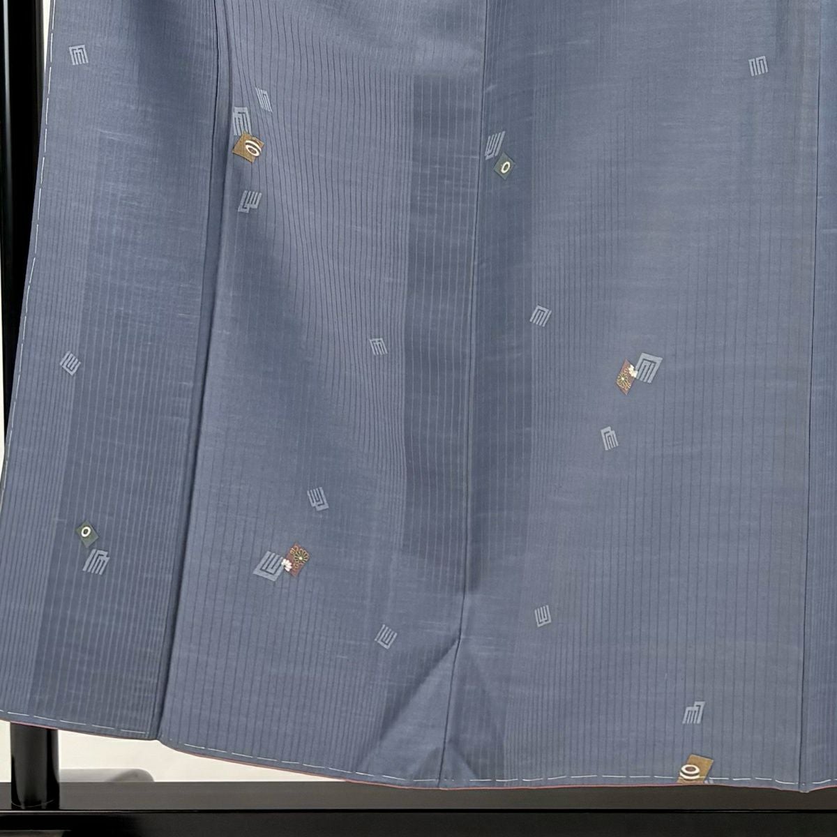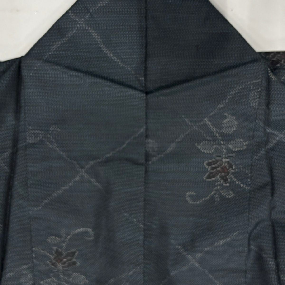 【在庫一掃】 紬 身丈151.5cm 裄丈62.5cm S 単衣 草花 縦縞 灰色 正絹 優品