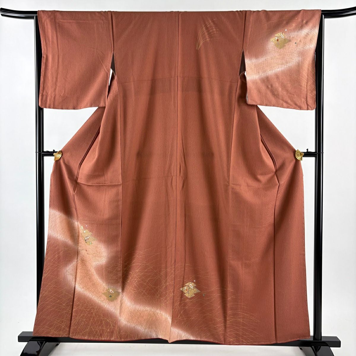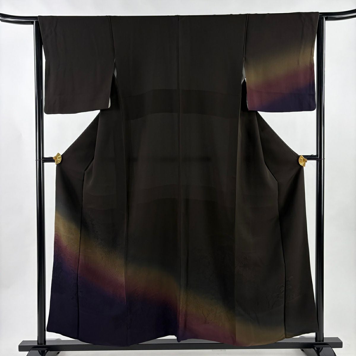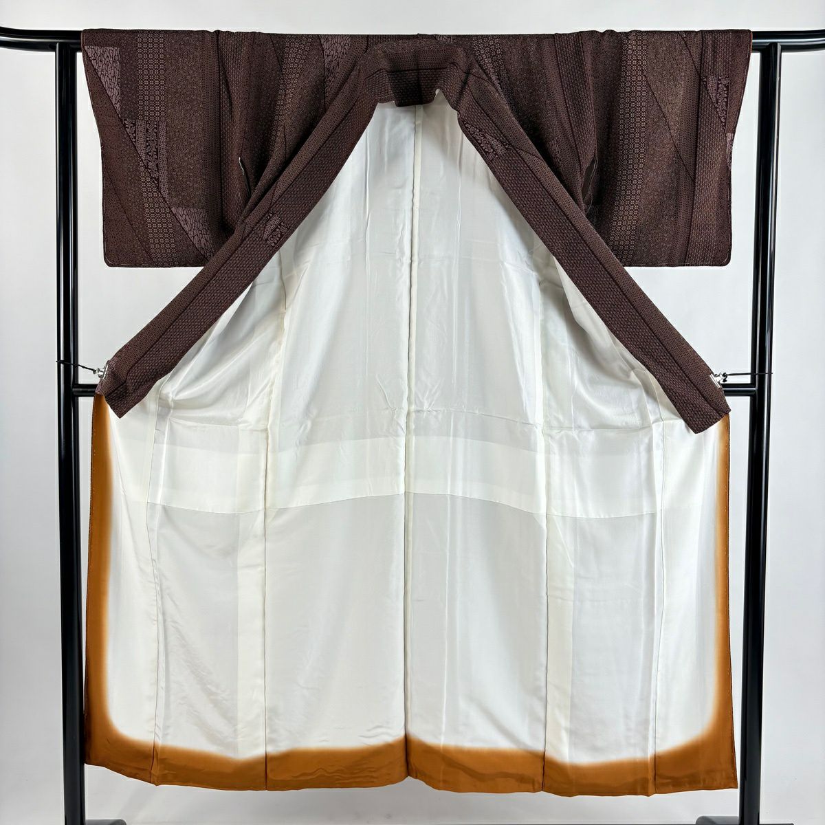 付下げ 身丈157cm 裄丈64.5cm M 袷 地紋 染め分け ぼかし 焦茶色 正絹 優品