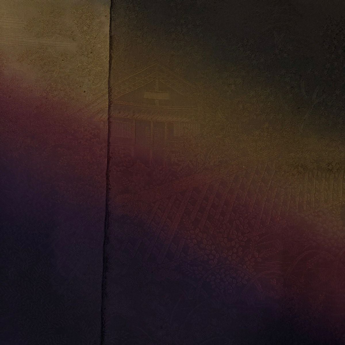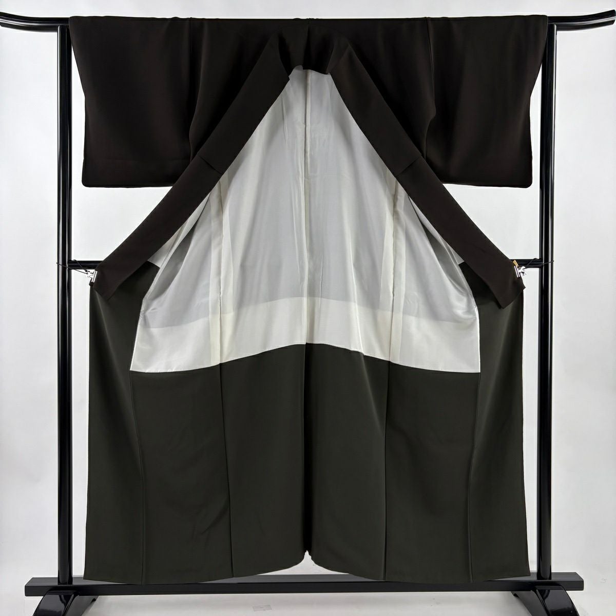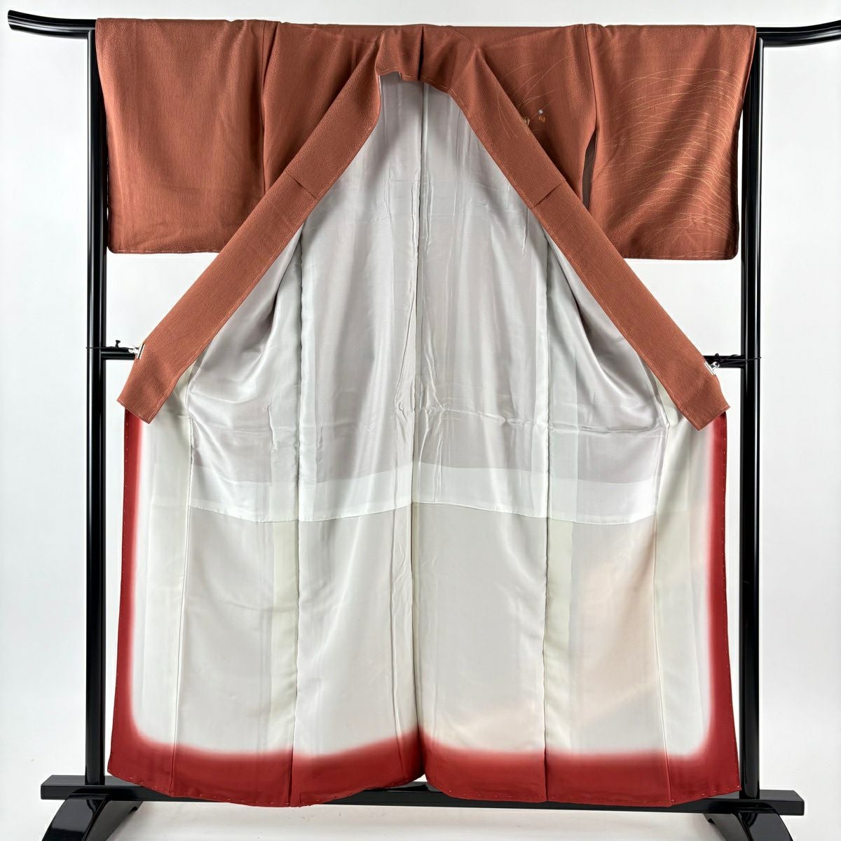 付下げ 身丈157cm 裄丈64.5cm M 袷 地紋 染め分け ぼかし 焦茶色 正絹 優品