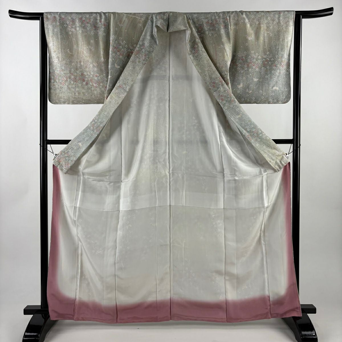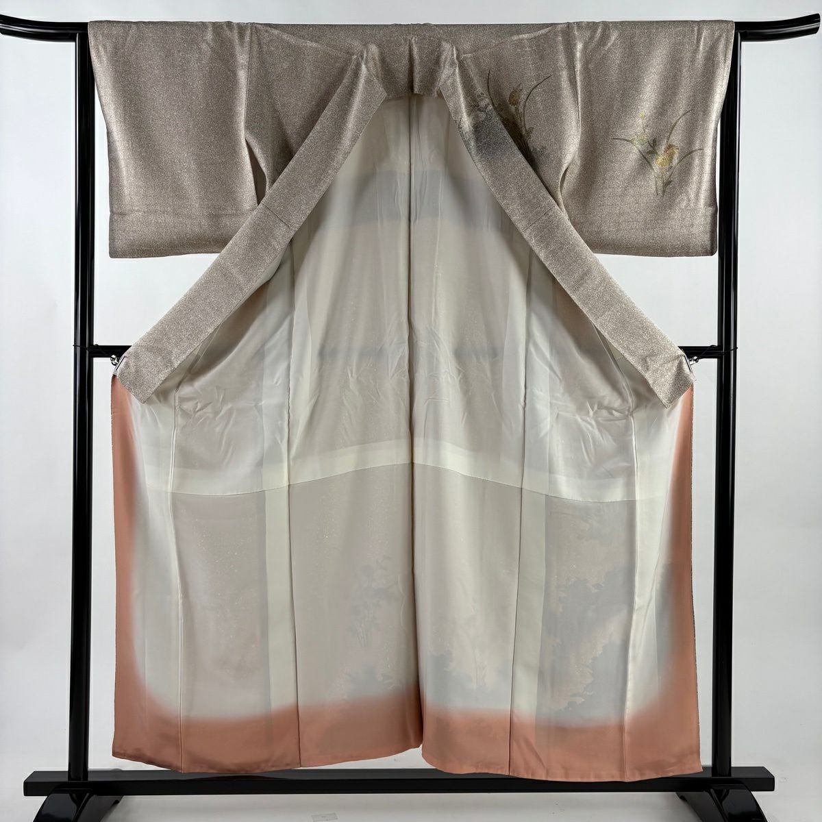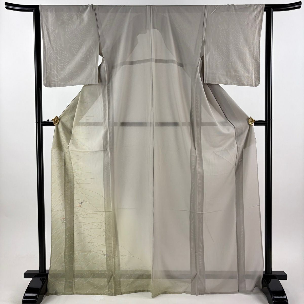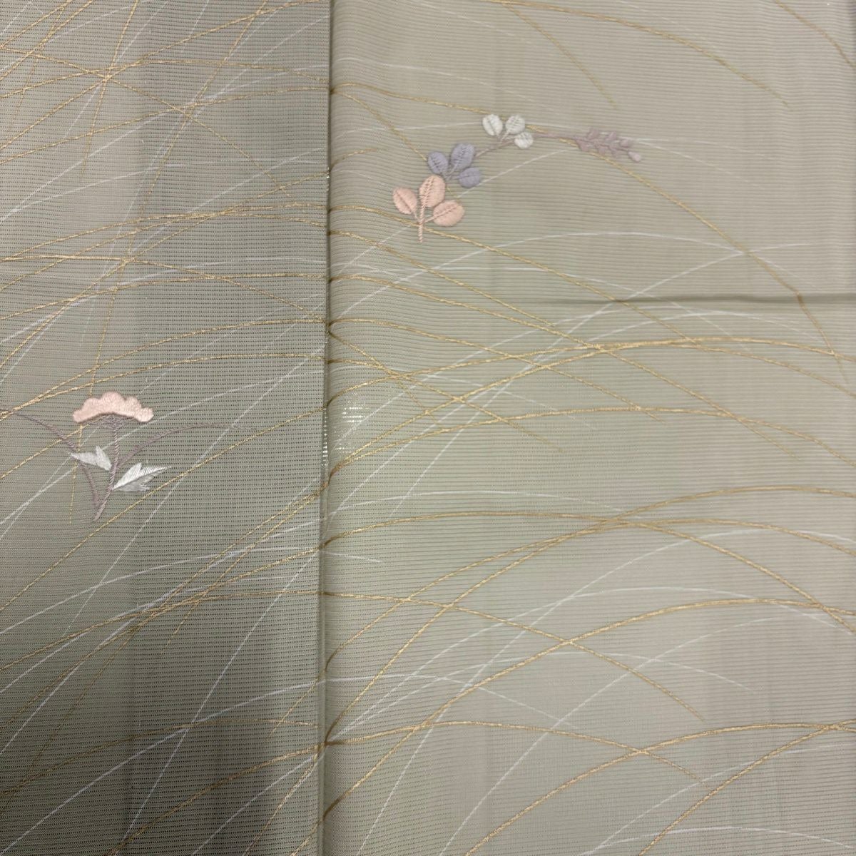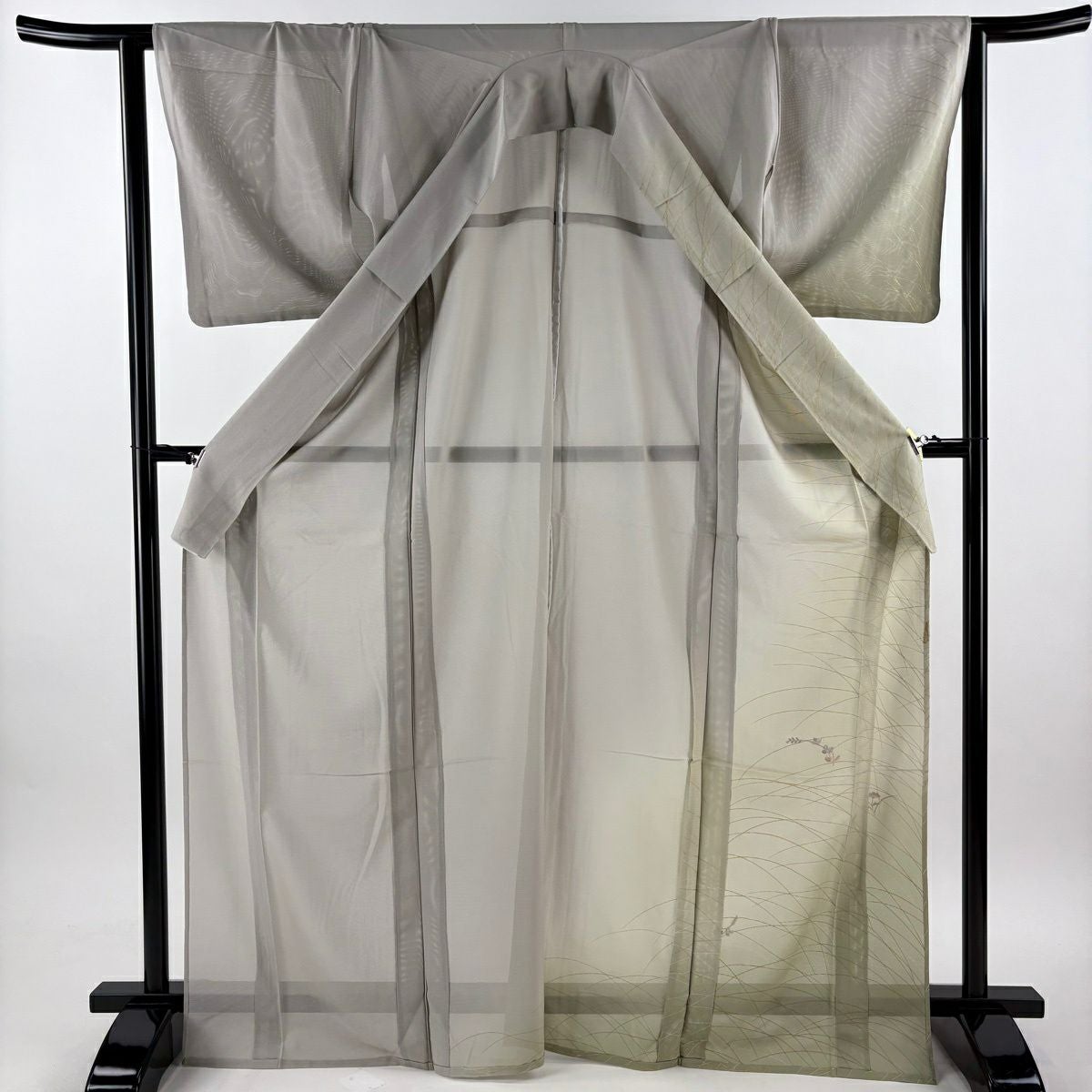 訪問着 身丈170.5cm 裄丈64cm M 薄物 絽 萩 芝 刺繍 金彩 灰色 正絹 優品