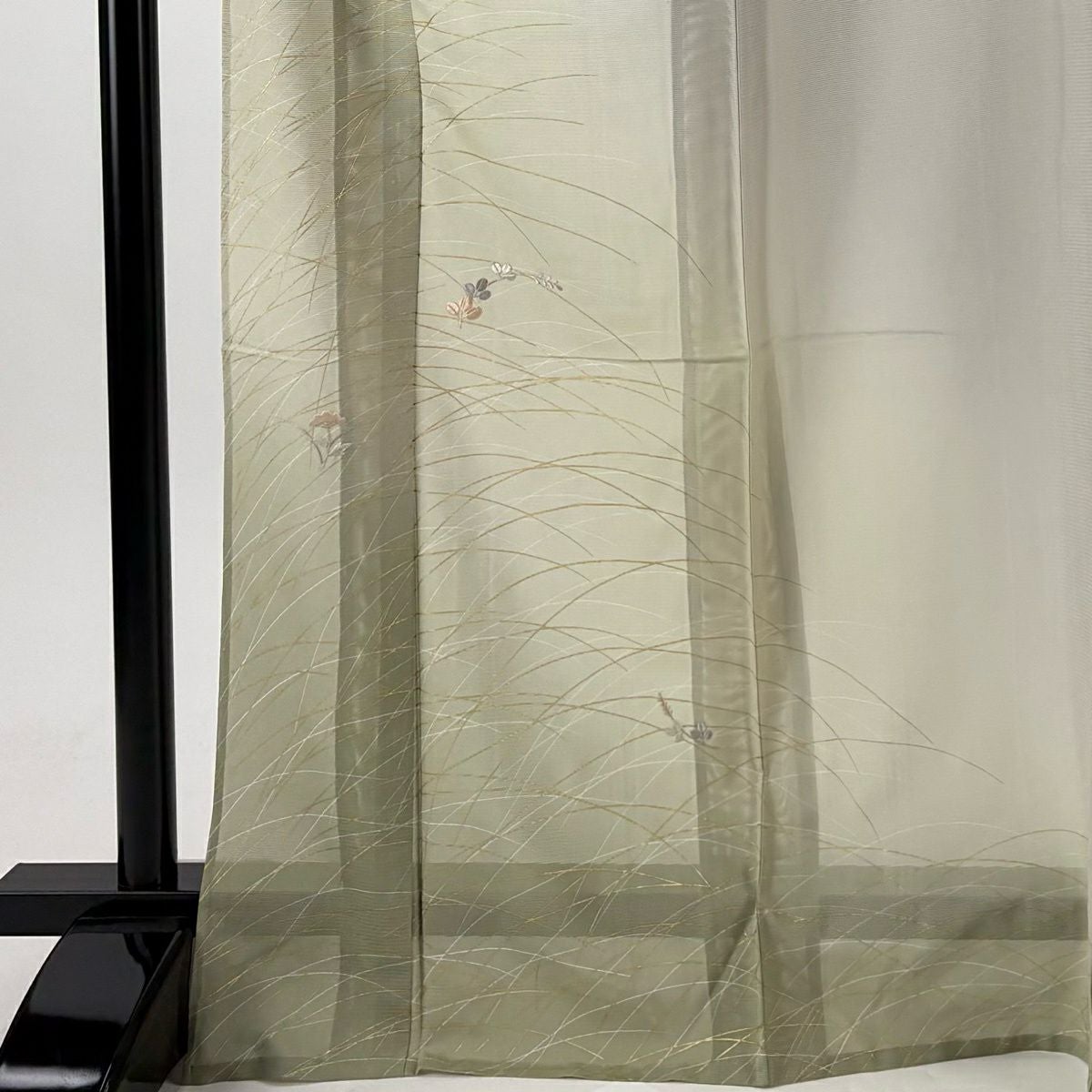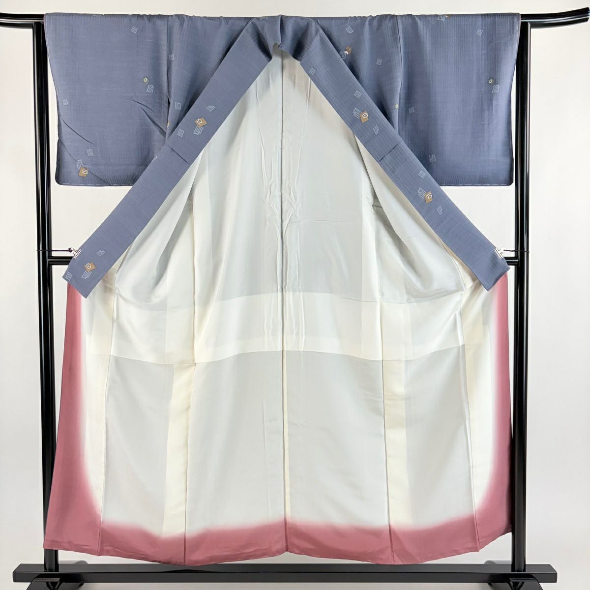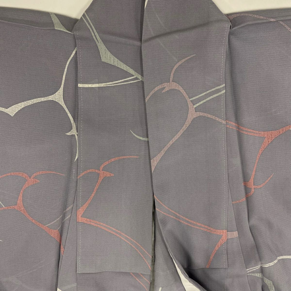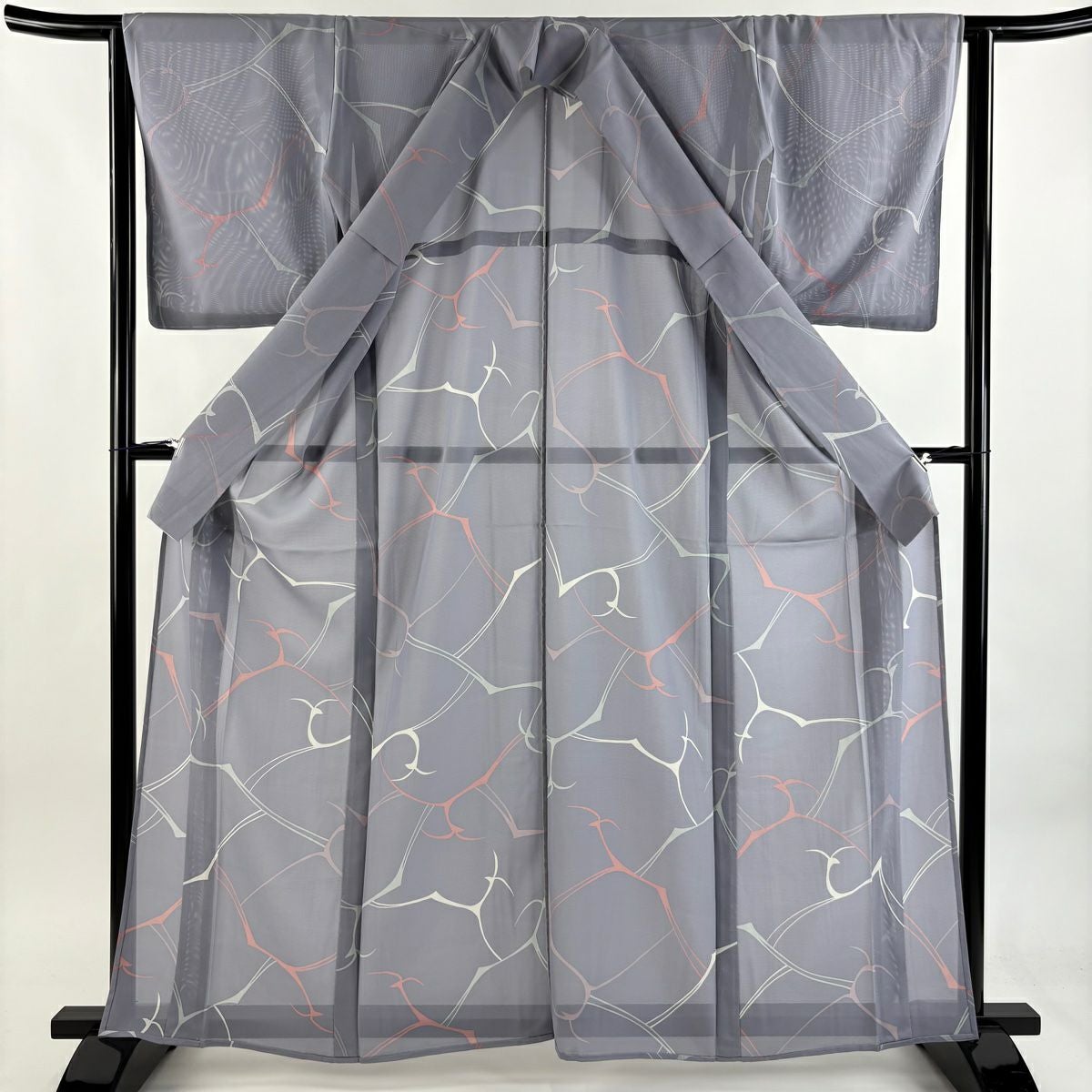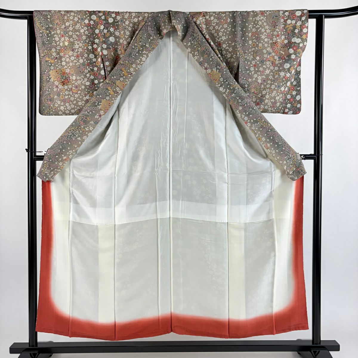 訪問着 身丈170.5cm 裄丈64cm M 薄物 絽 萩 芝 刺繍 金彩 灰色 正絹 優品