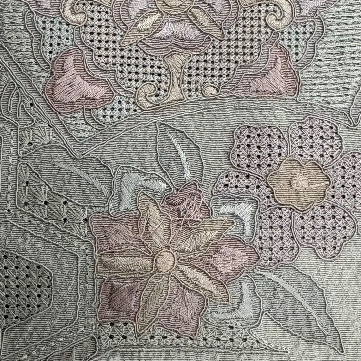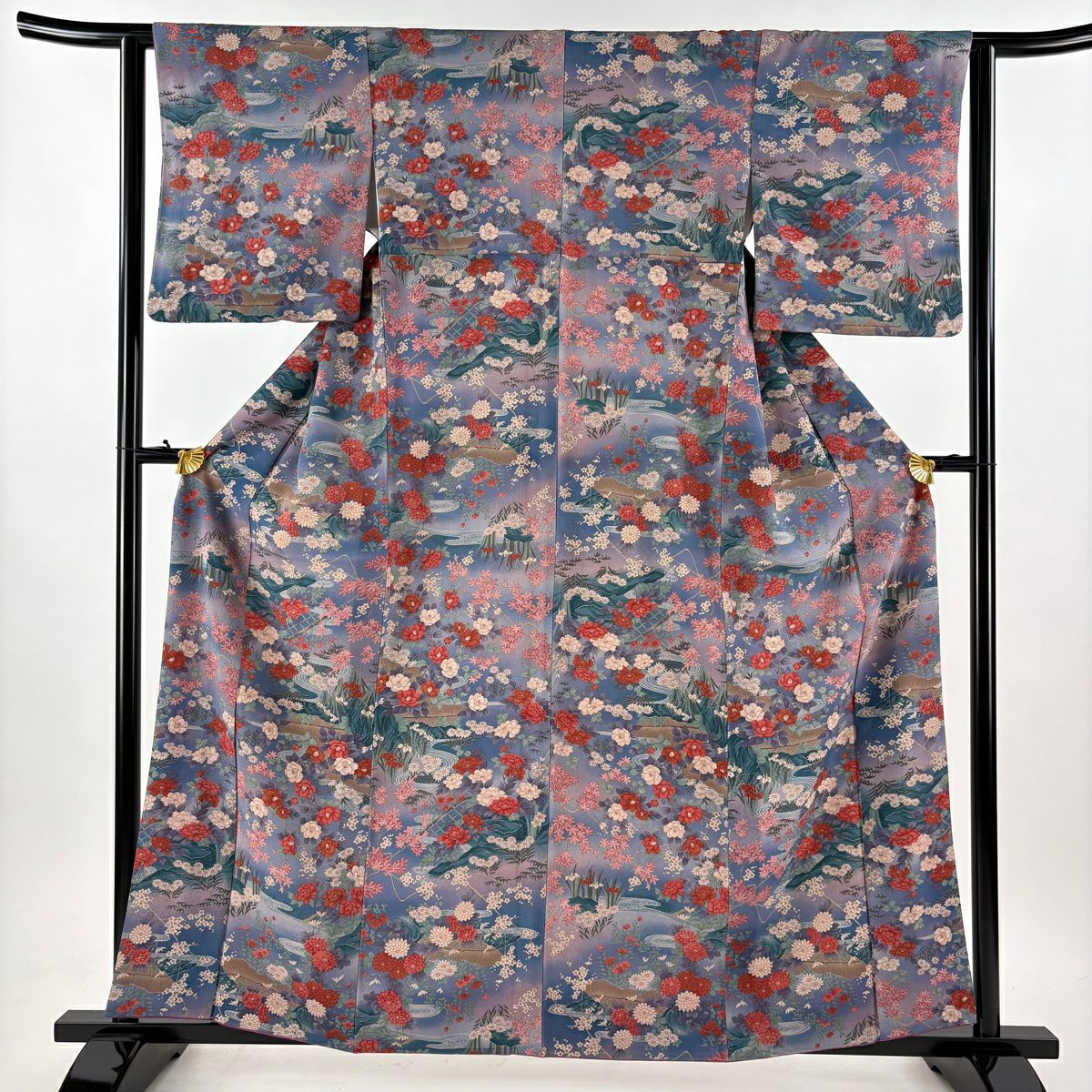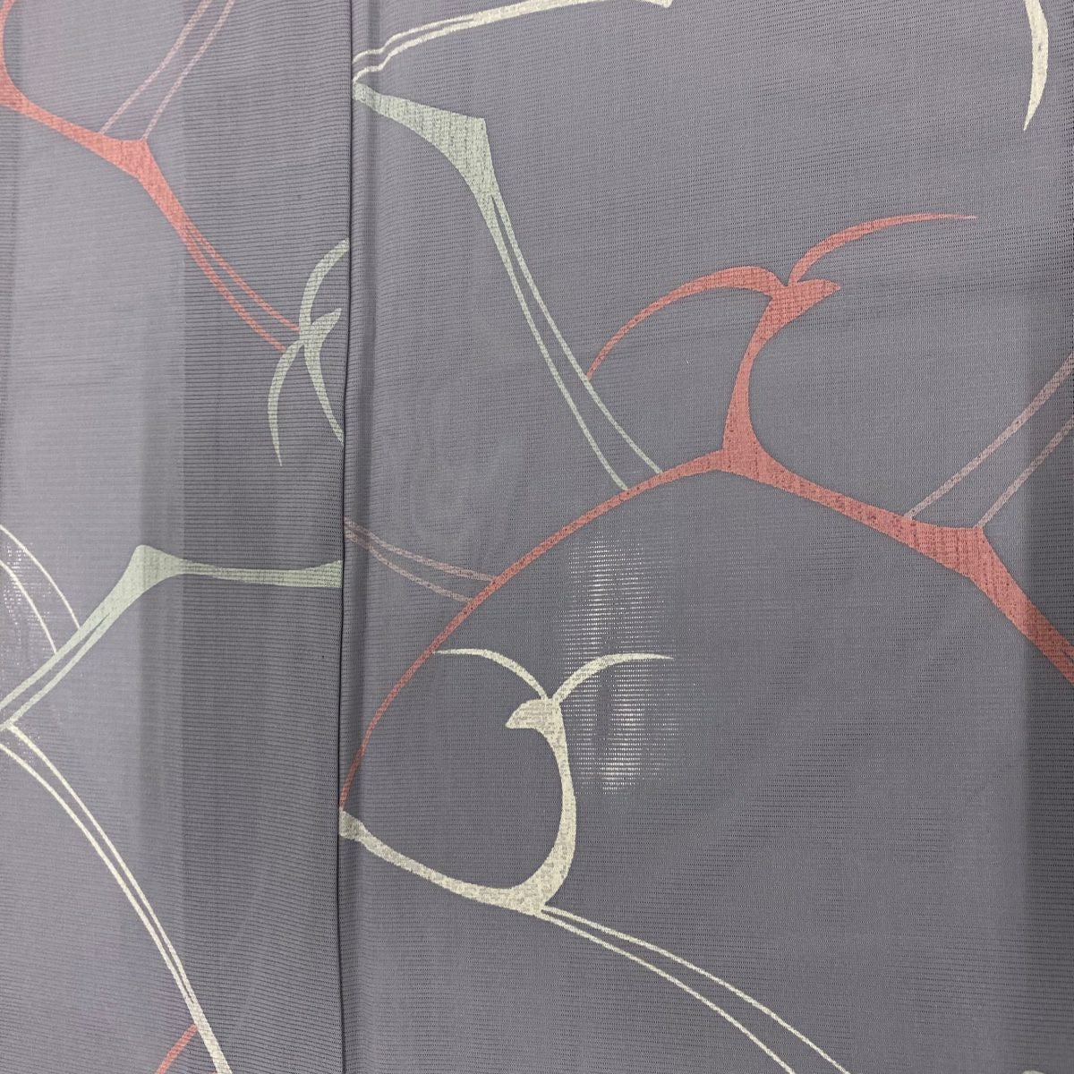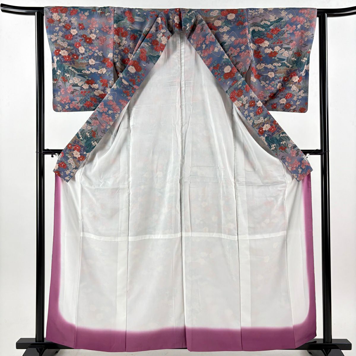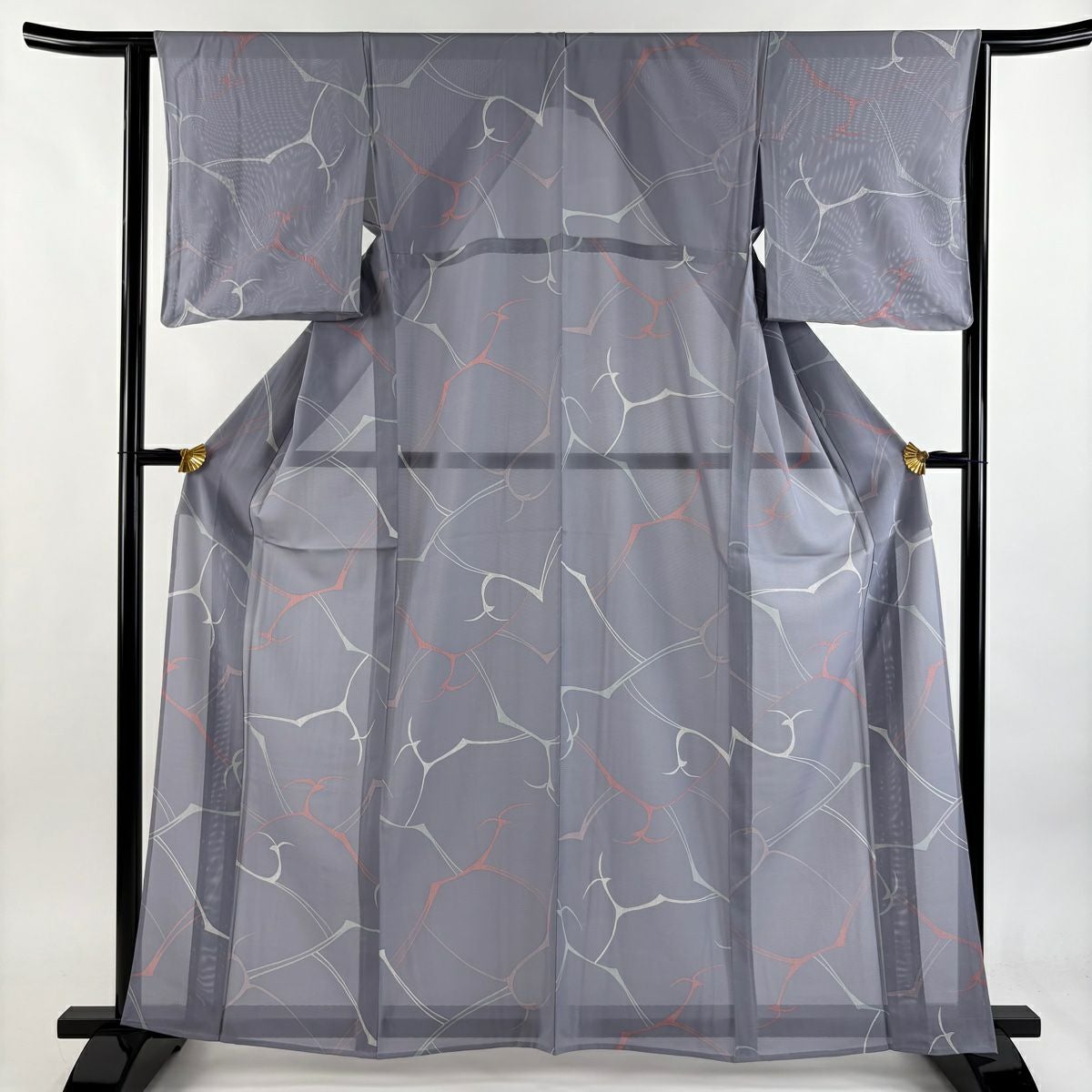 訪問着 身丈170.5cm 裄丈64cm M 薄物 絽 萩 芝 刺繍 金彩 灰色 正絹 優品