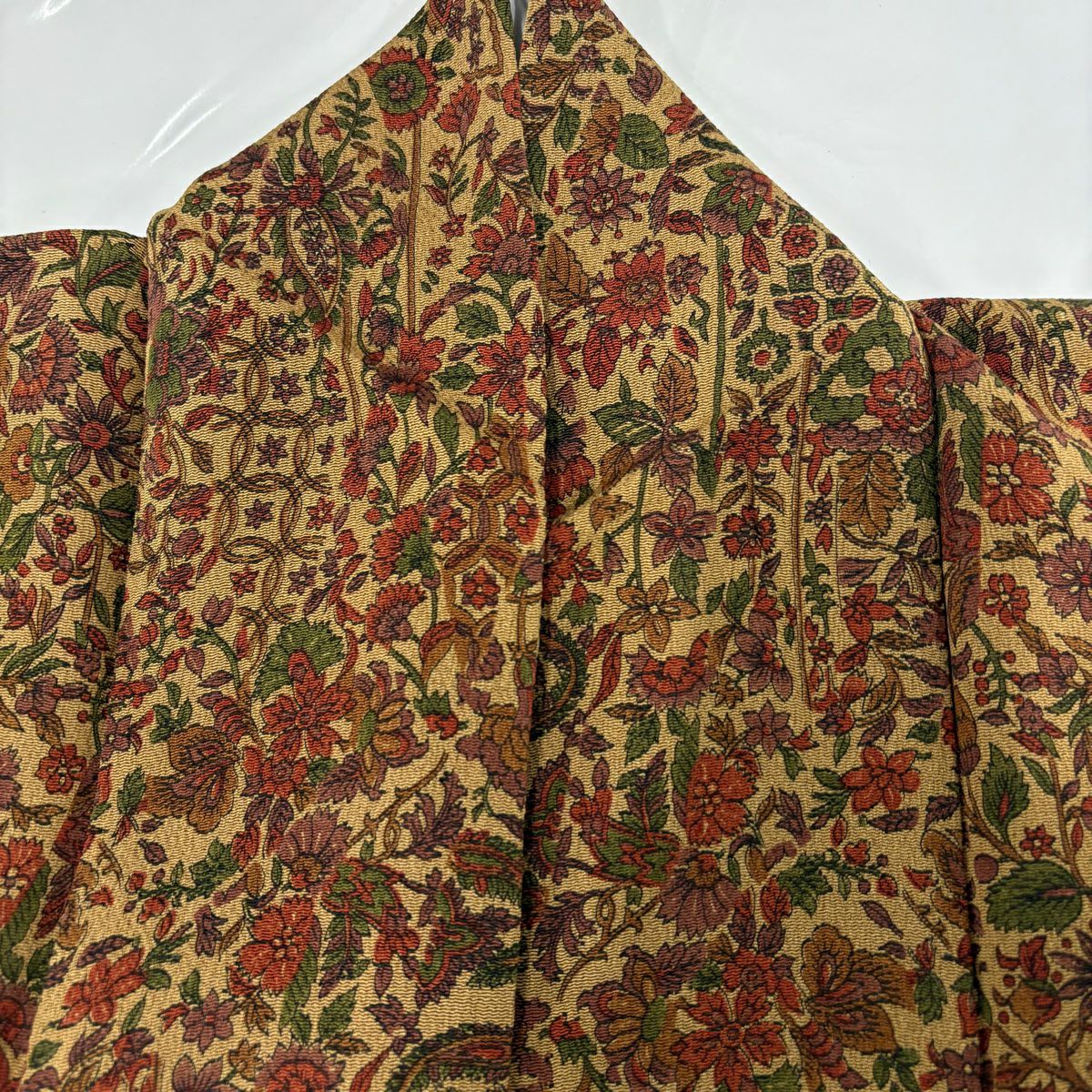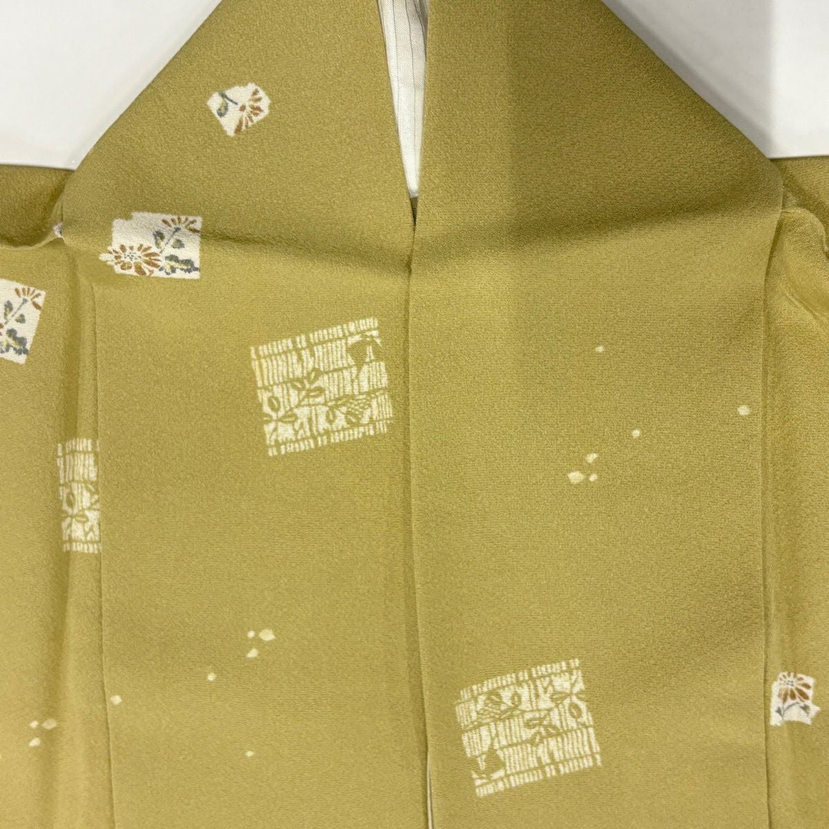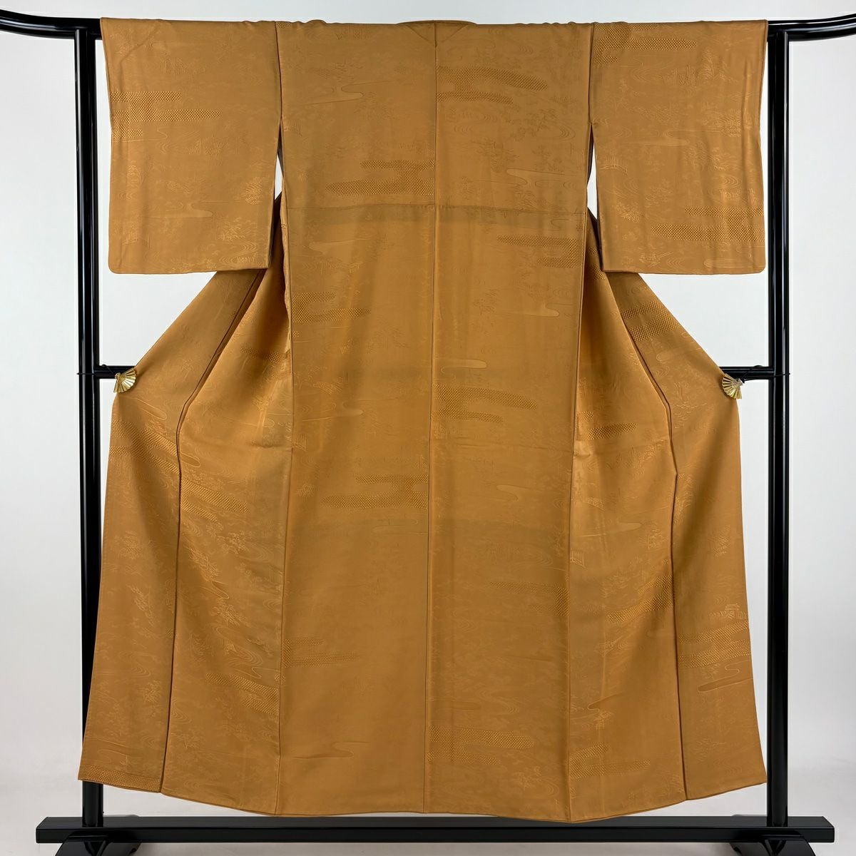 小紋 身丈159cm 裄丈64cm M 袷 さんび 洗える着物 草花 縞 黄土色 化繊 優品