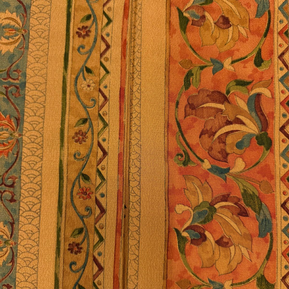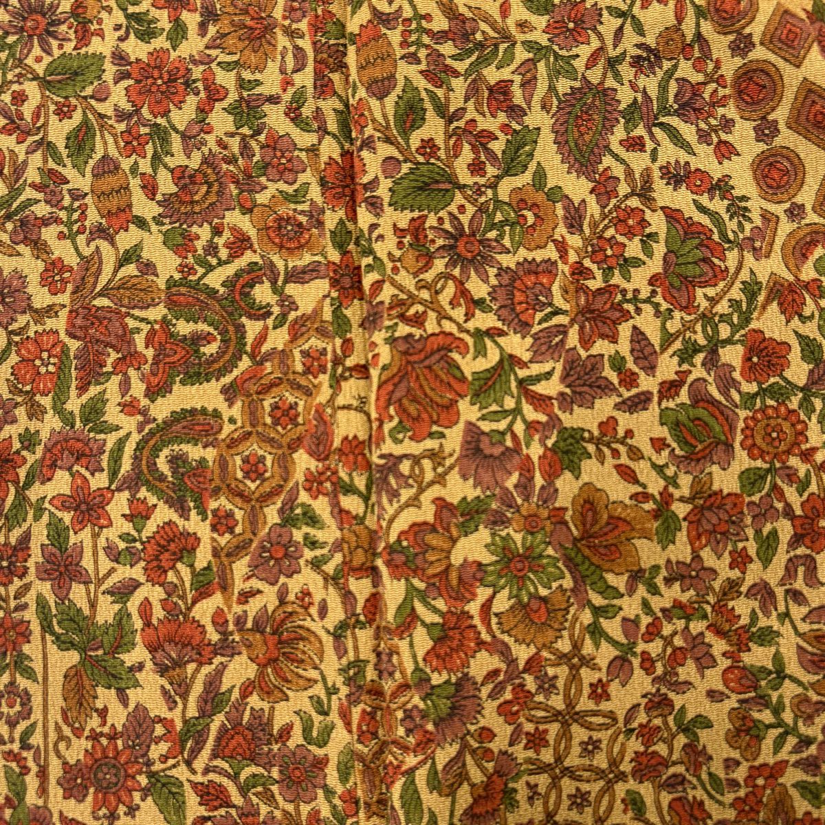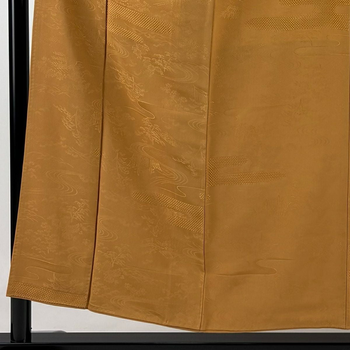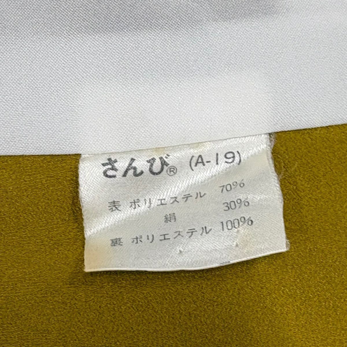 小紋 身丈159cm 裄丈64cm M 袷 さんび 洗える着物 草花 縞 黄土色 化繊 優品