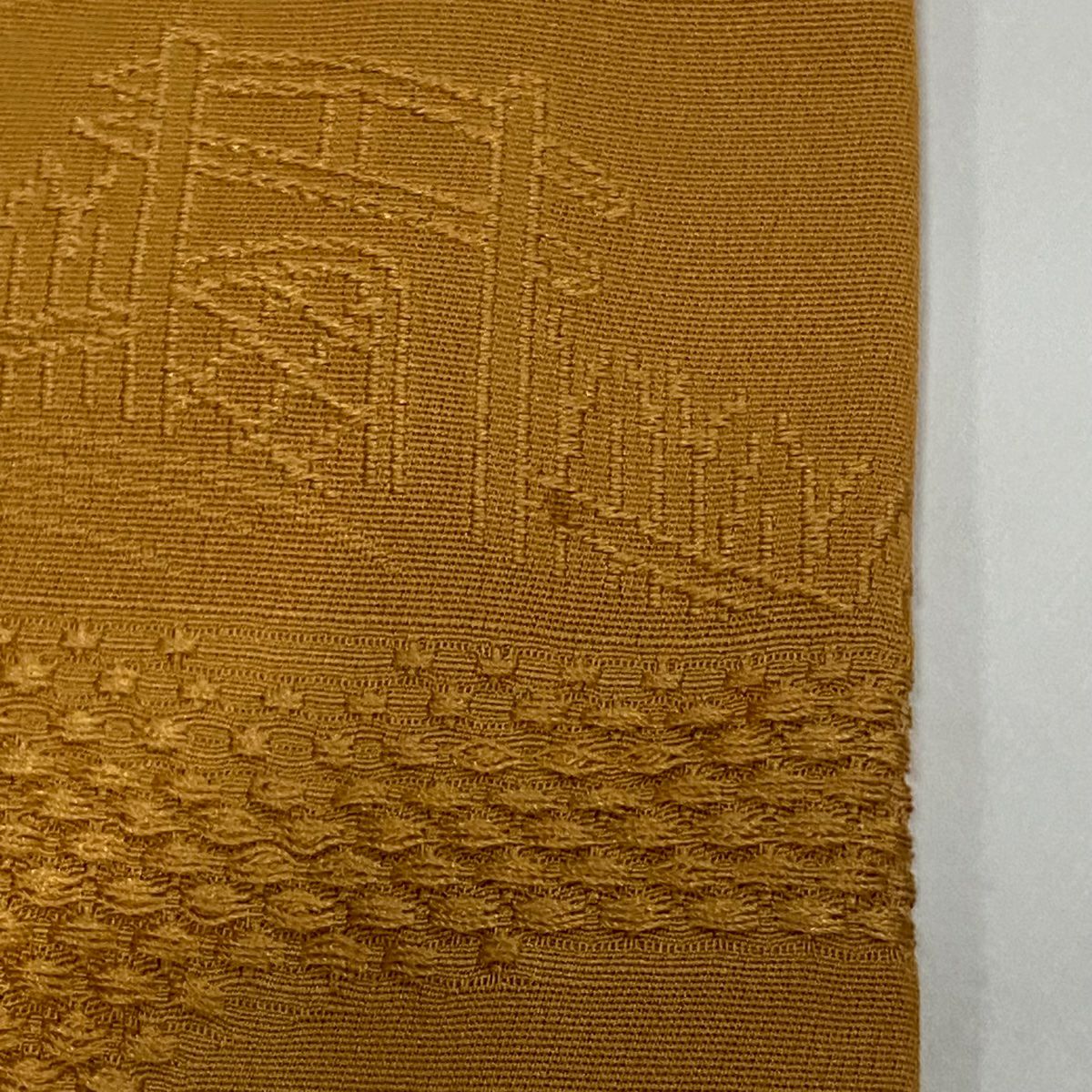 【美品】 小紋 身丈154.5cm 裄丈64cm M 袷 鈴乃屋 幾何学 黄土色 正絹 優品