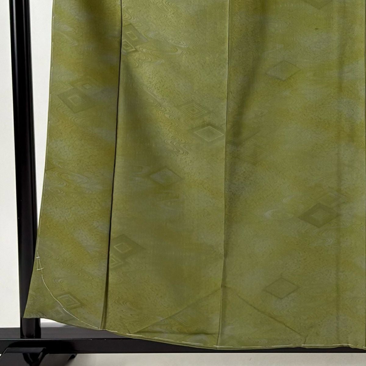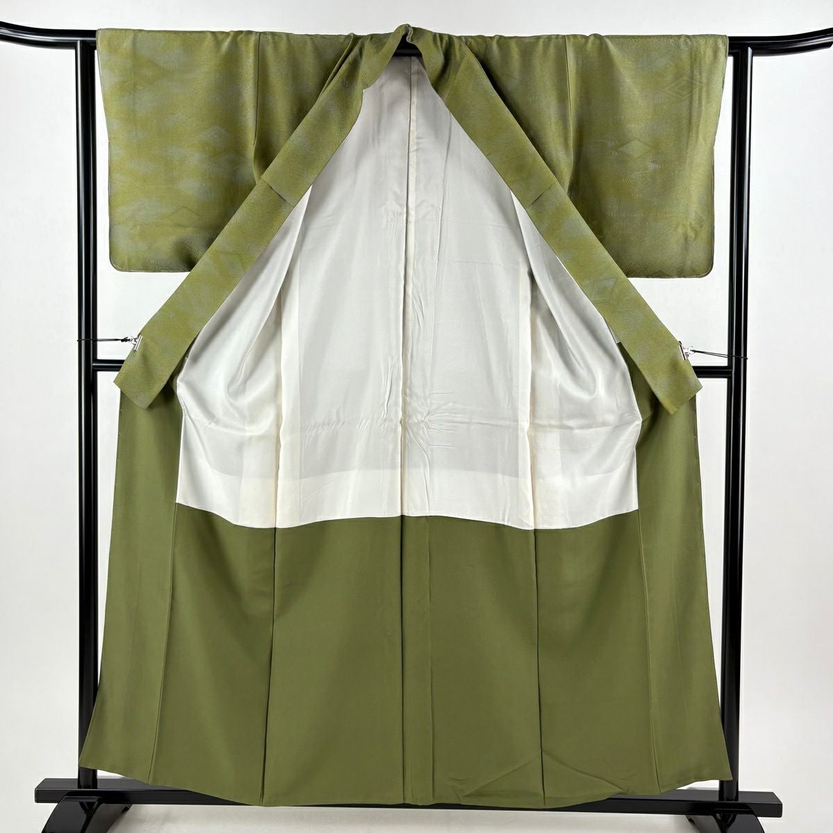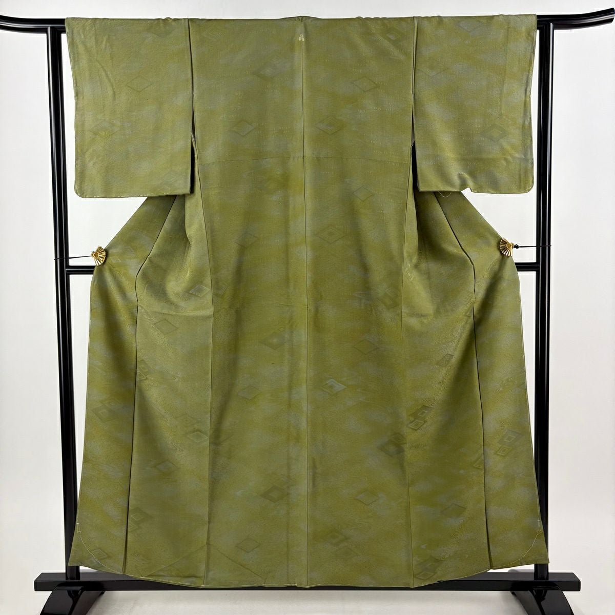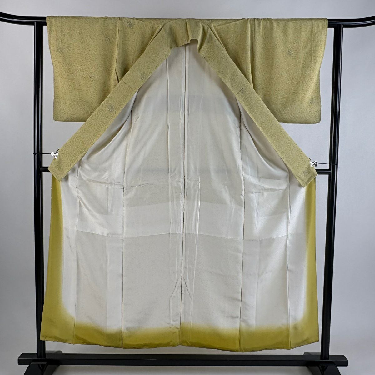 【美品】 小紋 身丈158cm 裄丈63cm S 袷 地紋 ぼかし 鶯色 正絹 優品 一つ紋