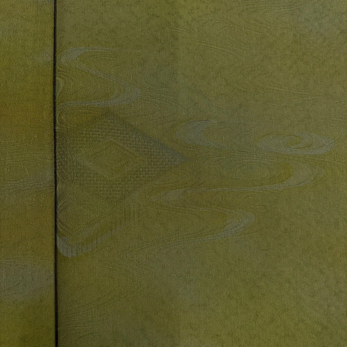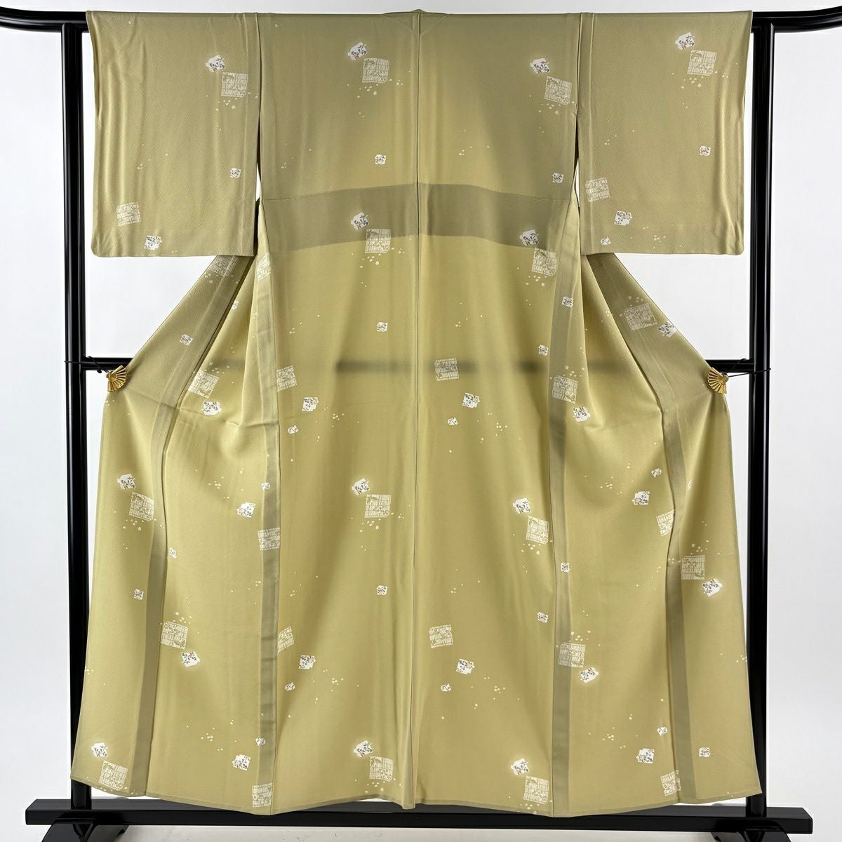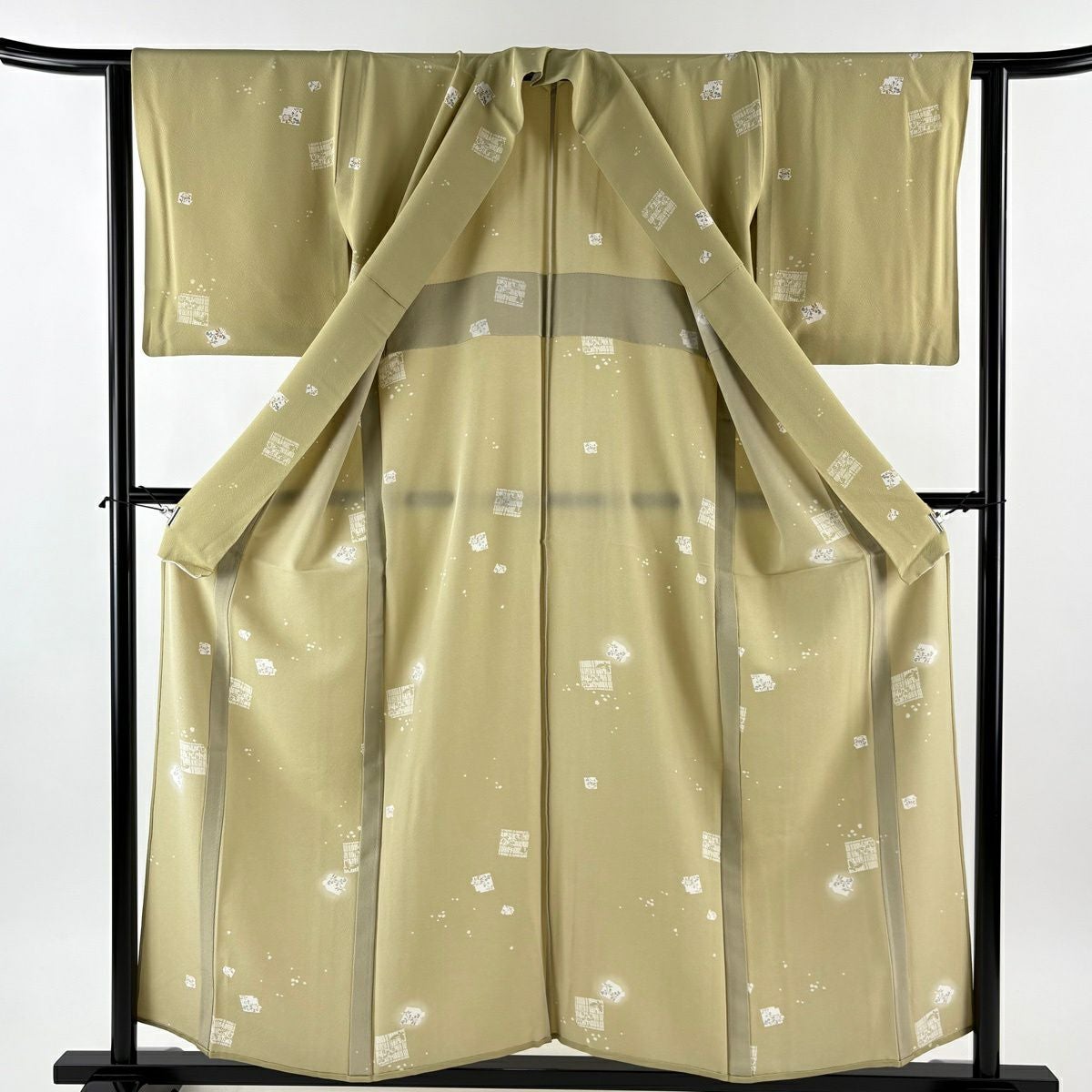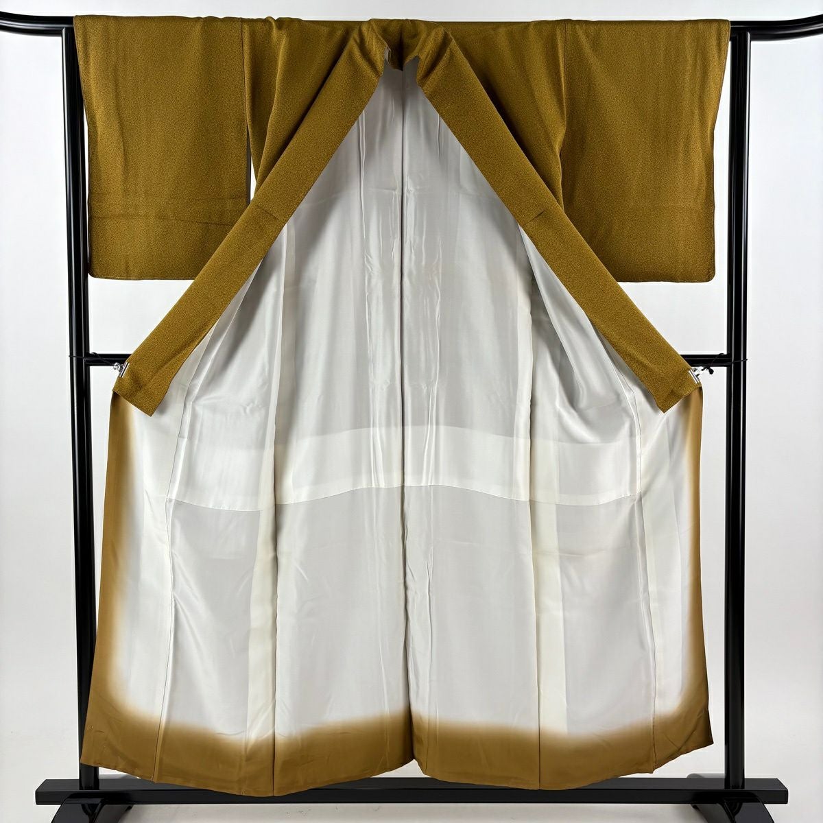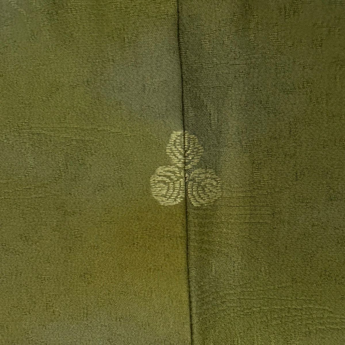 【美品】 小紋 身丈158cm 裄丈63cm S 袷 地紋 ぼかし 鶯色 正絹 優品 一つ紋