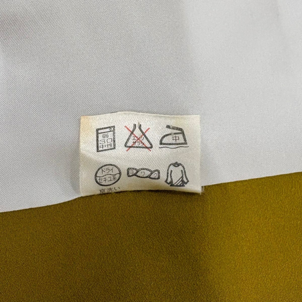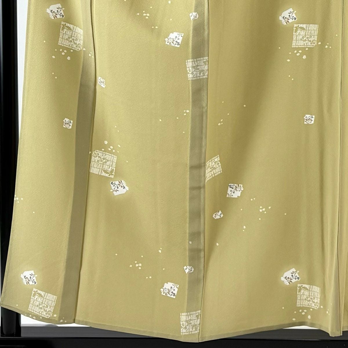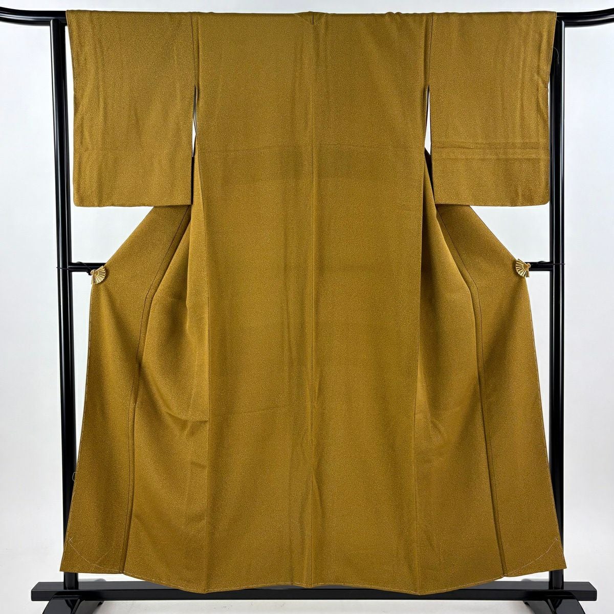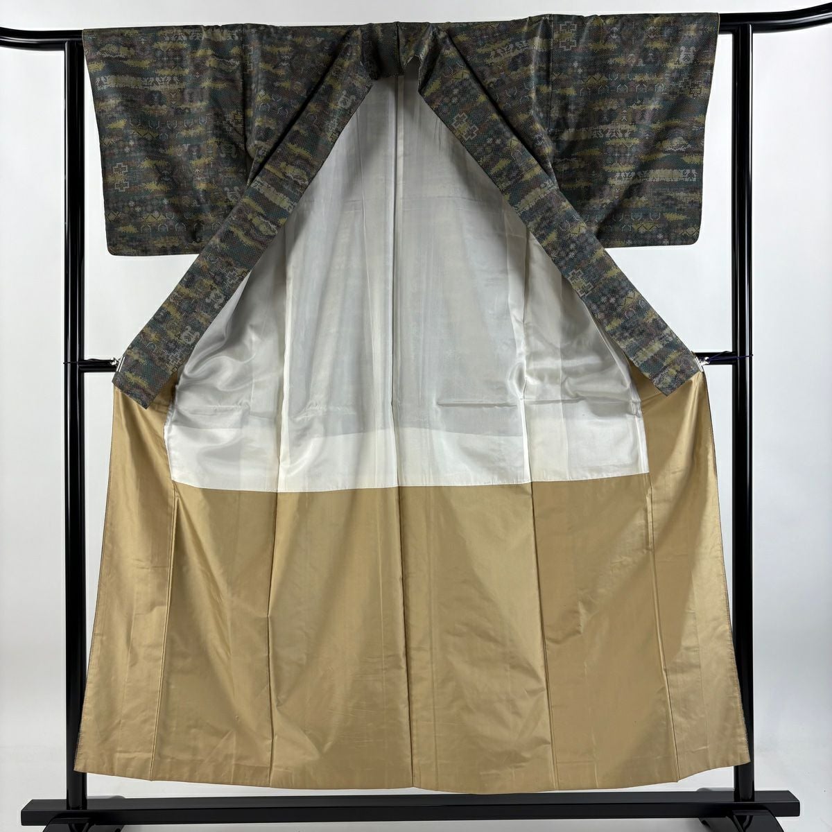 【美品】 小紋 身丈158cm 裄丈63cm S 袷 地紋 ぼかし 鶯色 正絹 優品 一つ紋