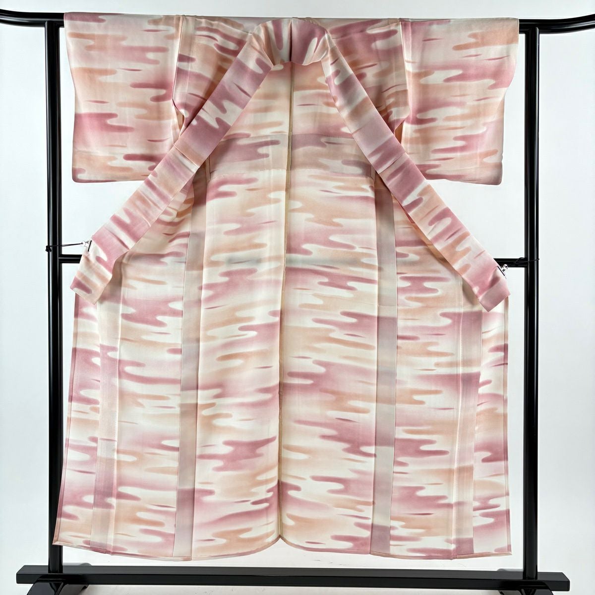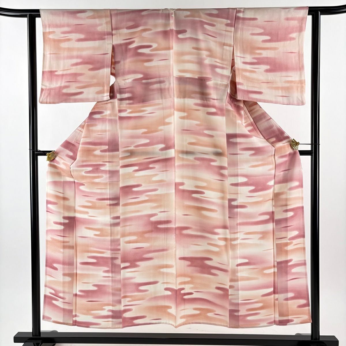 小紋 身丈153cm 裄丈61.5cm S 単衣 霞 ぼかし 薄ピンク 正絹 優品 一つ紋